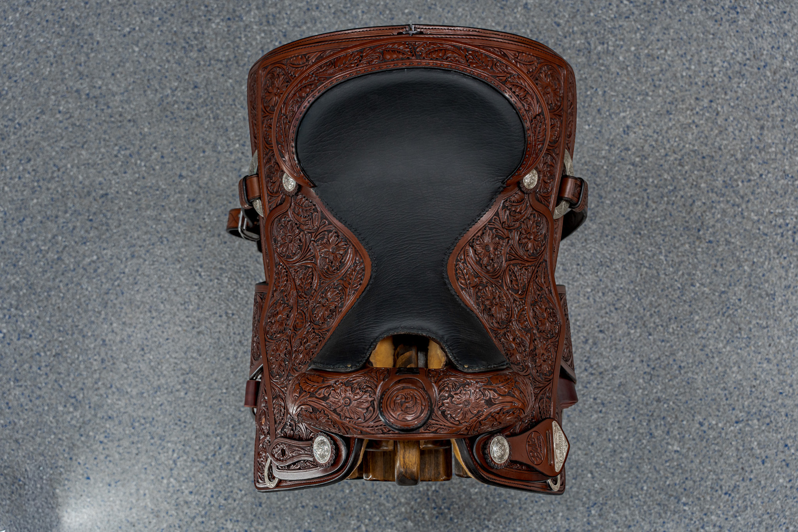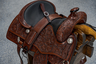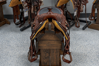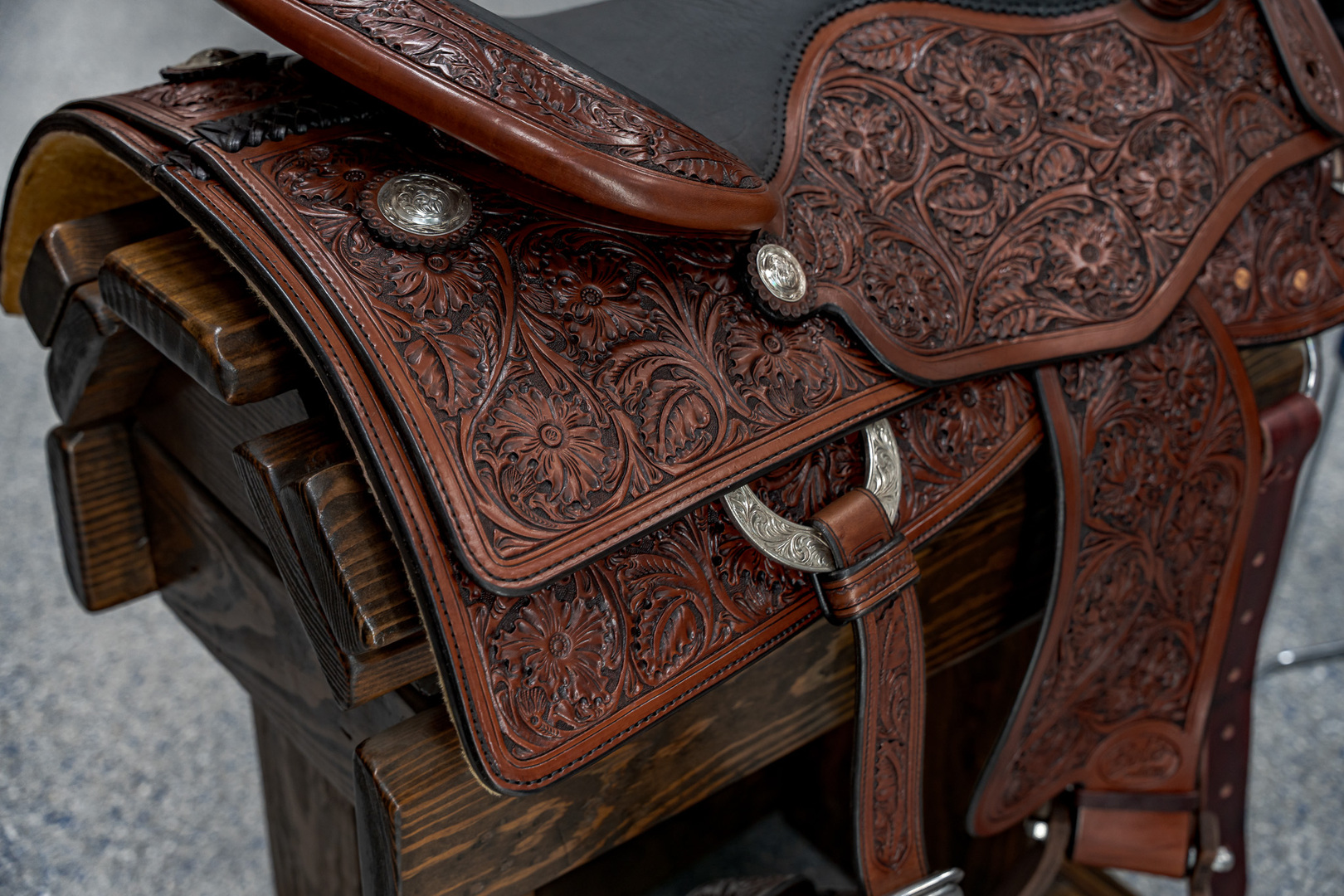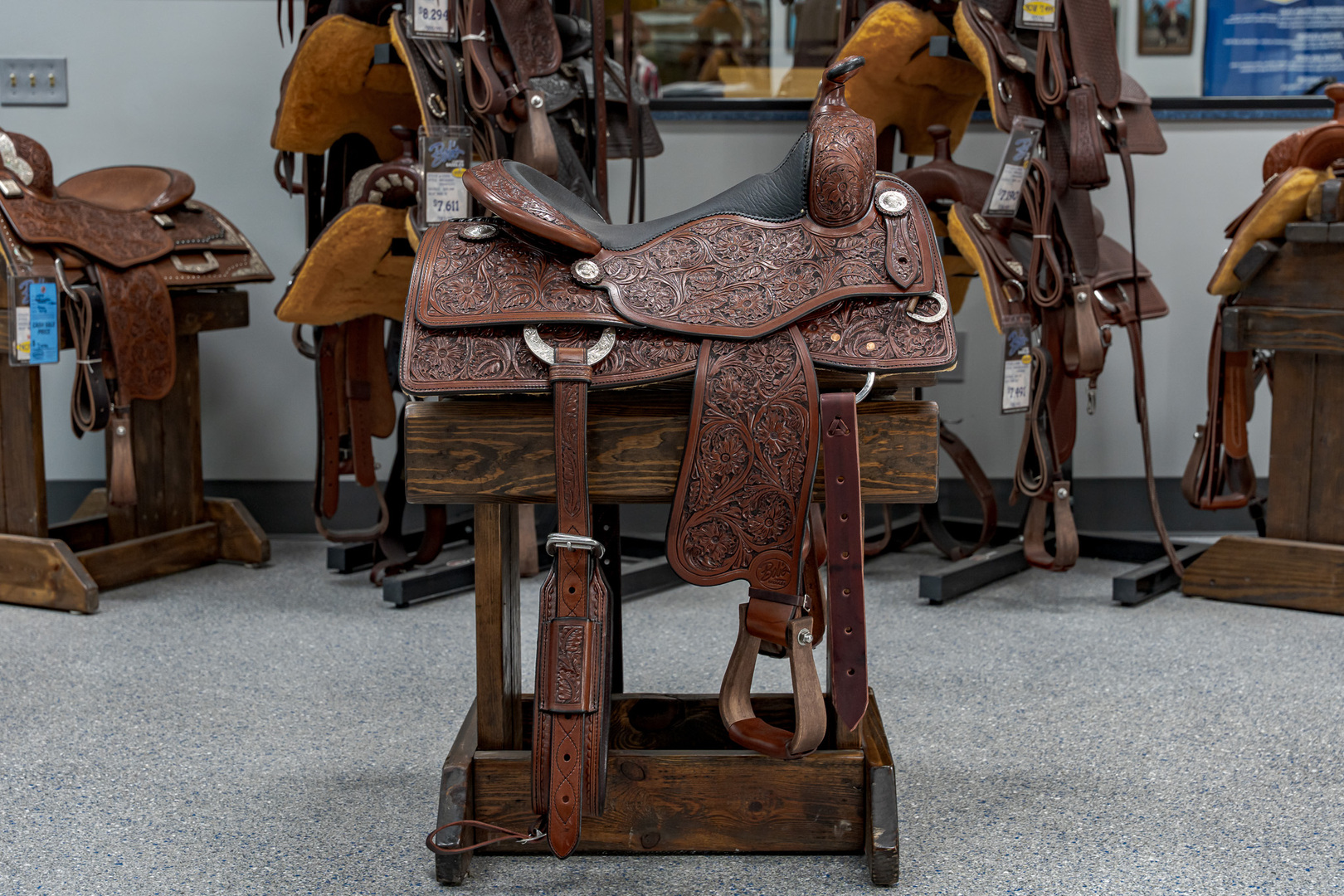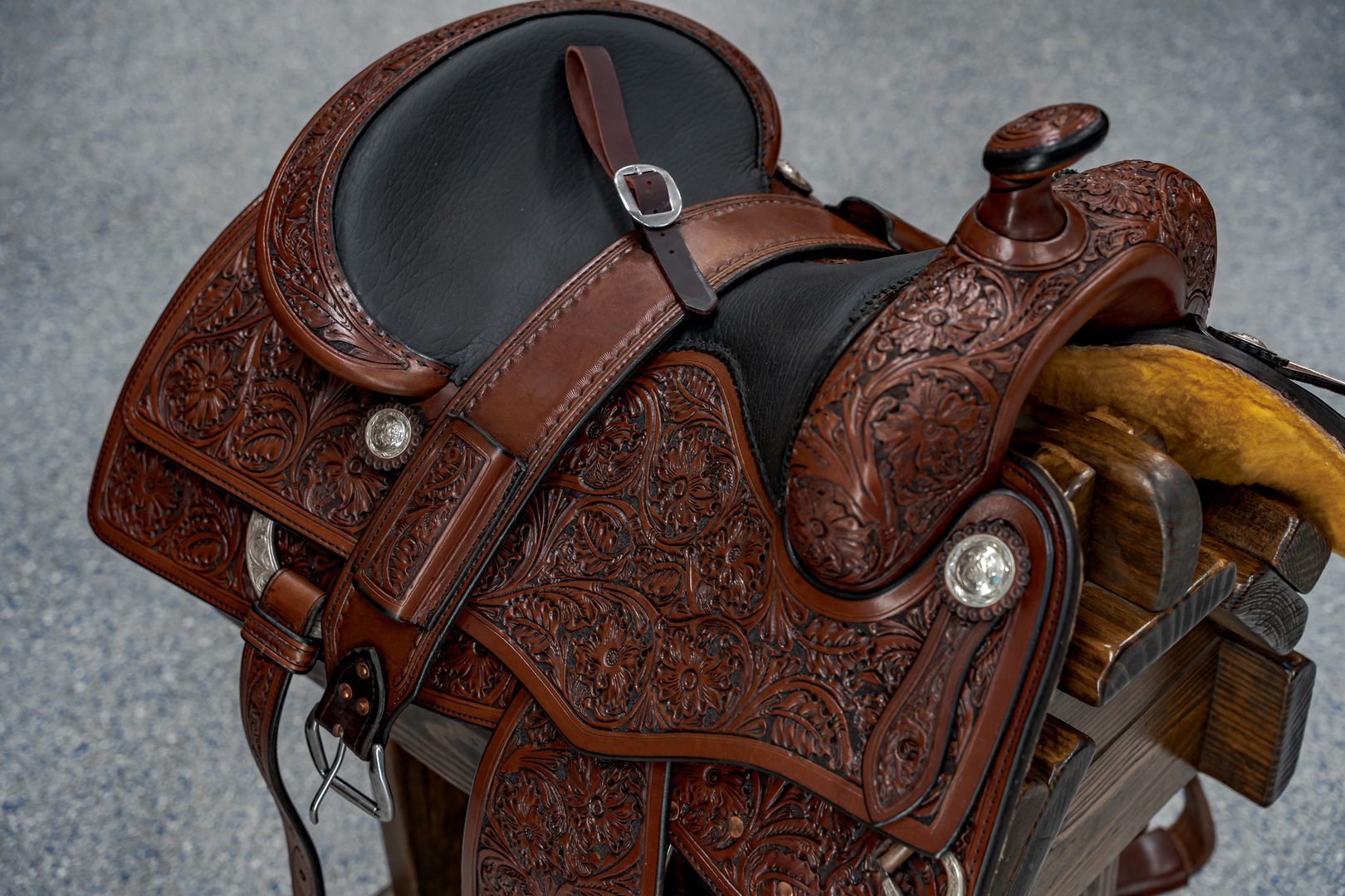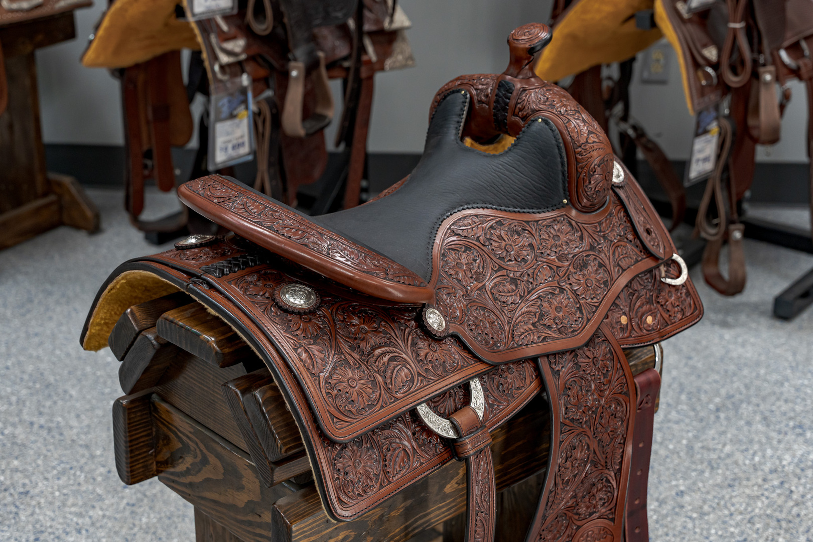 View Inventory: https://leonardtrailers.com/inventory/45293 Tim McQuay Reining Saddle Tree: 16.5in T. McQuay (8 1/2” x 6 1/2) Cantle: 3 1/4” DL Seat Style: 16” Single Narrow Padding T. McQuay Seat, Seat Color: BLACK BISON Rear Cinch included Since 1977, Bob’s Custom Saddles are built with the finest trees available; from hand-picked, top-grain hermann oak leather, real sheepskin, and hand-engraved sterling silver or silver overlay. Bob’s hand-tool every saddle, hand-lay every ground seat, hand-stitch every seat, and hand-craft each cantle. Their superior quality, craftsmanship, and performance are a prime choice for premier horsemen around the world. Proudly presented by Leonard Truck & Trailer. Stock Number:45293