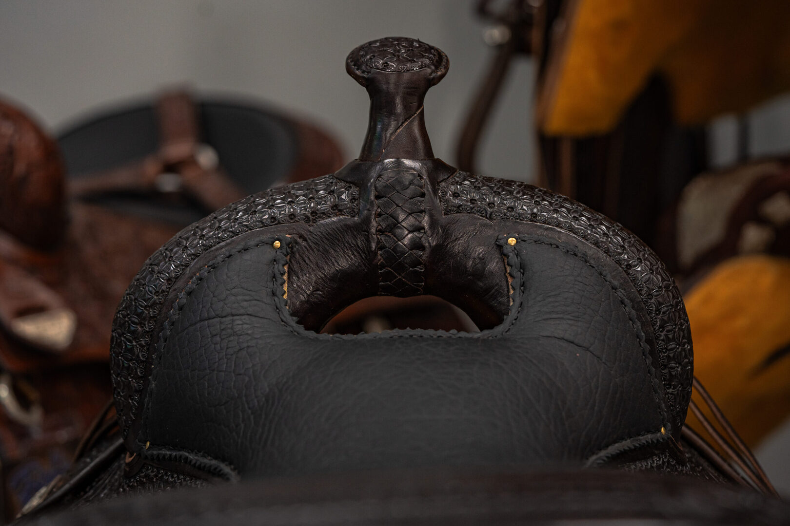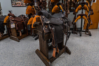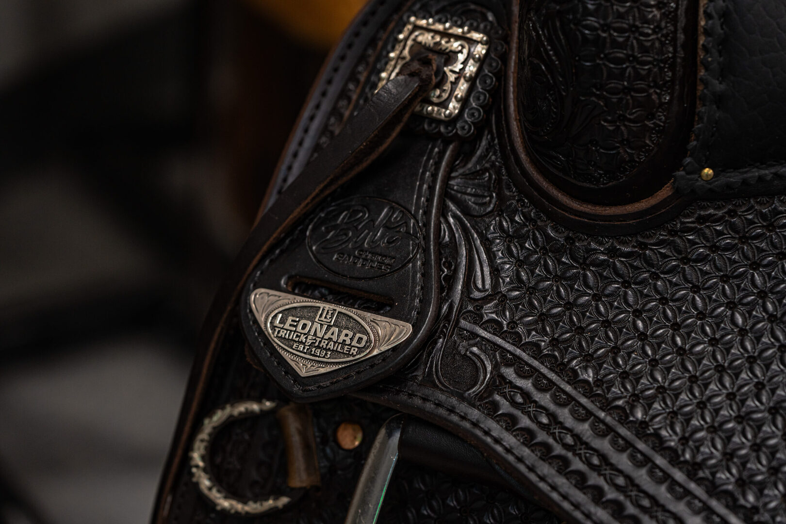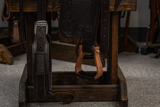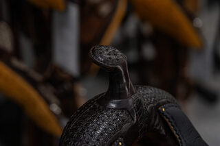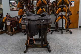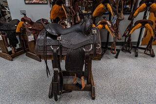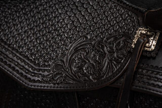 View Inventory: https://leonardtrailers.com/inventory/45387 Bob’s Custom Saddle Ranch Versatility 15.5IN seat Tree: 16” DL (8 1/4” tall front end) Cantle: 3” DL Seat Style: Double Padded, DL Seat Color: Black Bison Color: Chocolate Medium Comes with Rear Cinch Since 1977, Bob’s Custom Saddles are built with the finest trees available; from hand-picked, top-grain hermann oak leather, real sheepskin, and hand-engraved sterling silver or silver overlay. Bob’s hand-tool every saddle, hand-lay every ground seat, hand-stitch every seat, and hand-craft each cantle. Their superior quality, craftsmanship, and performance are a prime choice for premier horsemen around the world. Proudly presented by Leonard Truck & Trailer. Stock Number:45387