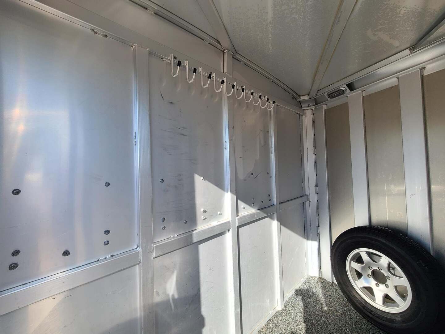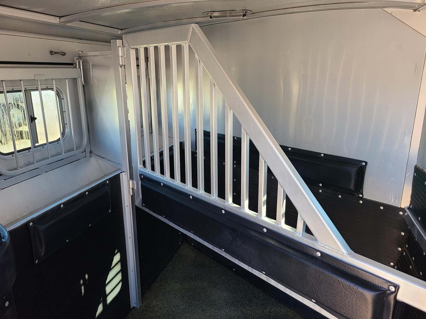 Platinum Coach 2 Horse Bumper Pull 7’6” wide with mangers WERM FLOORING THROUGHOUT! 16” tires and Mag aluminum wheels Carpeted rear Flow through divider Bridle hooks on bulkhead wall Two brush trays on tack door Drop down window bars head side Drop down windows on curb side 3 long LED Load lights