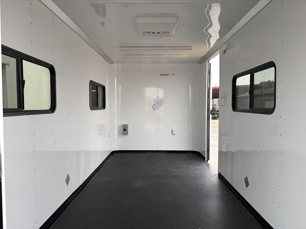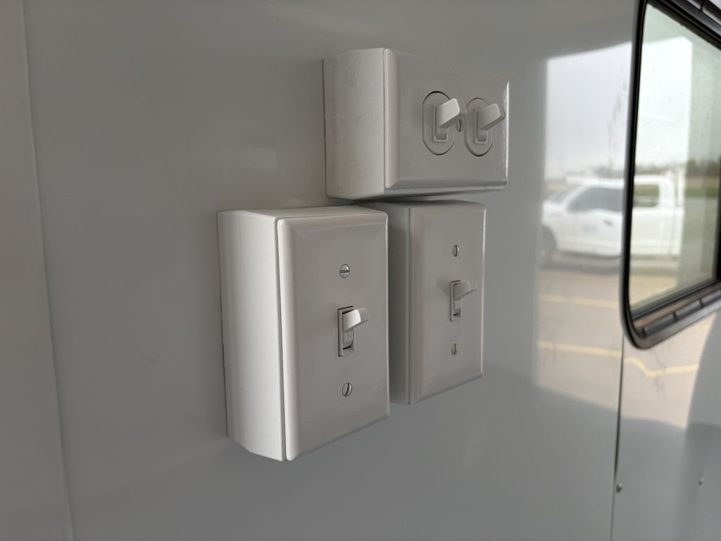 7’ x 16’ Tandem Elite Office Trailer 2 x 3,500 lb. 4 in Drop Brake Axles Triple Tongue 7’ Interior Height 13,500 BTU Air Conditioner 2 5/16 in Coupler 205/75/R15 Black Mod Wheels 36 in Side Door with Cam Bar Lock and RV Lock Rubber Coin Floors 3, 18in x 44in Viewing Windows Aluminum Interior Walls and Ceiling (Insulated on 16 in Centers) 2 x12 Volt LED Dome Lights w/ Switch 3 x 4’ Lights w/ Switch (110) 5 Interior Plugs (110) 30 AMP Electrical Package with Cord Empty Weight: 2,200 lbs GVWR: 7,000 lbs Carrying Capacity: 4,800 lbs