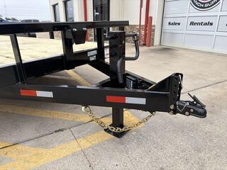 83 in x 20’ 14K Heavy Duty Equipment / Utility 2 x 7,000lb EZ Lube Brake Axles 2 5/16 in Adjustable Bulldog Style Coupler Treated Wood Floor 10K H/D Drop Leg Jack Diamond Plate Fenders ST235 80 R16 Tires and Wheels (Radials) 6 in Channel Wrapped Tongue 6 in Channel Lower Frame 3 in Square Top Rail (Welded Caps) H/D Spare Tire Mount 5’ Rear Slide Out Ramps LED Lights Empty Weight: 3,450lb GVWR: 14,000lb Carrying Capacity: 10,550lb