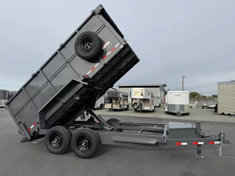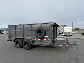 2026 SRTC 7’ x 14’ Hydraulic Dump Trailer 14K - Contractor Model with 4’ Tall Sides. * New Contractor Model Includes: * Extra Large Tongue Box * 7 Ga. Floor * 16” Centers on Box Crossmembers * 7’ Long Gen Y Aluminuim Ramps with 10K Capacity * 12K Jack * Tarp Shield * Spare Tire * Tandem 7K Brake Axles * ST235/80R16 8 Lug Wheels * Pump, Motor, and Interstate Battery plus corded Remote * 110v Battery Charger * Tarp Kit * 4’ Tall Sides * 2”x2” Heavy Duty Top Rail w/ Stake Pockets * Rugby Hydraulic Scissor Hoist * Double Rear Doors * (4) Weld On D-Rings Inside * Spare Mount * Heavy Duty Fenders * Rear Load Stabilizer Legs * LED Lights * 2 5/16” Adjustable Coupler Call D2 Trailer Sales 209-745-5480 or for more info www.d2trailersales.com