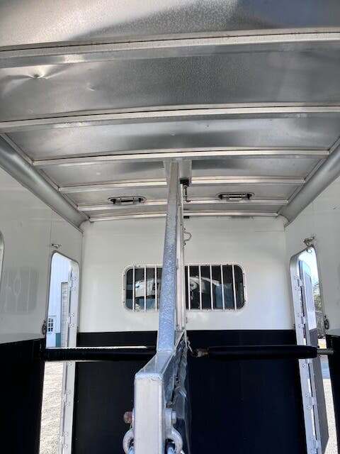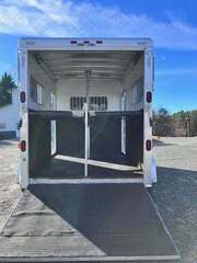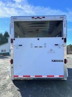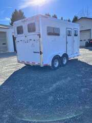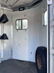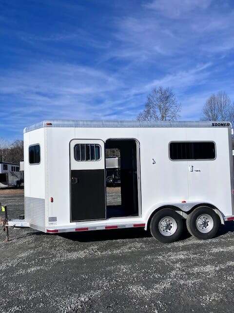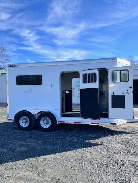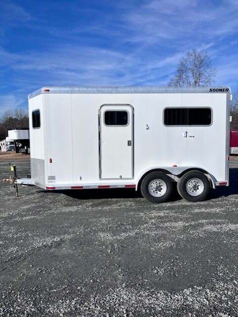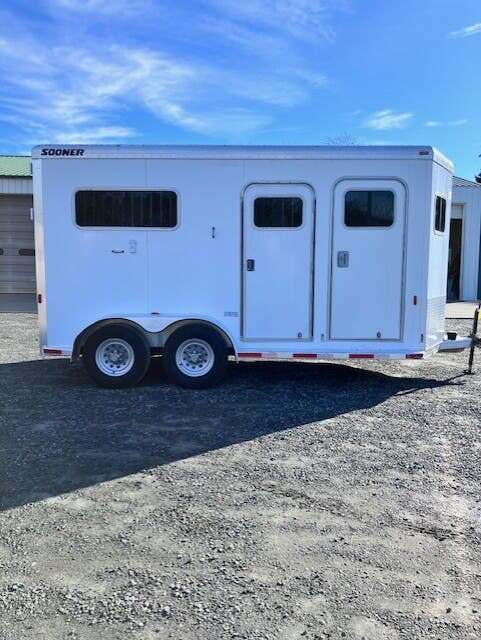 2006 Sooner 2H BP w/Dress, 7’6”x7’, White, Wood Floor w/Mats, Rear Ramp w/Curtain Doors, Windows in the Curtains, Removable Partitions, Solid Head Divider, (2) Escape Doors, 10’6” in HA, 84” Butt to Breast Bars, Window in Dress Wall, (2) Saddle Racks, Bridle Hooks, Brush Box, Swivel Saddle Pad Rack, (2) Windows in V, Diamond Plate Nose, Vent in Dress, 16” Radial Tires, Spare Tire Mounted in Dress, GVWR 7000, Empty 3100, Carry 3900