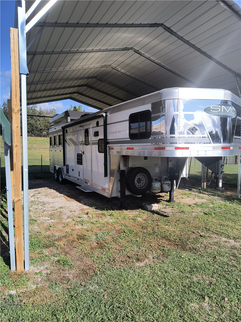 11 ft lq with a slide, large refrigerator, mangers,drop windows on both sides,new batteries, tires, awning fabric, always stored inside, hay pod, dinnett with storage, price is OBO, motivated seller located in central Florida