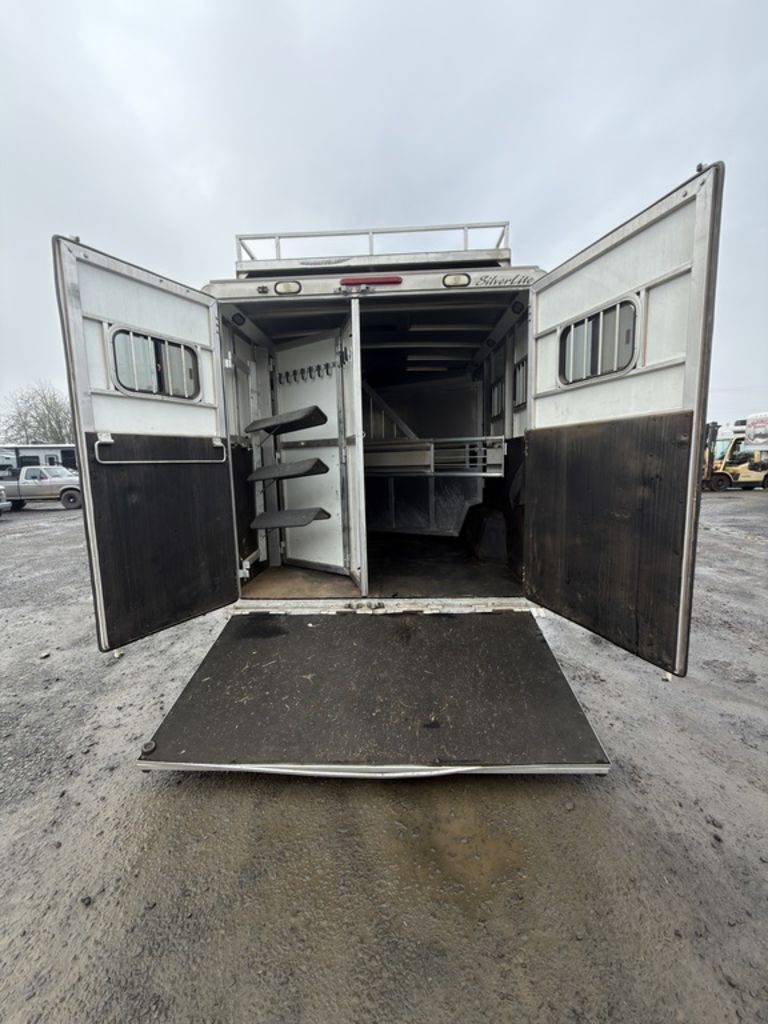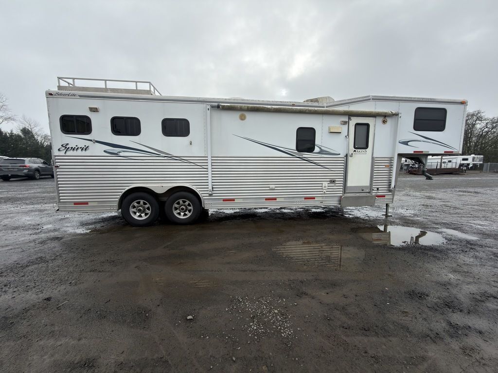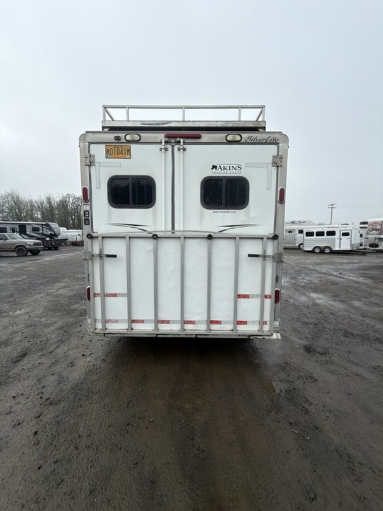 2007 Silverlite 3 Horse 12’ Living Quarters Comfortable living quarters plus horse-friendly features are blended perfectly into this Trailer. Features May Include: STRUCTURAL All Aluminum Construction Aluminum Skin Extruded Lower Paneling Height 8’ Wide Floor Length Overall Length EXTERIOR Hay Rack with Ladder Dual-Leg Power Jack Batteries (2) Propane Tanks STALL AREA Double Rear Doors Fully Matted Interior and Exterior Tie Rings (one per stall) Pop up Vent Padded Aluminum Dividers Stud Divider Drop Down Windows and Bars (head side) Sliding Bus Windows (tail side) Aluminum Floors TACK ROOM Collapsible Rear Tack 4-Tier Swing out Saddle Rack Bridle Hooks Blanket Bar APPLIANCE 4-Cubic Ft. Refrigerator Cook Top and Oven Microwave Double Sink INTERIOR DECOR Window Curtains Steps to Bed Area Air Conditioning PLUMBING Water Heater Fresh Water Tank Black Water Tank BATHROOM Toilet Shower with curtain Please Note, this trailer is on consignment. Being Sold AS IS. Pickup & Delivery time is based on the service department’s schedule at the time of purchase.*Please review all features with a salesperson. We try our best, but sometimes features and dimensions get mislisted. Thank you!*Akins Trailer Sales541-995-4884* Located in Harrisburg, Oregon* Financing Available* Trade-Ins Considered www.akinstrailersales.com