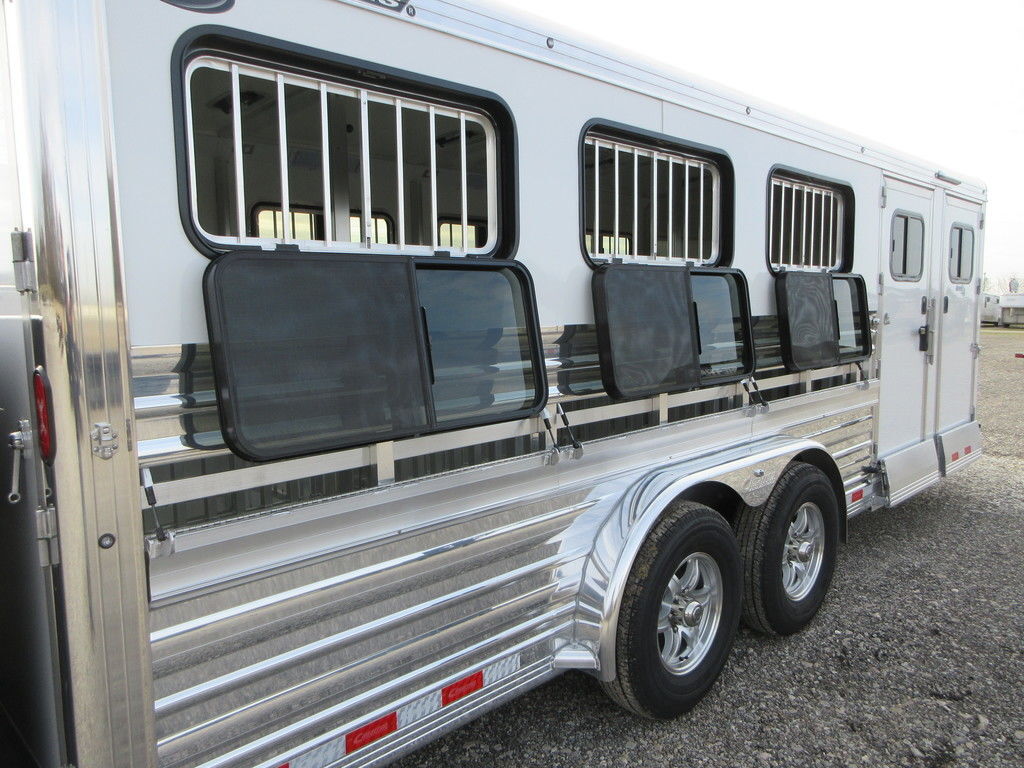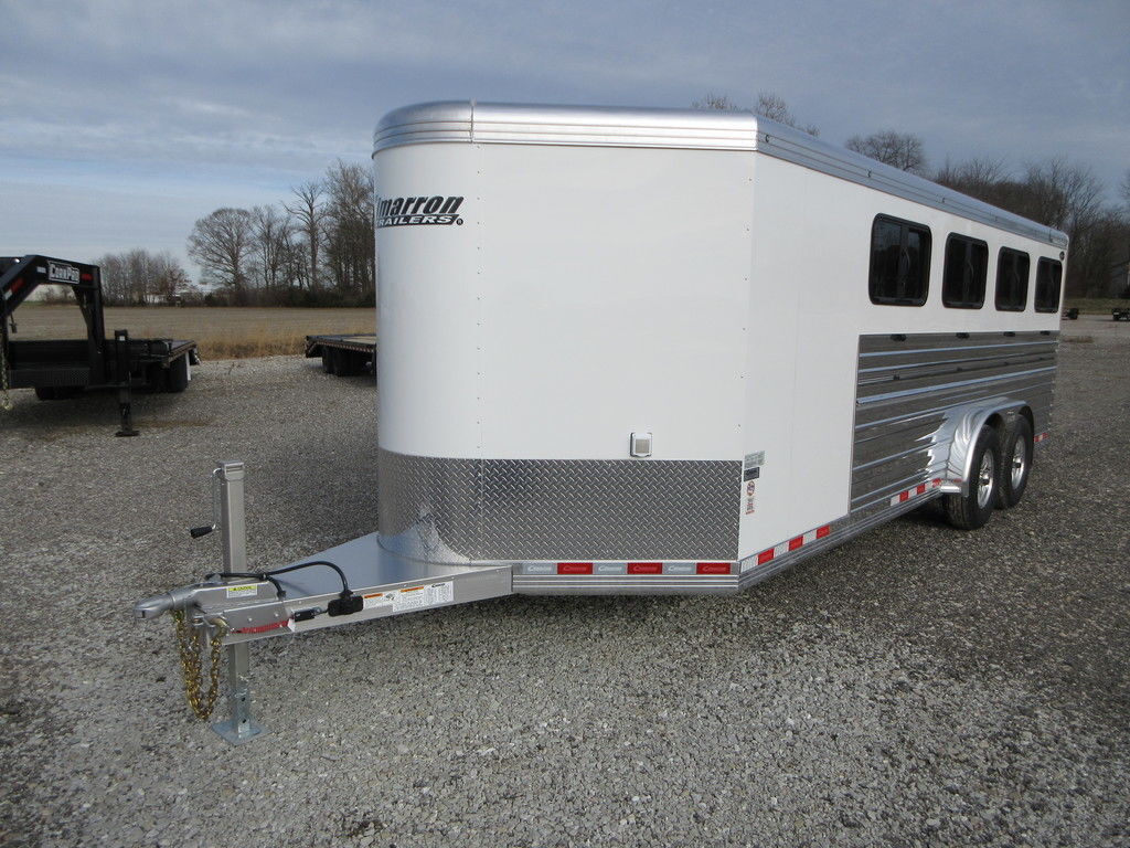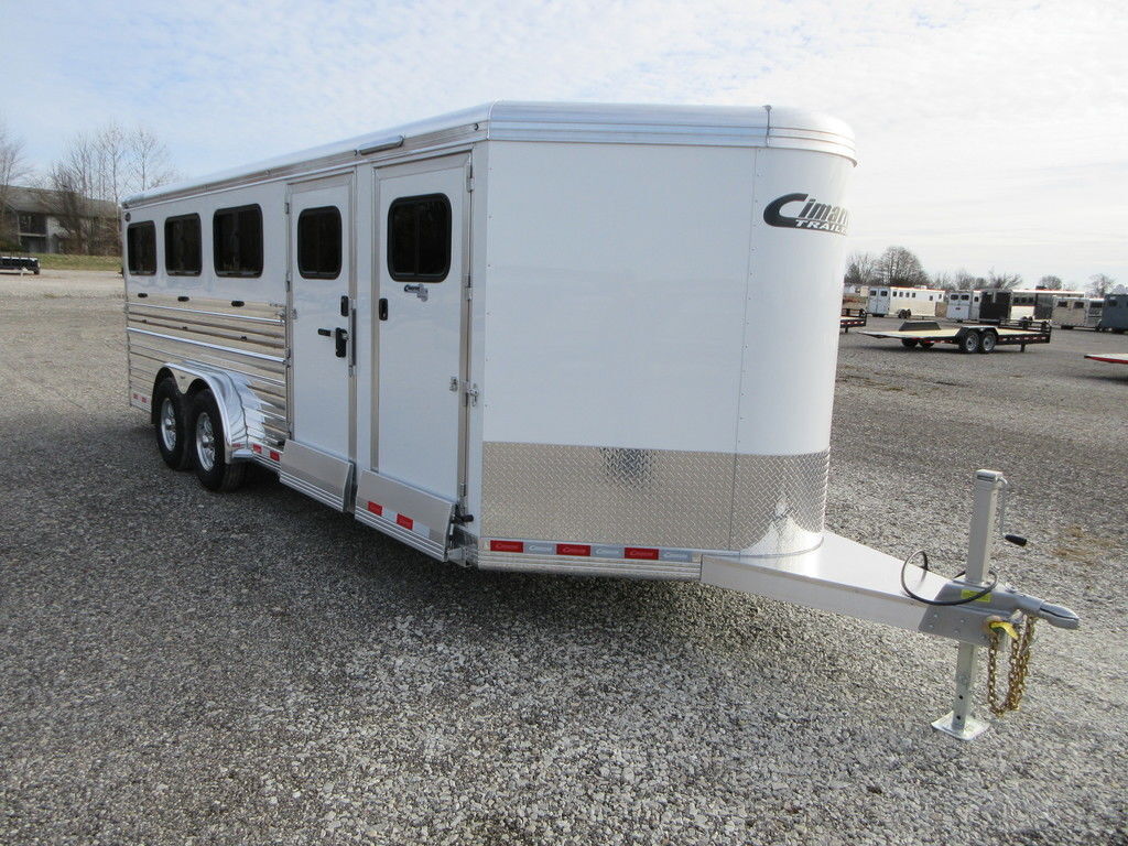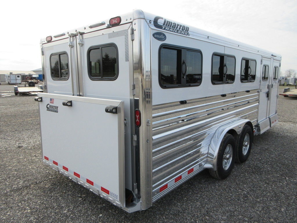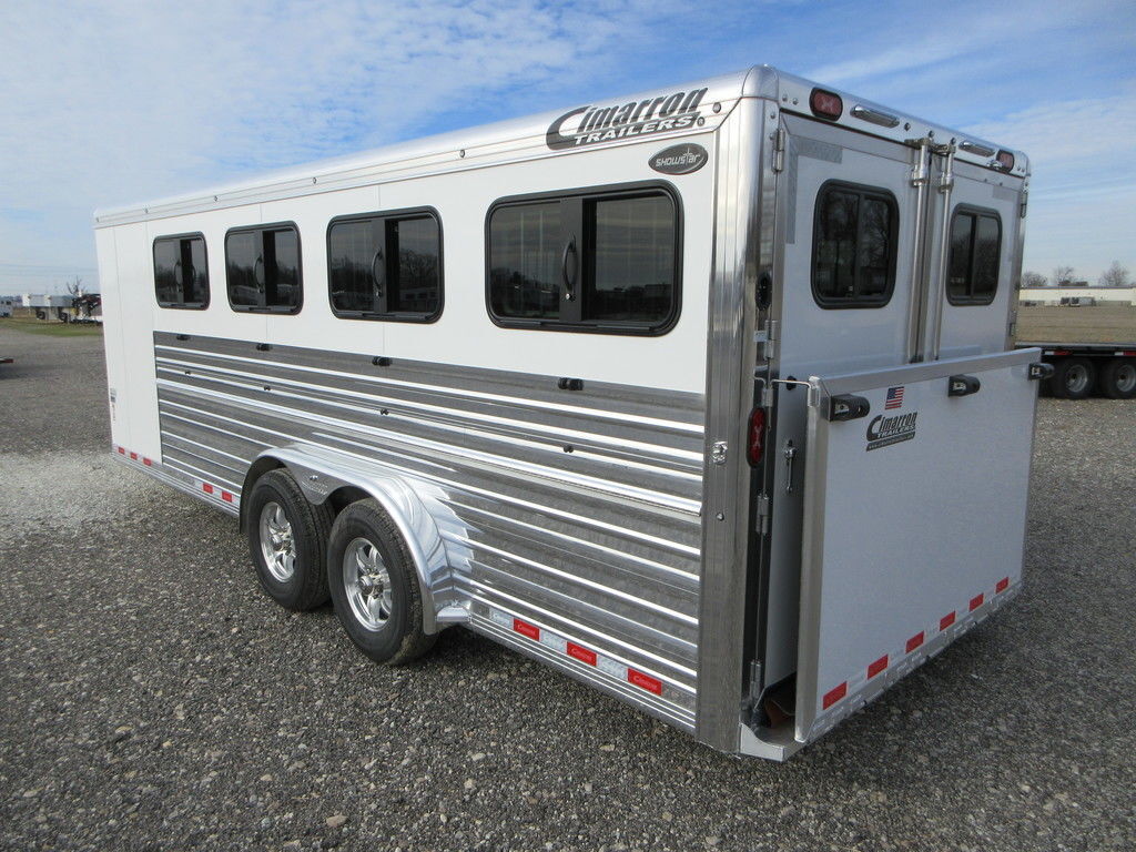 2026 Cimarron Showstar 8 pen, 23’3” x 7’6” x 6’4” Tall, 2 5,200lb White skin with polished aluminum sides, uprights, and top rail, Dexter Torsion Axles with electric brakes, Aluminum wheels, Tack with rubber floors, Hooks, 8 adjustable pens with removable posts, feeder rails on pens, Interior and Exterior LED lights, 50/50 Rear gates fold down ramp. Wired 110 with converter, Trades considered, financing available with approved credit. Main Trailer Sales, LLC www.maintrailersales.com 812-524-7986 Stock#TC017722 2026 Cimarron Showstar 8 pen, 23’3” x 7’6” x 6’4” Tall, 2 5,200lb White skin with polished aluminum sides, uprights, and top rail, Dexter Torsion Axles with electric brakes, Aluminum wheels, Tack with rubber floors, Hooks, 8 adjustable pens with removable posts, feeder rails on pens, Interior and Exterior LED lights, 50/50 Rear gates fold down ramp. Wired 110 with converter, Trades considered, financing available with approved credit. Main Trailer Sales, LLC www.maintrailersales.com 812-524-7986 Stock#TC017722