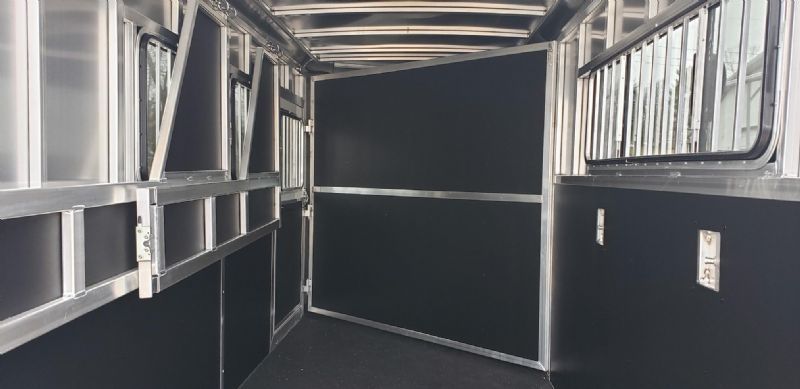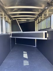 Their all aluminum trailers are built with the horseman in mind. They incorporate many different new and exciting features such as extra-large rear tacks, sliding mid tacks, and large bus windows for added horse area ventilation and comfort.  Most of the components inside the trailers are manufactured on location at the Shadow factory.