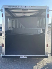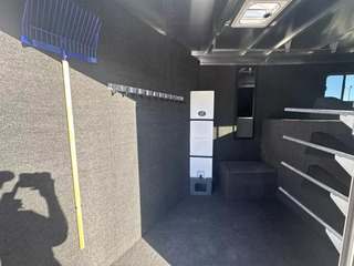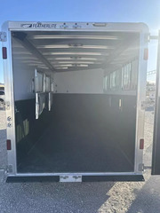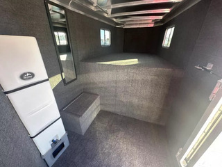 Horse Area - double rear doors, nylon butt & chest strap, escape door, drop down windows w/ folding faceguards (head), sliding bus windows (hip), spring loaded padded air flo dividers w/ slam latches, kick pads, easy care floor, lined and insulated walls, pop up roof vents, interior LED lights, 5 interior tie rings per horse.