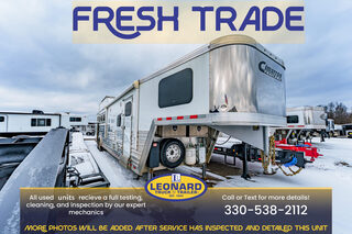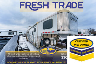 View Inventory: https://leonardtrailers.com/inventory/45499 Stock# 45499 Used 2023 Cimarron 4 Horse Gooseneck Trailer with Living Quarters General Information: Model: NS4HG3380ZMS Exterior: XT SS Construction: Aluminum Primary Color: White Coupler Size: 2 5/16”  Length: 34’ Width: 8’ Height: 7’7” Type: Slant load Living Quarters Size: 15’6” Interior Colors: Brown Living Quarters Options Air conditioning / Furnace (ducted) Heat strip Generator Sofa / Dinette Sink / Stove Refrigerator / Microwave Sink in bath Toilet / Shower Slide-out: Yes Slide Type: Hydraulic Horse Area Options Mats / Pads Vents / Lights Mangers Rubber Lining: Complete Escape Type: 1 Full Walk Out Tack Area Type: Rear collapsible Doors / Gates Double rear doors Ramp behind gate Axles / Weight / Running Gear GVW: 18,000 lbs Axle Size: 9,000 lbs Tire Size: 17.5 Number of Brakes: 4 Spare Tire Jacks: Dual Jack Type: Hydraulic Nose Type: Tapered Empty Weight: 9,650 lbs Brakes: Electric We offer outstanding financing options, accept trades, and can arrange nationwide NO HASSLE delivery! Inquire today for more information! (888) 333-6613 **We believe these specifications to be accurate. Any discrepancies are unintentional. Please verify information with a sales associate prior to purchase.** Stock Number:45499