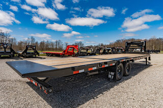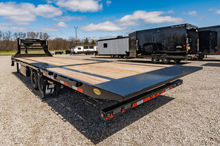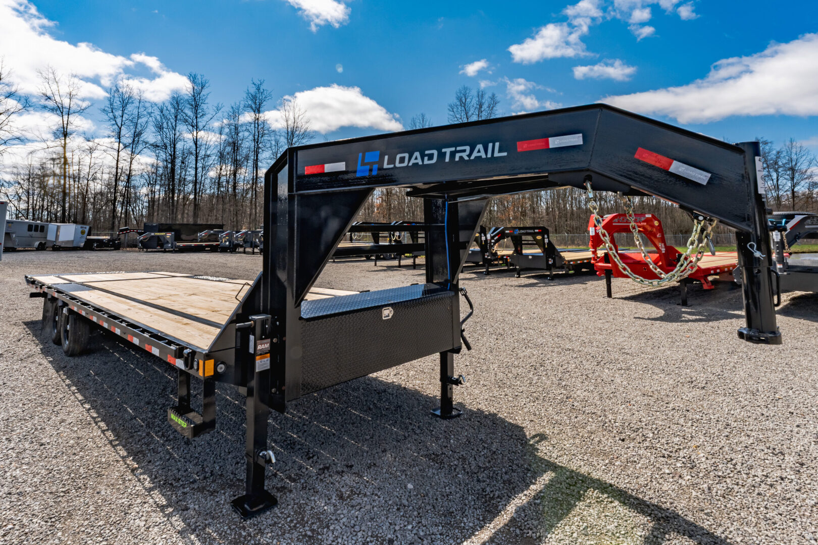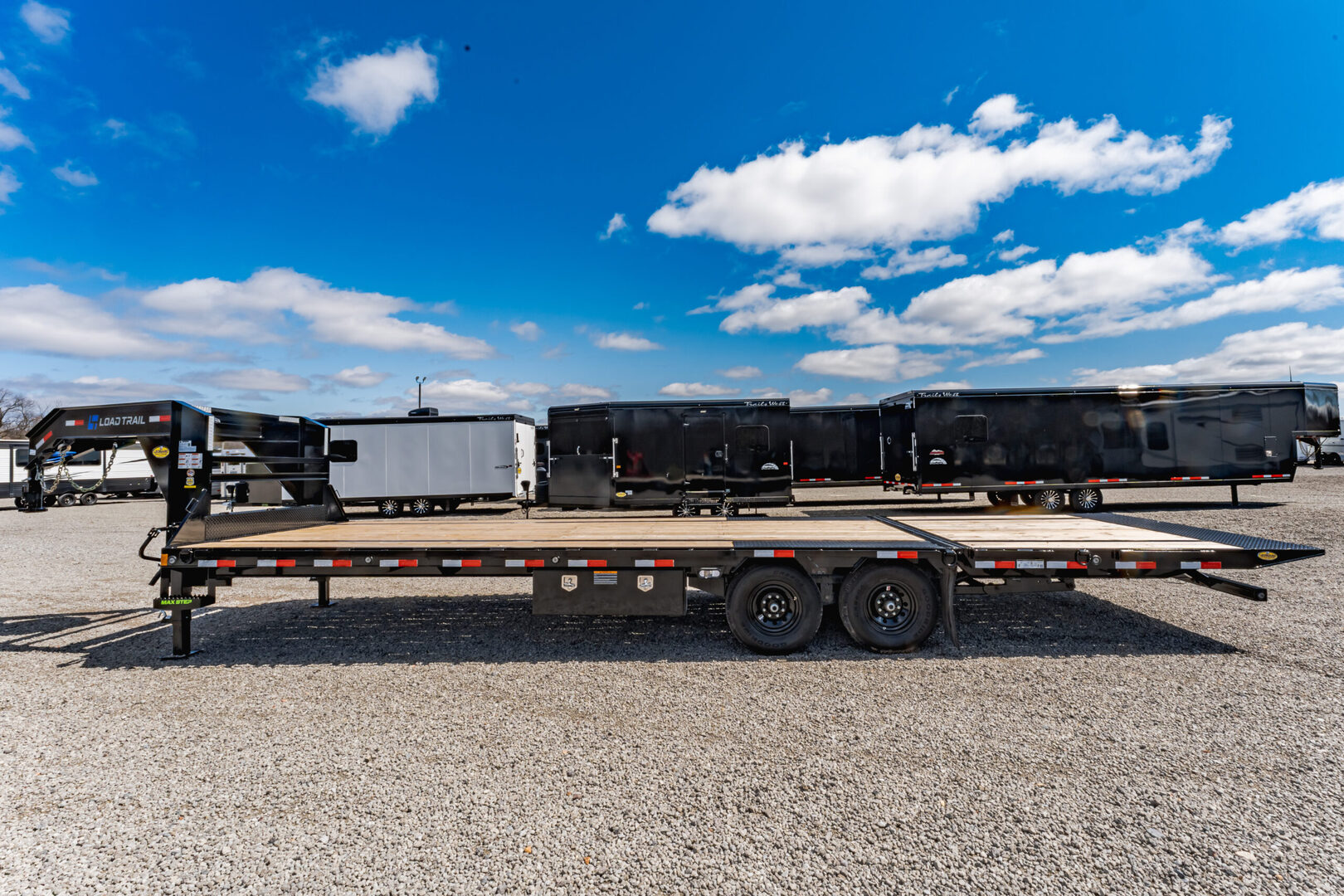 View Inventory: https://leonardtrailers.com/inventory/45504 Stock #45504 – New 2026 Load Trail GL0230072 102” x 30’ Single Wheel Low-Pro Gooseneck Trailer The New 2026 Load Trail GL0230072 is a rugged, low-profile gooseneck trailer designed for hauling equipment and machinery safely and efficiently. With a hydraulic dovetail, treated wood flooring, and reinforced construction, this trailer delivers heavy-duty performance for both commercial and personal applications. Key Specifications Trailer Type: Single Wheel Low-Pro Gooseneck Deck Size: 102” x 30’ Axles: (2) 7,000 lb Dexter spring axles with electric full-service brakes Tires: ST235/80R16 LRG (14-ply) Wheels: Black steel Coupler: 2-5/16” adjustable round (6” raised neck & coupler) Color: Black with primer Frame & Construction Hydraulic 9’ dovetail Treated wood flooring 16” cross-members Standard frame without bridge 2” rub rail along sides Front full-width tool box between risers Winch plate (8” channel) Jacks & Loading Accessories Spring-loaded drop-leg jacks (2 – 10K) MAX-STEPS side steps (2 – 15”) 4 weld-on D-rings for tie-downs Mud flaps included Electrical & Lighting LED lights with cold-weather harness Standard 5 Amp wall battery charger Stud junction box Additional Features Toolbox brackets (1 set) Road Service Program available: 833-278-3396 for info We offer excellent financing options, accept trades, and provide nationwide NO-HASSLE delivery. Call today for more details: (888) 333-6613 All specifications believed to be accurate—please verify with a sales associate prior to purchase. Stock Number:45504