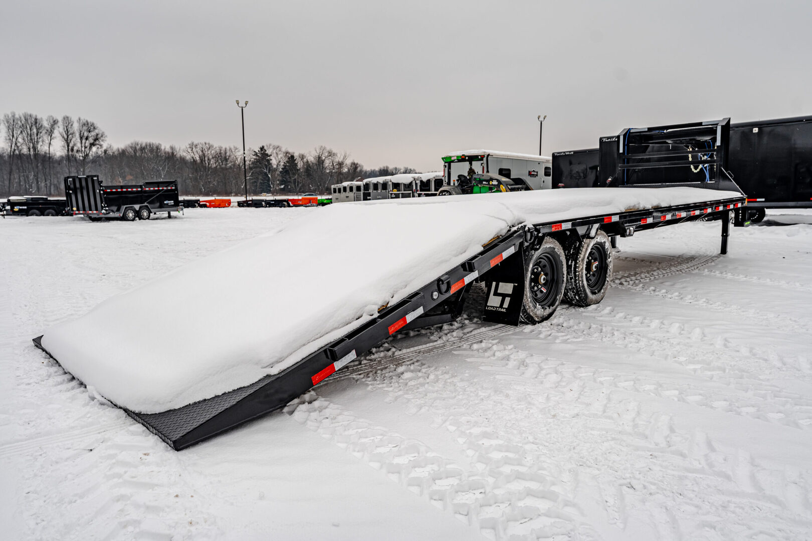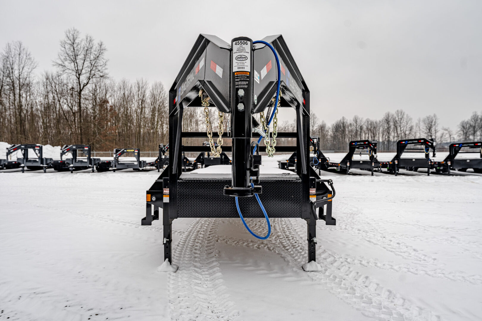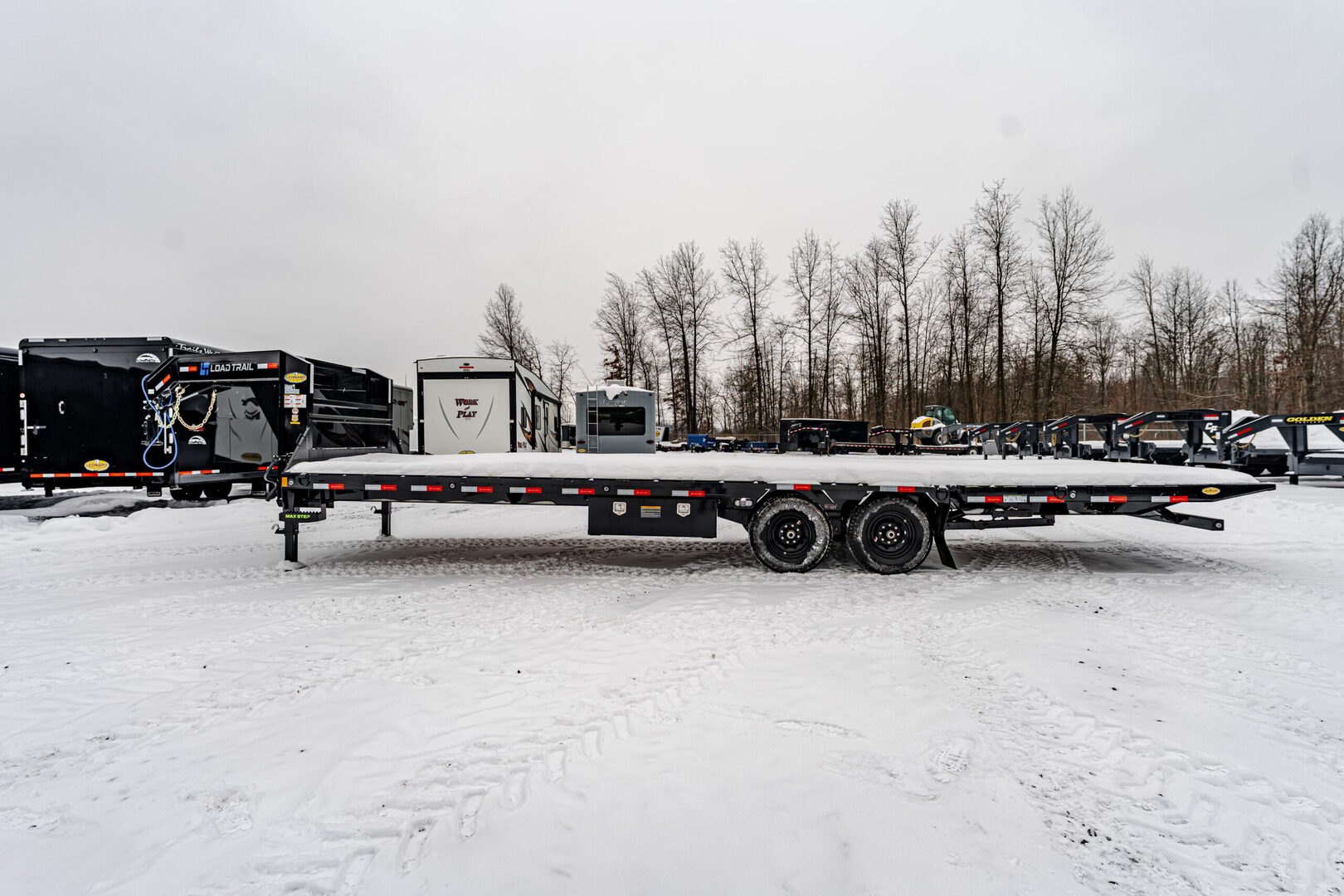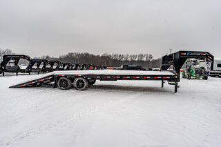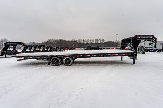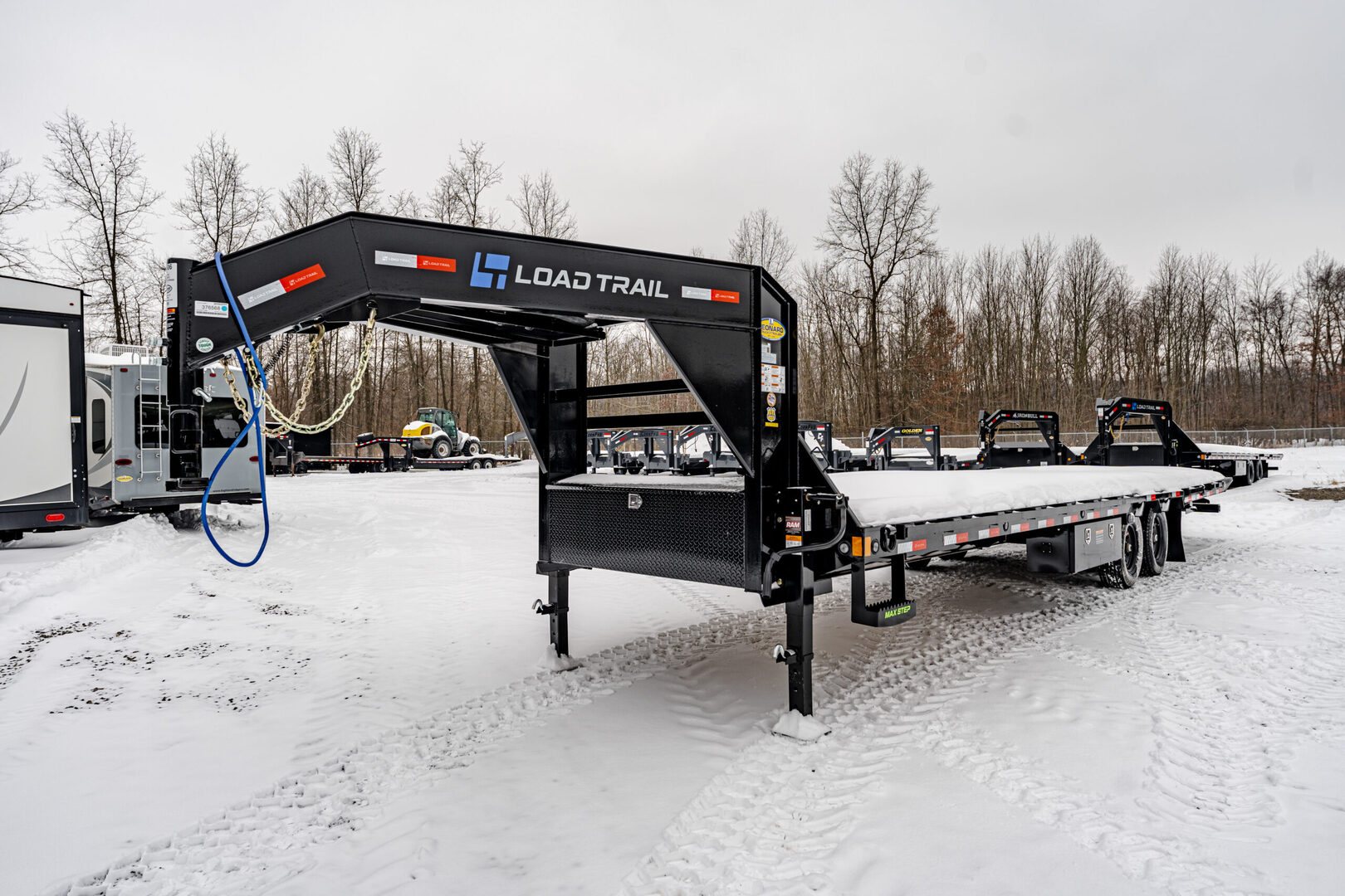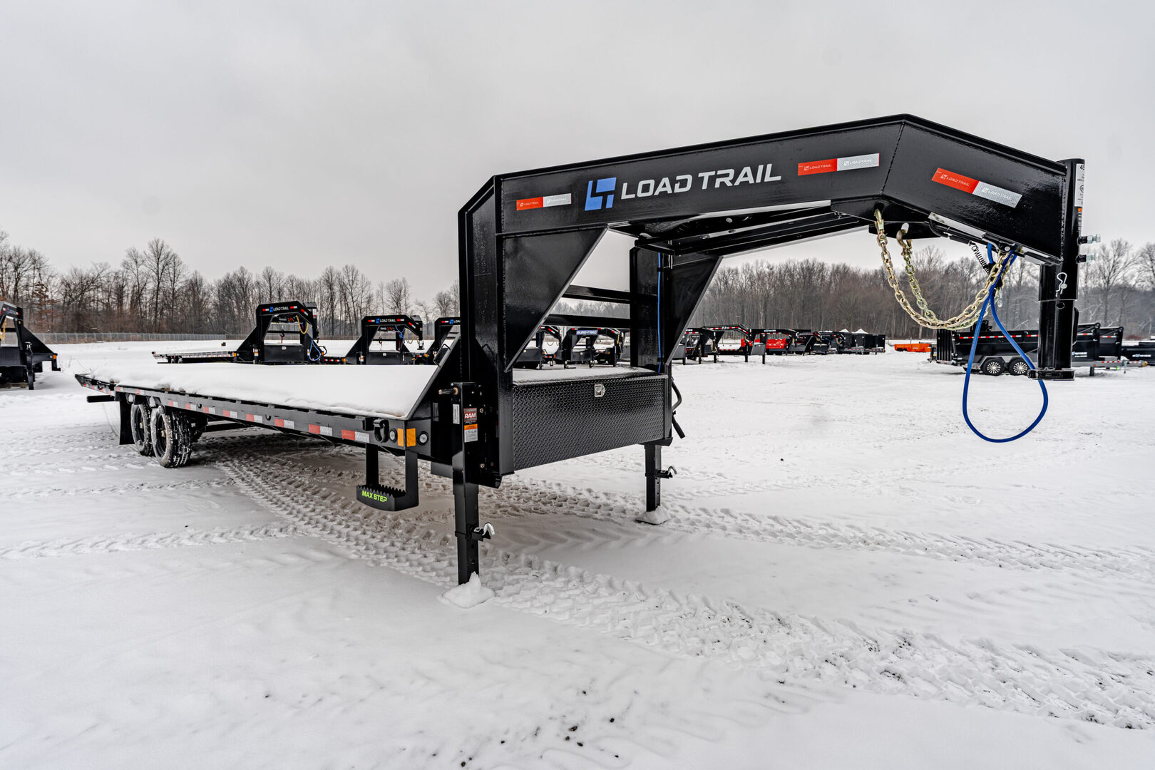 View Inventory: https://leonardtrailers.com/inventory/45506 Stock #45506 – New 2026 Load Trail GL0230072 102” x 30’ Single Wheel Low-Pro Gooseneck Trailer The New 2026 Load Trail GL0230072 is a durable, low-profile gooseneck trailer designed for safe, efficient hauling of equipment and machinery. With a hydraulic dovetail, treated wood flooring, and high-quality construction, it’s built for long-term performance and reliability. Key Specifications Trailer Type: Single Wheel Low-Pro Gooseneck Deck Size: 102” x 30’ Axles: (2) 7,000 lb Dexter spring axles with electric full-service brakes Tires: ST235/80R16 LRG (14-ply) Wheels: Black steel Coupler: 2-5/16” adjustable round (6” raised neck & coupler) Color: Black with primer Frame & Construction 9’ hydraulic dovetail Treated wood flooring 16” cross-members Standard frame without bridge 2” rub rail along sides Front full-width toolbox between risers Winch plate (8” channel) Jacks & Loading Accessories Spring-loaded drop-leg jacks (2 – 10K) MAX-STEPS side steps (2 – 15”) 4 weld-on D-rings for tie-downs Mud flaps included Electrical & Lighting LED lights with cold-weather harness Standard 5 Amp wall battery charger Stud junction box Additional Features Toolbox brackets (1 set) Road Service Program available: 833-278-3396 for info We offer excellent financing options, accept trades, and provide nationwide NO-HASSLE delivery. Call today for more details: (888) 333-6613 All specifications believed to be accurate—please verify with a sales associate prior to purchase. Stock Number:45506