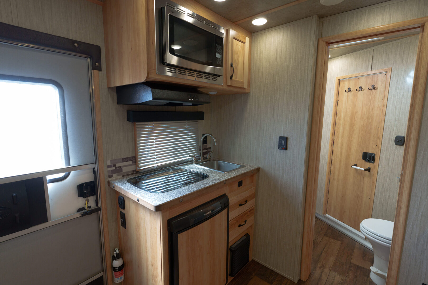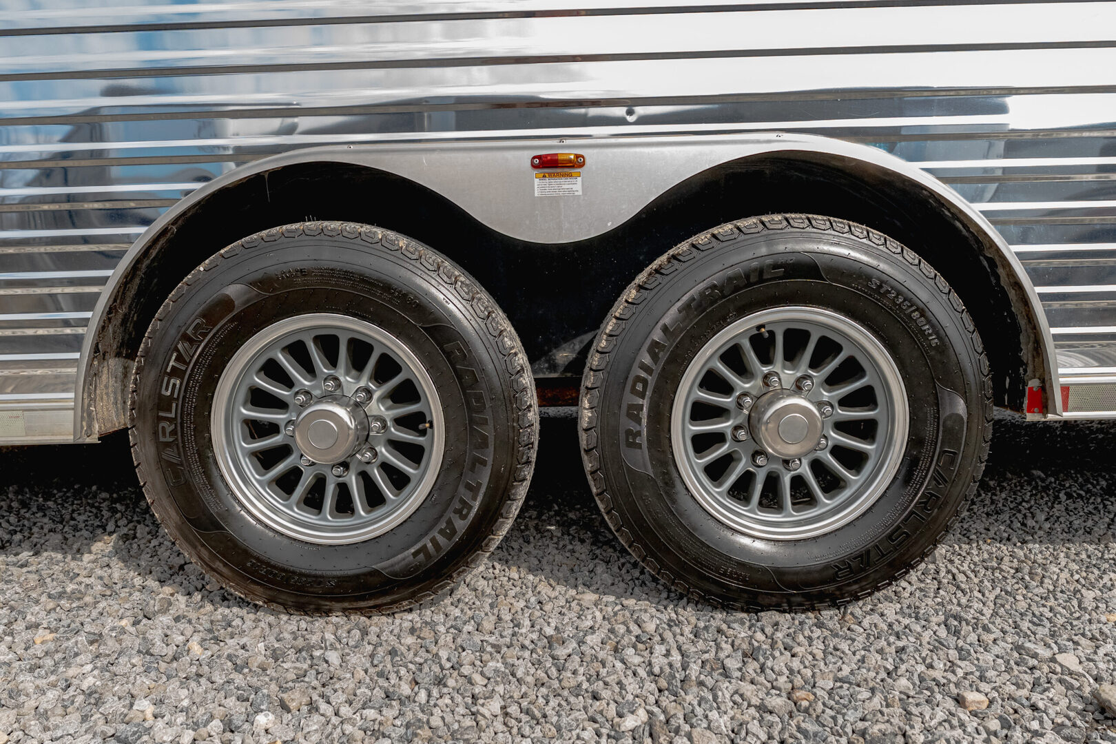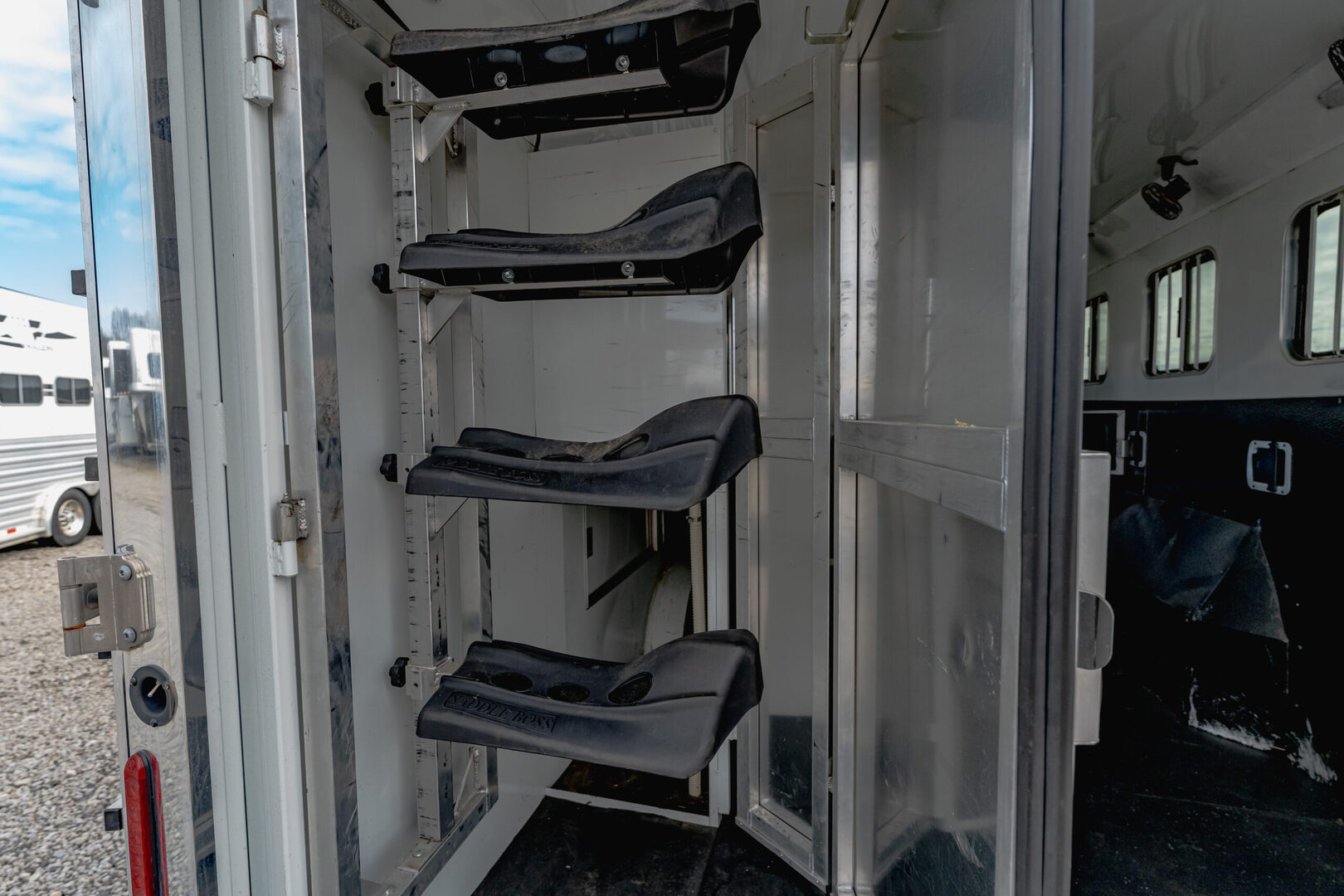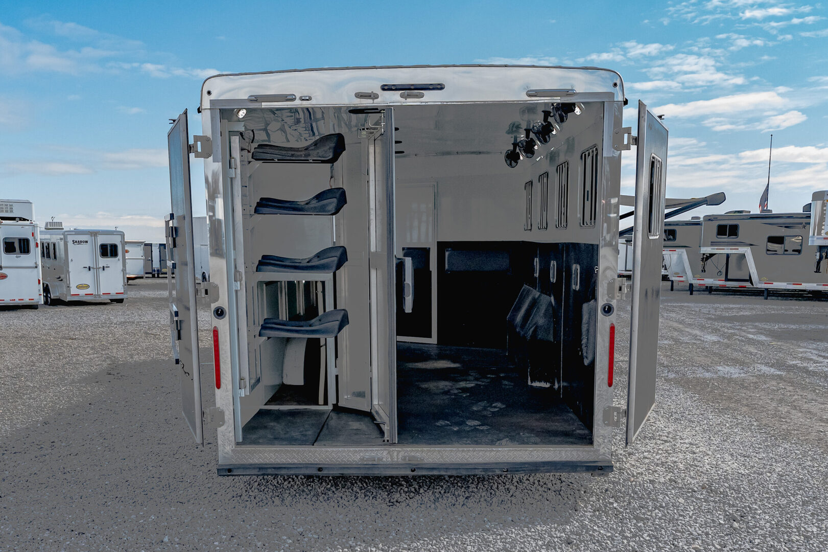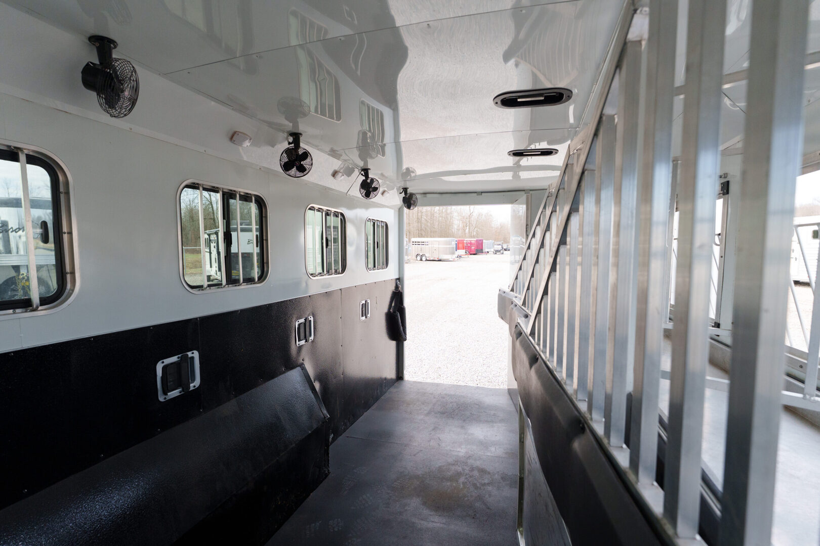 View Inventory: https://leonardtrailers.com/inventory/45498 Stock# 45498 Used 2021 Bison Coach 8409 Gooseneck 4 Horse with Living Quarters Trailer  General Information Exterior: XT SS Construction: Steel frame with aluminum skin Dimensions Length: 27 ft Width: 8 ft Height: 7 ft 6 in Coupler / Roof Coupler Size: 2 5/16” Adjustable Coupler: Yes Roof Material: Aluminum Primary Color: White Horse Area Type: Slant load Horse Area Options  Mats Pads Vents Lights Mangers Manger access doors Rubber Lining Complete Escape Type 1 Full Walk Out Tack Area Type: Rear collapsible Living Quarters Living Quarters Size: 9 ft Awning Size: 6 ft Living Quarters Options  Access to horse area Ducted A/C Heat strip / Furnace (ducted) Generator Sofa / Dinette Sink / Kitchen Stove / Refrigerator Microwave / Oven Sink in bath Toilet / Shower Slide Out Slide Out Size: 6 ft Slide Out Type: Electric Doors / Gate Double rear doors Axles / Weight / Running Gear GVW: 17,100 lbs Axle Size: 7,000 lbs Tire Size: 16” Number of Brakes: 4 Jacks: Single Jack Type: Hydraulic Spare Tire: Yes Ride Type: Rubber Ride   We offer outstanding financing options, accept trades, and can arrange nationwide NO HASSLE delivery! Inquire today for more information! (888) 333-6613 **We believe these specifications to be accurate. Any discrepancies are unintentional. Please verify information with a sales associate prior to purchase.** Stock Number:45498
