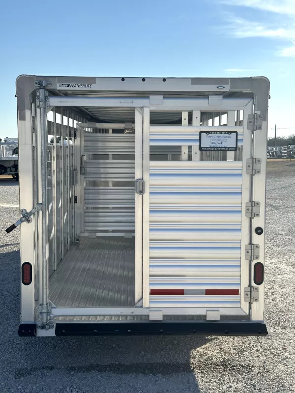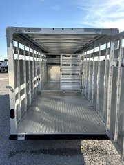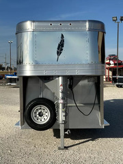 # 2026 Featherlite 24’ Stock Gooseneck 24’L x 6’7”W x 6’6”T Horse Area - western package, skid-resistant extruded aluminum floor, full rear swing gate w/ slide, center cut gate w/ slide, 6” side stock panel, escape door, removable drop gate panel, side panel w/ 2 top air spaces, LED lights inside the stock area, switch under the gooseneck. Other Features - 235/80R16 tires, spare tire, tandem 7,000 lbs rubber torsion axles w/ electric brakes, easy lube axles, single speed center leg landing gear, aluminum running boards, rear rubber bumper, LED clearance lights, gooseneck 2 5/16 adjustable coupler. Trailer comes with full factory warranty! Financing available with rates as low as 6.49% WAC Call our sales department at 940-365-9919 After hours call or text 612-381-6782
