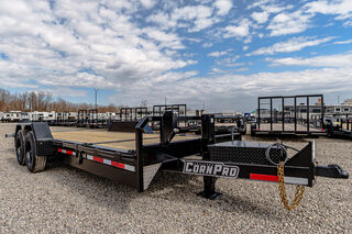 View Inventory: https://leonardtrailers.com/inventory/45515 Stock# 45515 New 2026 Corn Pro UT-21 XT 16K Bumper Pull Equipment Trailer When you know the 10” I-beam construction of a CornPro flatbed is what you need, but you don’t require any tilt, our Single Tandem series is right for you. With 12- or 15-lbs. per foot on the 24” centers depending on length, this trailer gets the job done. And, with four different dovetail options, you can pick the one that fits exactly how you like to haul. Model:UT-21 XT 16K Warranty: 1yr- Limited UT-XT Xtreme Tilt Equipment Trailer (UT-21 XT) Color: Black Axles: 8K axles w/ ST215/75R17.5 H tires Standard Features Frame: 8” channel (18.75 lbs per foot) Crossmembers: 3” channel, 16” OC Tongue: 8” channel with toolbox Axles: Dexter Toflex Coupler: Demco, adjustable, 2 5/16 Tilt Function: Gravity tilt with hydraulic dampening cylinder Jack: Jost, 12K, set back (4” square) Tires: 8K axles ? ST215/75R17.5 H, 8-bolt 10K axles ? ST235/80R17.5 H, 8-bolt Lighting: LED Tie Downs: (2) D-rings at front Stationary Deck: 4’ length Options / Add-ons Extra D-rings: 4 additional   We offer outstanding financing options, accept trades, and can arrange nationwide NO HASSLE delivery! Inquire today for more information! (888) 333-6613 **We believe these specifications to be accurate. Any discrepancies are unintentional. Please verify information with a sales associate prior to purchase.** Stock Number:45515