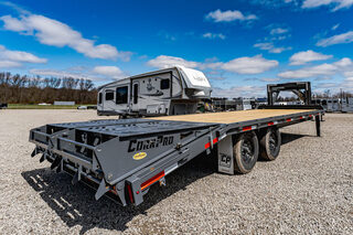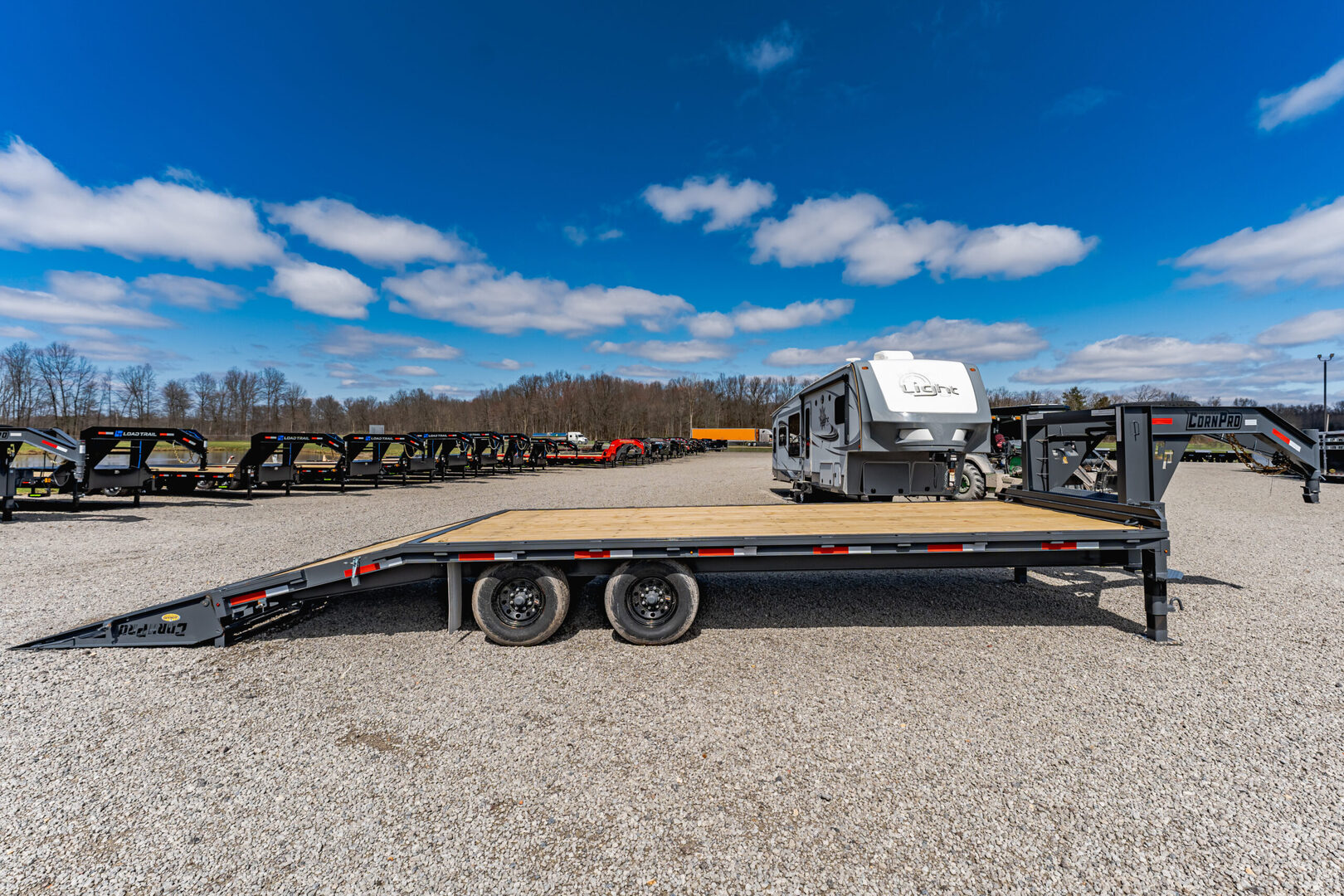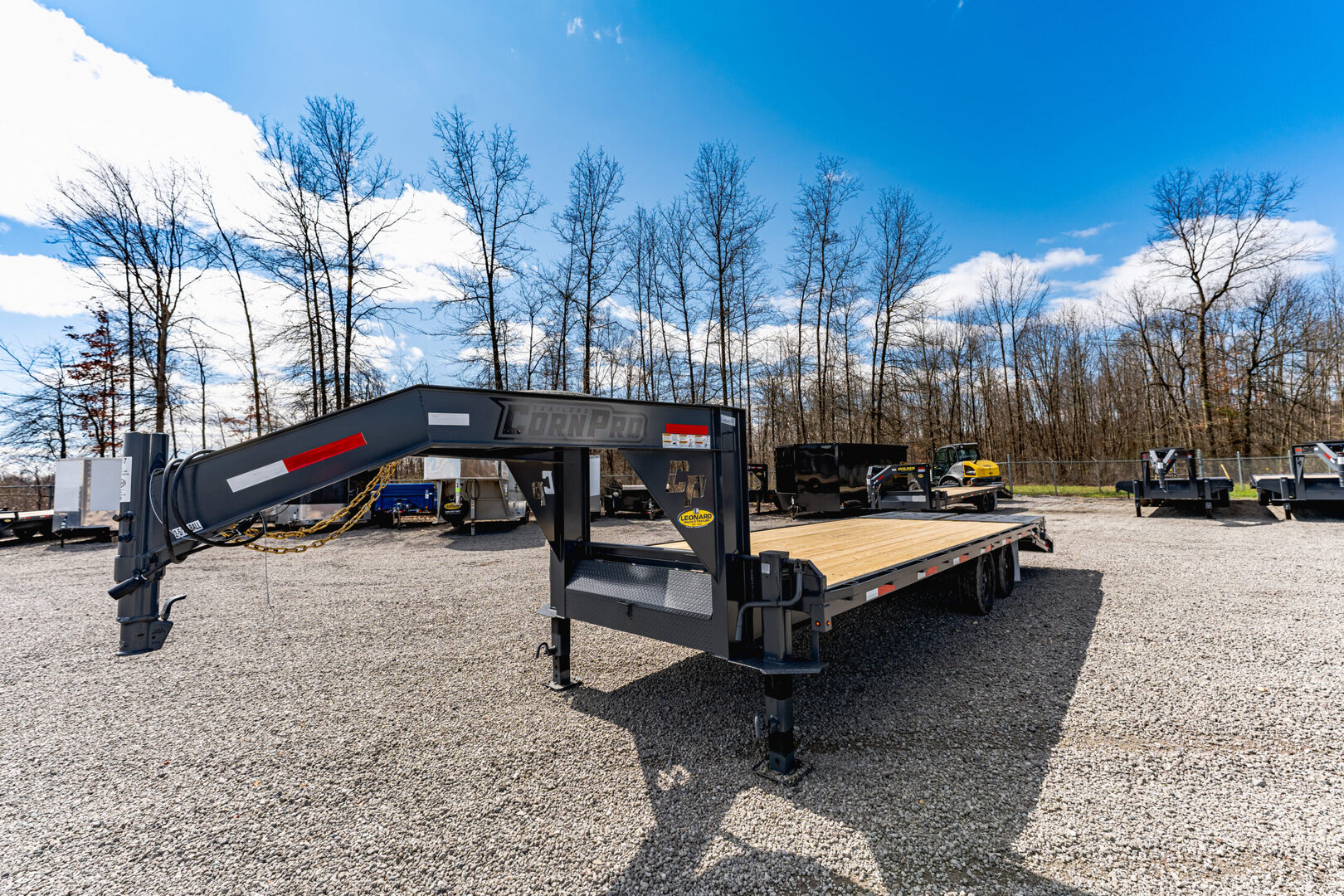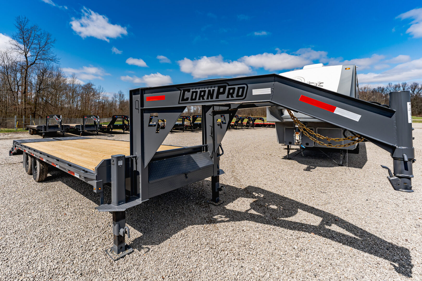 View Inventory: https://leonardtrailers.com/inventory/45517 Stock# 45517 New 2026 Corn Pro I-SERIES 20+5 14K Gooseneck Equipment Trailer When you know the 10” I-beam construction of a CornPro flatbed is what you need, but you don’t require any tilt, our Single Tandem series is right for you. With 12- or 15-lbs. per foot on the 24” centers depending on length, this trailer gets the job done. And, with four different dovetail options, you can pick the one that fits exactly how you like to haul. Model:I-SERIES 20+5 14K Warranty: 1yr- Limited Model Single Tandem I-Series Flatbed Configuration: 20’+5’ (7K) Hitch Type: Gooseneck Color Gray Axles Type: Dexter Torflex, 7K Selected Options Spare Tire: ST235/80R16 E  Front Toolbox Lid (gooseneck/bumper) Pro Ramps (full width wedge ramps) Standard Features Frame: 10” I-beam (weight per foot varies by length) Crossmembers: 3” channel, 16” on center Tongue: 10” I-beam Coupler: B&W Gooseneck, 2 5/16 Jack: Jost, double 12K, set back Tires: ST235/80R16 E, 8 bolt Lighting: LED Tie Downs: (2) D-rings at front of bed Ramps: 5’ wedge   We offer outstanding financing options, accept trades, and can arrange nationwide NO HASSLE delivery! Inquire today for more information! (888) 333-6613 **We believe these specifications to be accurate. Any discrepancies are unintentional. Please verify information with a sales associate prior to purchase.** Stock Number:45517