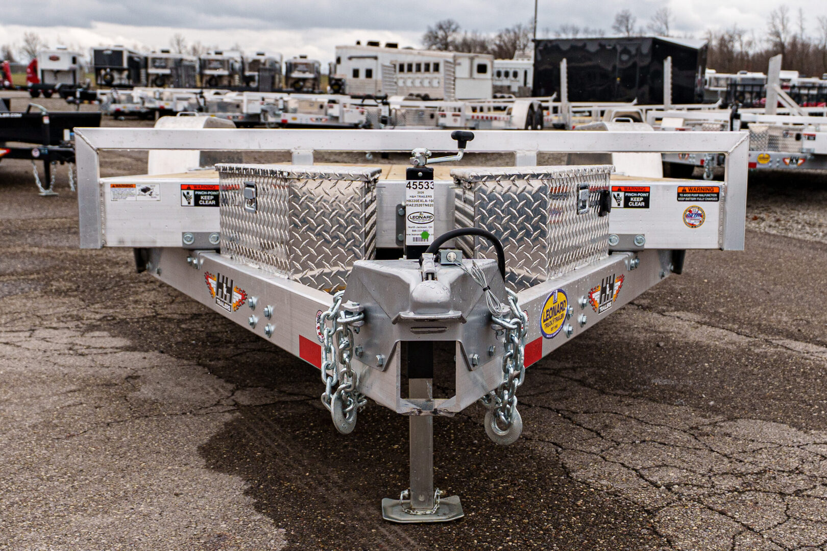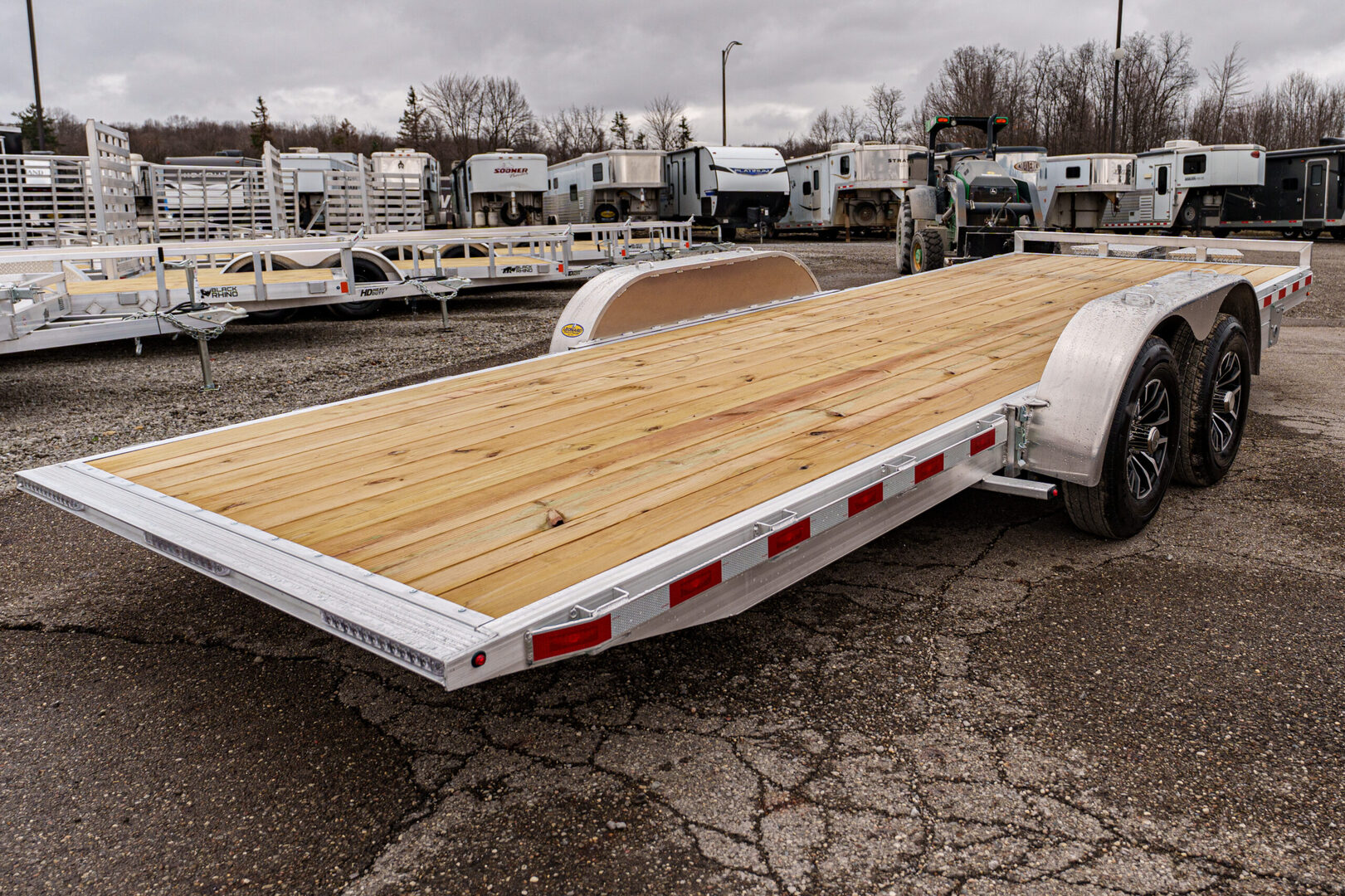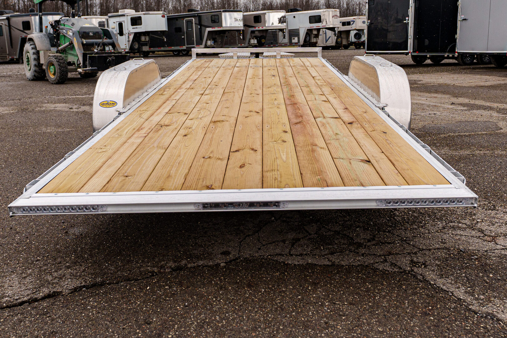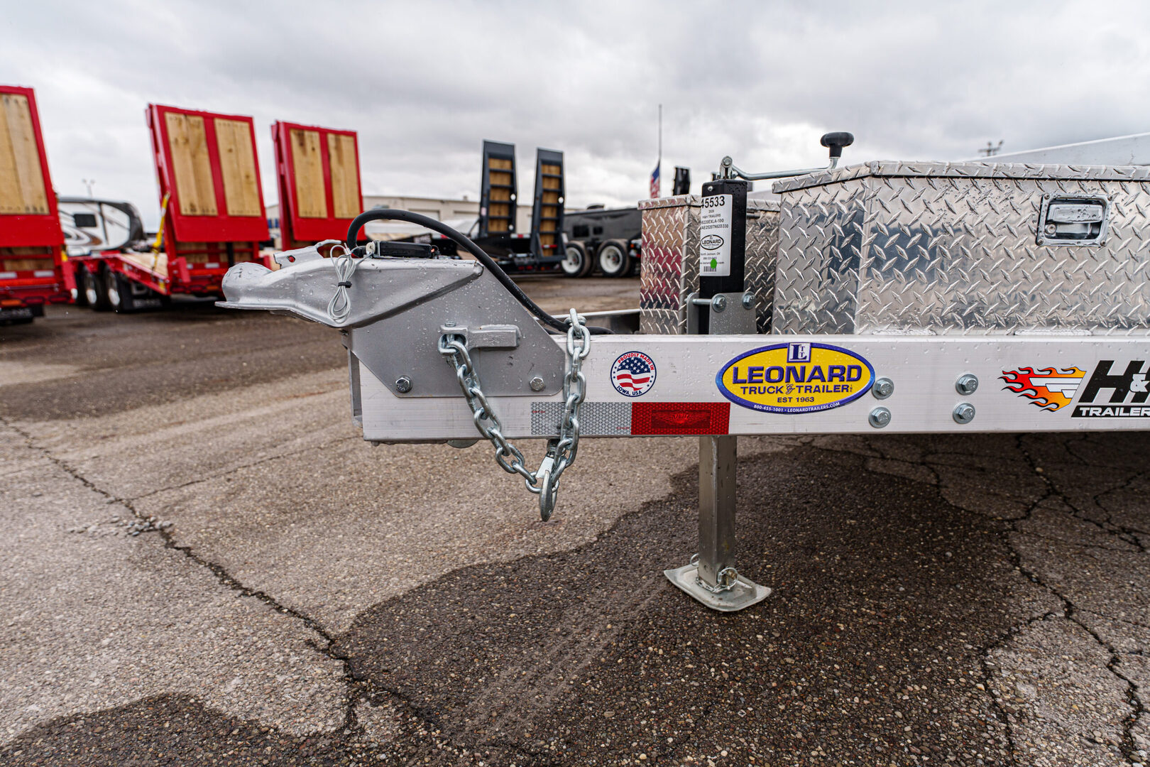 View Inventory: https://leonardtrailers.com/inventory/45533 Stock #45533 – New 2026 H&H 82” x 20’ Aluminum Electric Tilt Low Profile Speed Loader Car Hauler (10K GVWR) The New 2026 H&H 82x20 Aluminum Electric Tilt Low Profile Speed Loader is a lightweight, easy-to-tow aluminum car hauler designed for smooth loading and long-term durability. Its electric hydraulic tilt deck and low-profile design make it ideal for low-clearance vehicles and light equipment. Key Specifications GVWR: 10,000 lbs Axles: (2) 5,200 lb drop spring brake axles Coupler: 2-5/16” A-frame Posi-Lock Tires: ST225/75R15D (8-ply) Wheels: 15” 6-hole aluminum Deck Size: 82” x 20’ Deck Width: 79.25” Color: Aluminum Frame & Construction Main Frame: 8” aluminum channel Crossmembers: 3” aluminum channel Tongue: 6” aluminum channel, fully wrapped Tongue Style: Low profile Bulkhead: Aluminum tube Dovetail: Reverse taper cut Decking: 2” pressure-treated pine Tilt & Hydraulic System Electric hydraulic tilt deck 12-volt hydraulic pump Tongue-mounted lockable battery and pump box On-board 110V, 4-amp battery charger Loading & Securement Teardrop smooth aluminum fenders (removable) Aluminum stake pockets Aluminum rub rails Additional Features 7K drop-leg jack (set-back) DOT-compliant safety chains Easy-lube hubs Tongue-mounted toolbox Sealed wiring harness 7-pin round blade connector Full LED DOT-compliant lighting Warranty Limited 3-Year Warranty We offer excellent financing options, accept trades, and provide nationwide NO-HASSLE delivery. Call today for more details: (888) 333-6613 All specifications believed to be accurate—please verify with a sales associate prior to purchase. Stock Number:45533