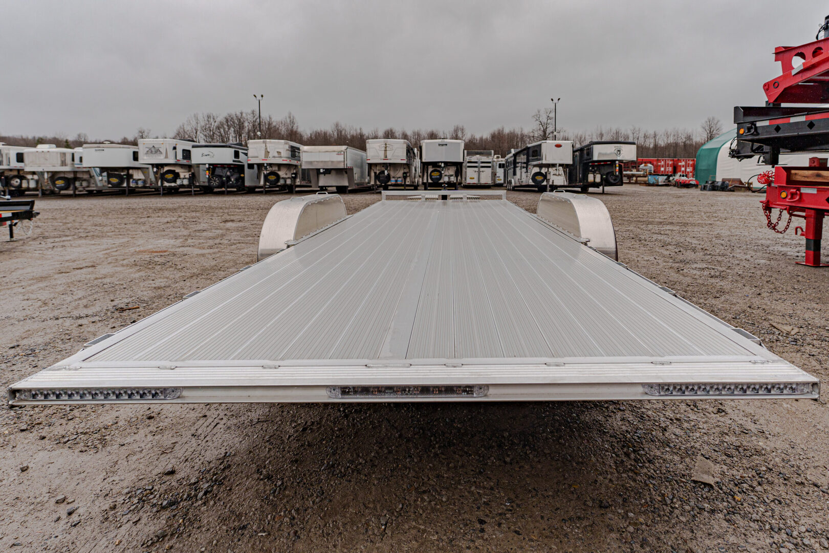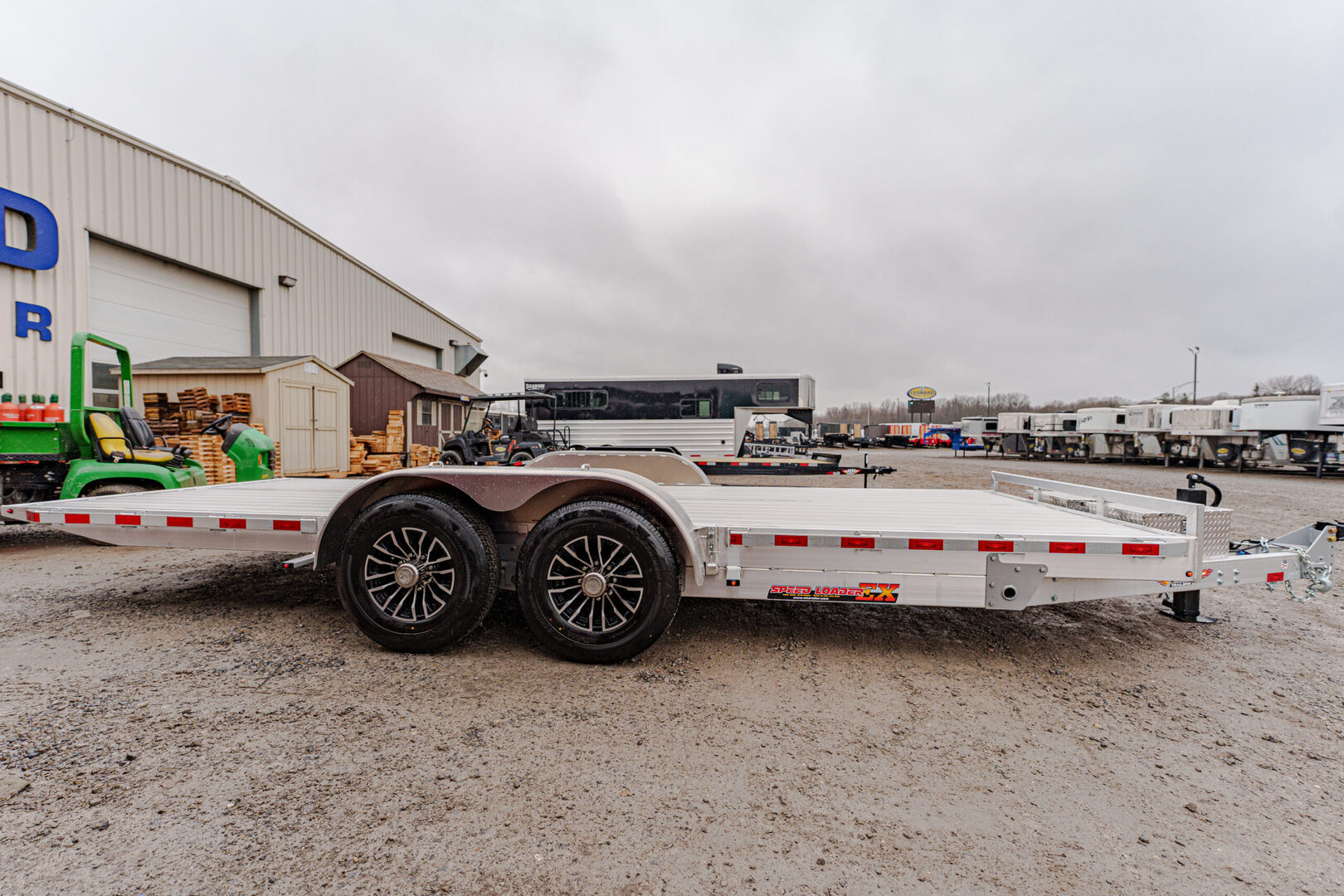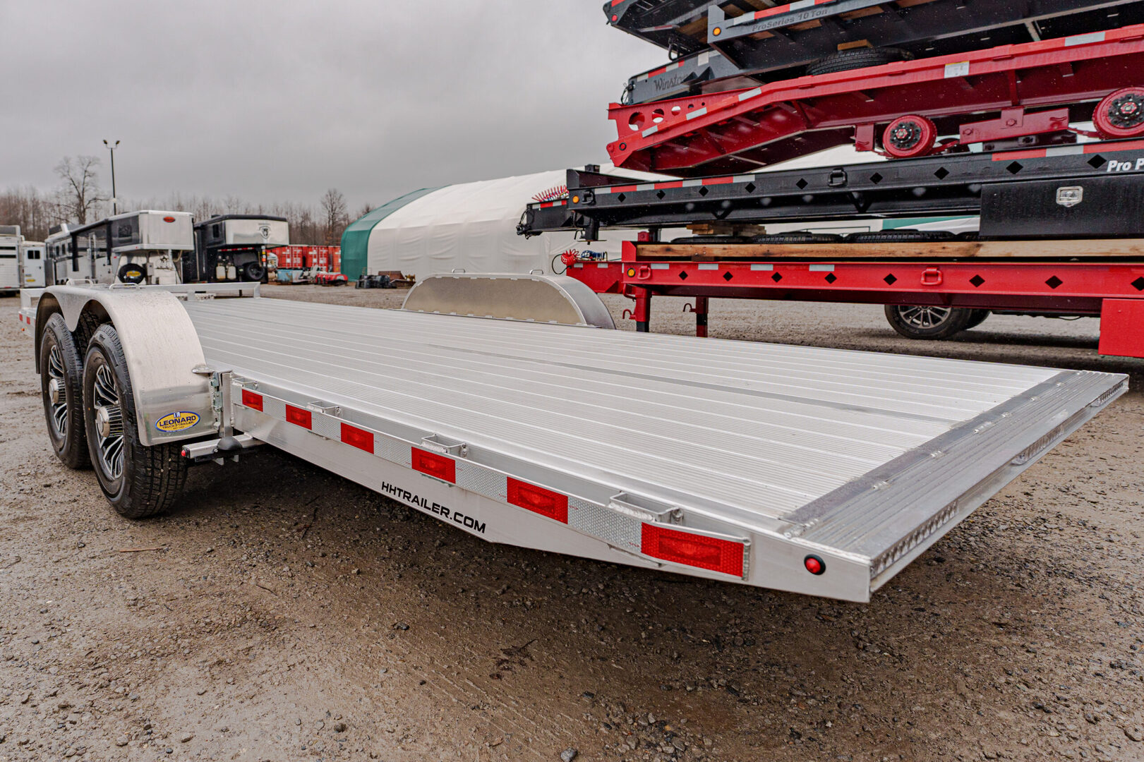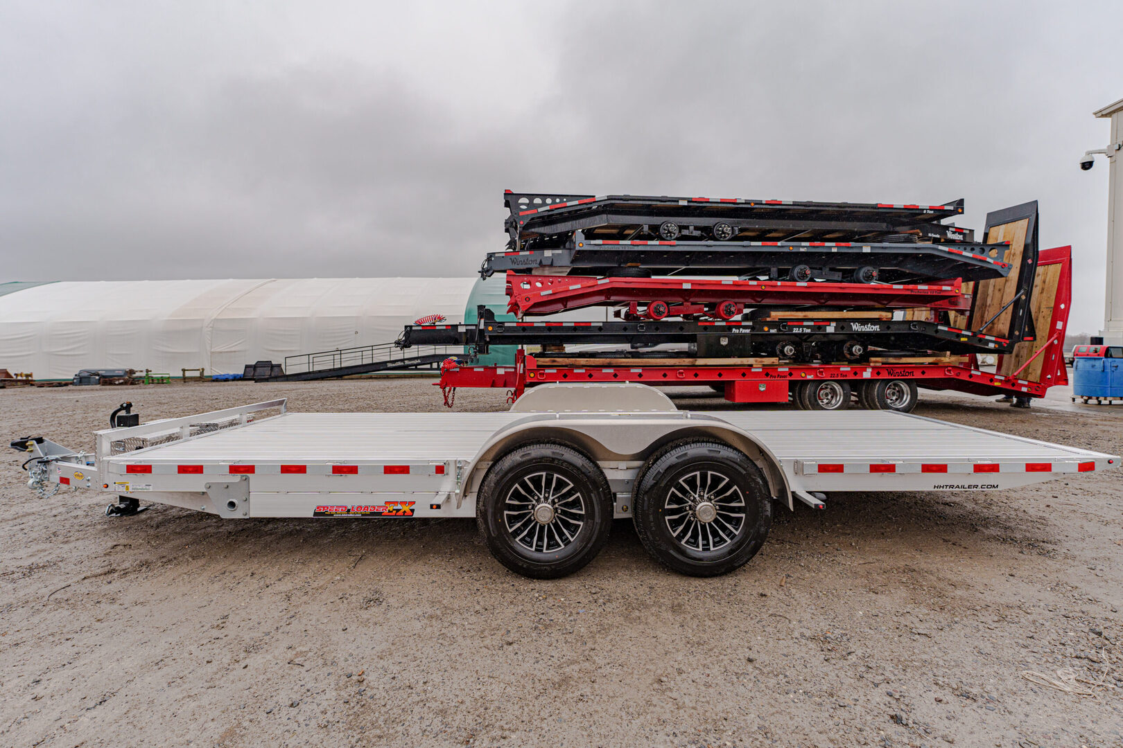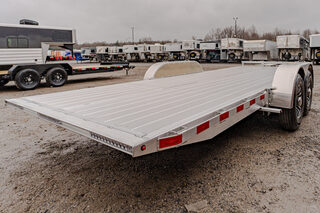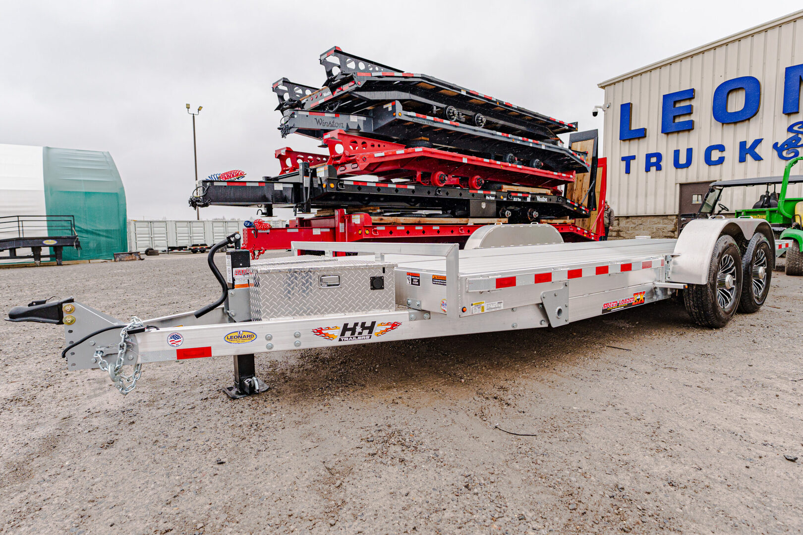 View Inventory: https://leonardtrailers.com/inventory/45536 Stock #45536 – New 2026 H&H 82” x 20’ Aluminum Electric Tilt Low Profile Speed Loader Car Hauler (14K GVWR) The New 2026 H&H 82x20 Aluminum Electric Tilt Low Profile Speed Loader delivers lightweight strength, corrosion resistance, and easy loading in a compact 20’ package. With an electric hydraulic tilt deck and all-aluminum construction, it’s ideal for low-clearance vehicles and equipment. Key Specifications GVWR: 14,000 lbs Axles: (2) 7,000 lb drop spring brake axles Coupler: 2-5/16” adjustable Tires: ST235/80R16E (10-ply) Wheels: 16” 8-hole aluminum Deck Width: 79.25” Color: Aluminum Frame & Construction Main Frame: 8” aluminum channel Crossmembers: 4” aluminum channel Tongue: 6” aluminum channel, fully wrapped Tongue Style: Low profile Bulkhead: Aluminum tube Dovetail: Reverse taper cut Decking: Extruded aluminum deck (upgrade) Tilt & Hydraulic System Electric hydraulic tilt deck 12-volt hydraulic pump Tongue-mounted lockable battery and pump box Loading & Securement Teardrop smooth aluminum fenders (removable) Aluminum stake pockets Aluminum rub rails Additional Features 12K drop-leg jack (set-back) DOT-compliant safety chains Easy-lube hubs Tongue-mounted toolbox Sealed wiring harness 7-pin round blade connector Full LED DOT-compliant lighting Warranty Limited 3-Year Warranty We offer excellent financing options, accept trades, and provide nationwide NO-HASSLE delivery. Call today for more details: (888) 333-6613 All specifications believed to be accurate—please verify with a sales associate prior to purchase. Stock Number:45536