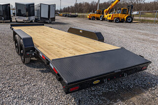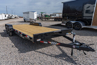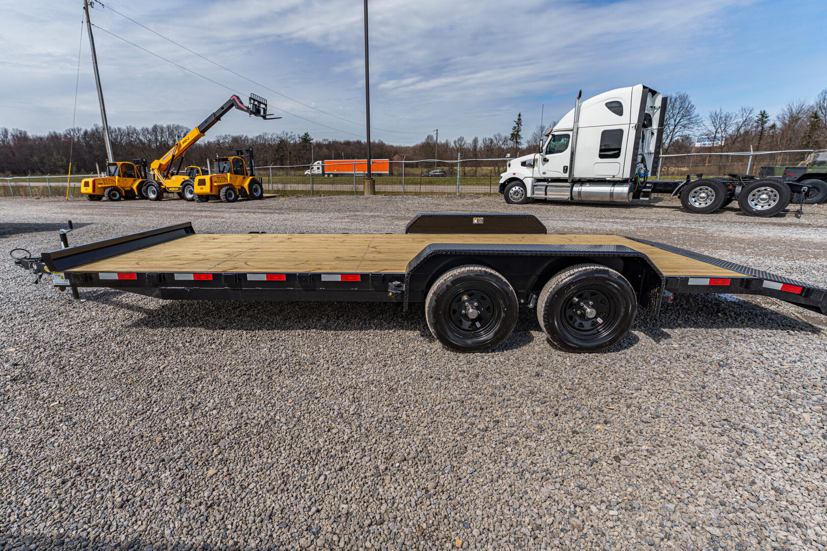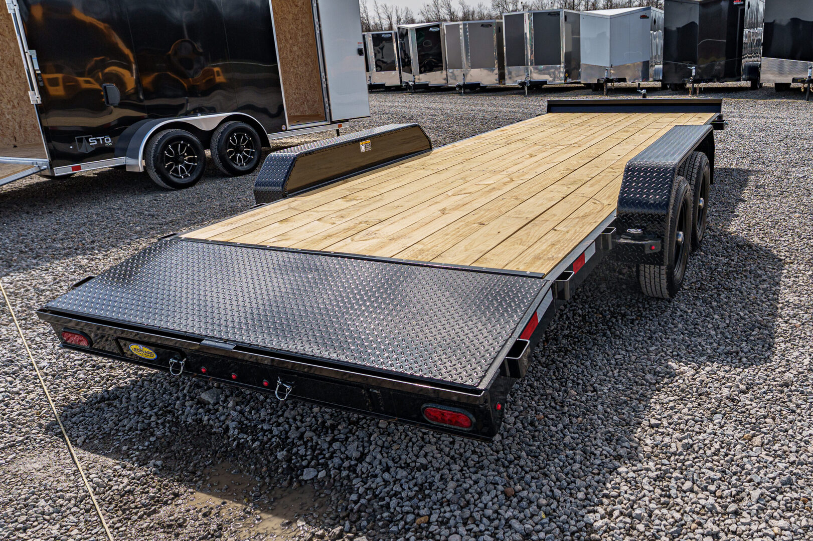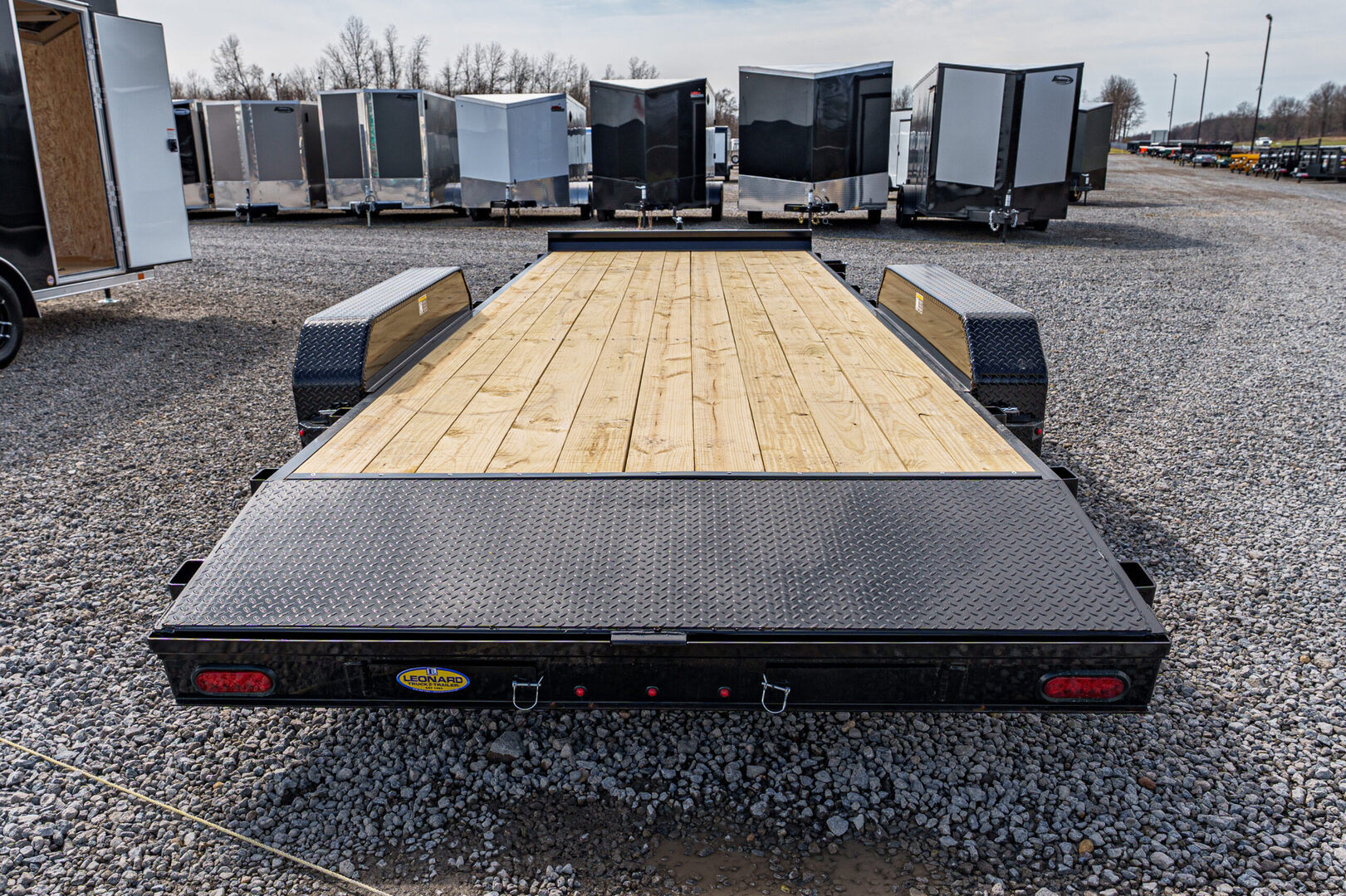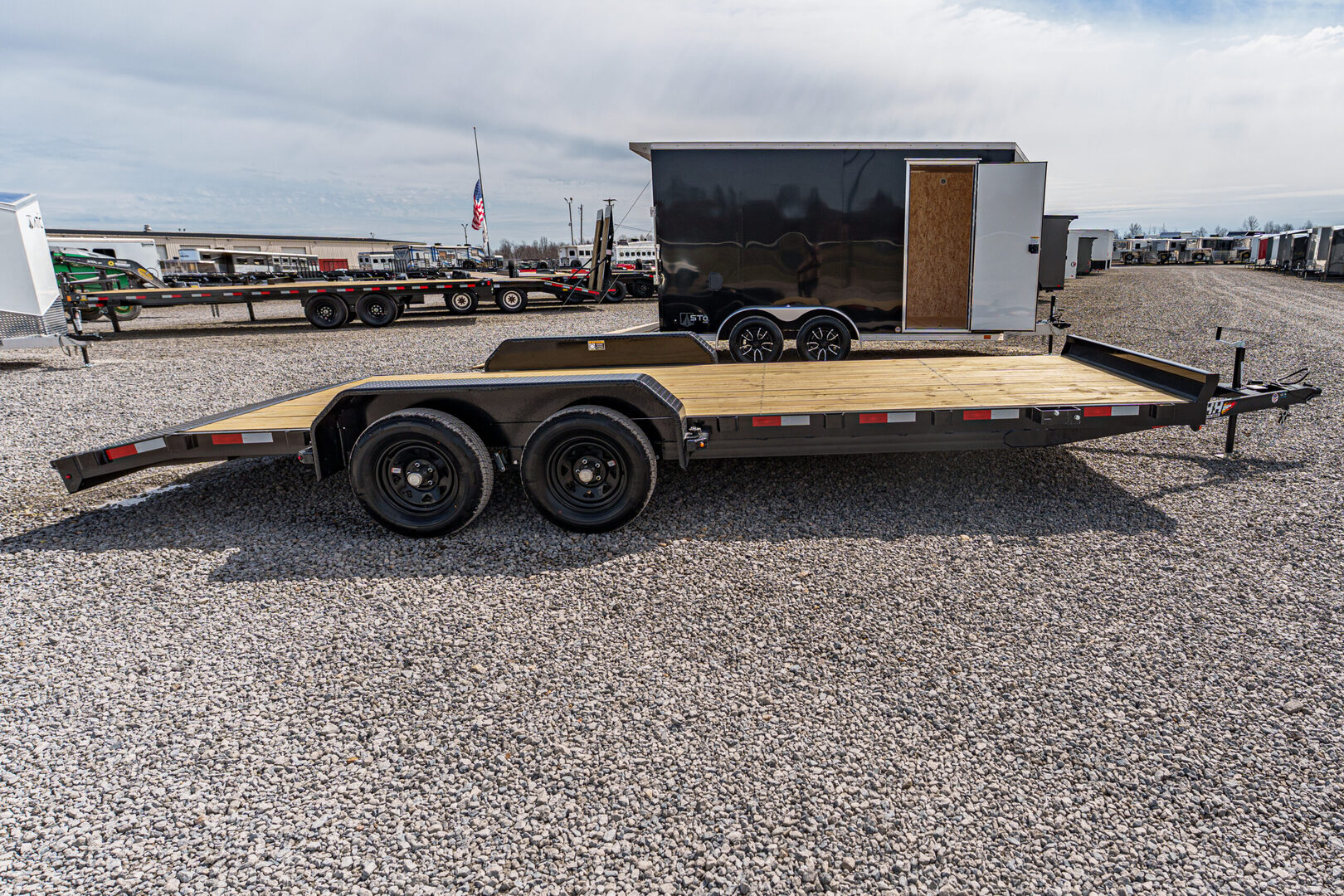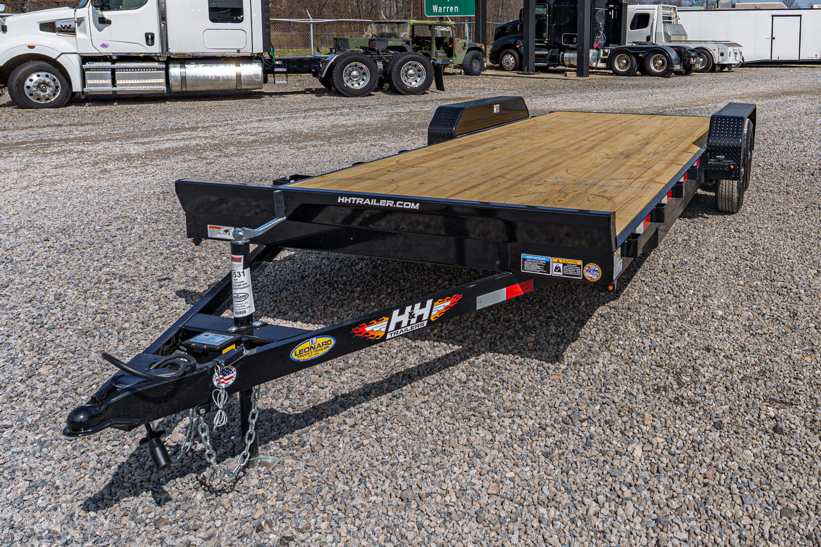 View Inventory: https://leonardtrailers.com/inventory/45531 Stock #45531 – New 2026 H&H 82” x 20’ (18+2) Car Hauler Trailer, 7K GVWR (Black) The New 2026 H&H 82x20 (18+2) Car Hauler is a rugged, steel-framed trailer designed for dependable hauling of vehicles and equipment. Built with durable steel construction, a low-profile deck, and practical loading ramps, this trailer is ideal for commercial and personal use. Key Specifications GVWR: 7,000 lbs Axles: (2) 3,500 lb spring brake axles Coupler: 2-5/16” A-frame Posi-Lock Tires: ST205/75R15C (6-ply) Wheels: 15” 5-hole steel Deck Size: 82” x 20’ (18’ main + 2’ dovetail) Color: Black Exterior Finish: Industrial grade polymer finish Frame & Construction Main Frame: 5” steel channel Crossmembers: 3” steel channel Tongue: 4” steel channel Bulkhead: Heavy-duty steel tube Dovetail: 2’ steel tread plate Decking: 2” pressure-treated pine with board retainers Ramps & Loading 5’ steel fabricated slide-in ramps Removable tread plate fenders (optional) Stake pockets for tie-downs Additional Features 2K set-back tongue jack Easy-lube hubs Breakaway system with battery, switch, and lanyard Tongue-mounted spare tire carrier Sealed wiring harness 7-pin round blade connector Full LED DOT-compliant lighting Warranty Limited 3-Year Warranty We offer excellent financing options, accept trades, and provide nationwide NO-HASSLE delivery. Call today for more details: (888) 333-6613 All specifications believed to be accurate—please verify with a sales associate prior to purchase. Stock Number:45531