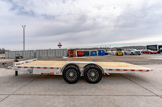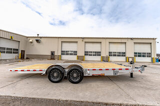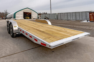View Inventory: https://leonardtrailers.com/inventory/45535 Stock #45535 – New 2026 H&H 82” x 20’ Aluminum Electric Tilt Low Profile Speed Loader Car Hauler (14K GVWR) The New 2026 H&H 82x20 Aluminum Electric Tilt Low Profile Speed Loader is a lightweight, corrosion-resistant car hauler designed for smooth loading and dependable performance. Its all-aluminum construction and electric hydraulic tilt deck make it an excellent choice for low-clearance vehicles and equipment. Key Specifications GVWR: 14,000 lbs Axles: (2) 7,000 lb brake axles Coupler: 2-5/16” adjustable Deck Size: 82” x 20’ Deck Width: Approx. 79.25” Construction: All-aluminum Color: Aluminum Frame & Construction Main Frame: 8” aluminum channel Crossmembers: 4” aluminum channel Tongue: 6” aluminum channel, fully wrapped Tongue Style: Low profile Bulkhead: Aluminum tube Dovetail: Reverse taper cut Tilt & Hydraulic System Electric hydraulic tilt deck 12-volt hydraulic pump Tongue-mounted battery and pump system Loading & Securement Low-profile tilt design for easy loading Aluminum stake pockets Aluminum rub rails Smooth aluminum fenders (removable) Additional Features DOT-compliant safety chains Easy-lube hubs Sealed wiring harness 7-pin round blade connector Full LED DOT-compliant lighting Warranty Limited 3-Year Warranty We offer excellent financing options, accept trades, and provide nationwide NO-HASSLE delivery. Call today for more details: (888) 333-6613 All specifications believed to be accurate—please verify with a sales associate prior to purchase. Stock Number:45535