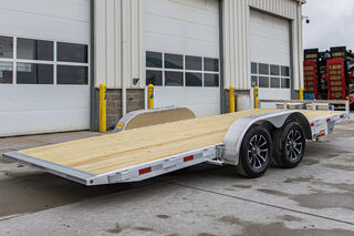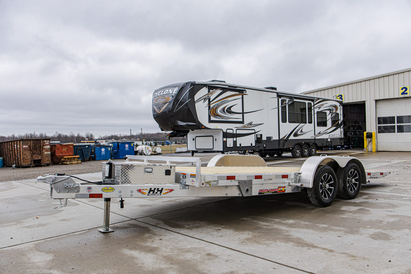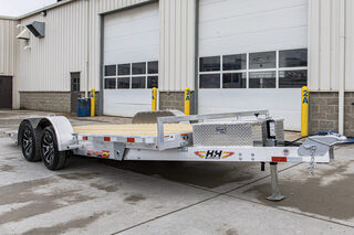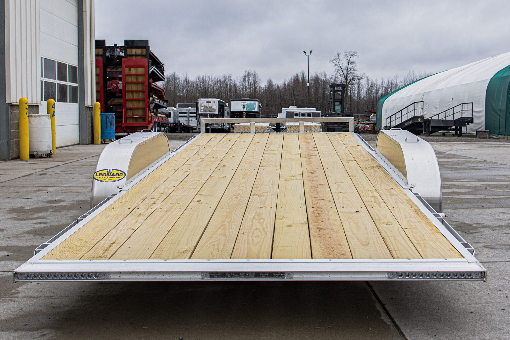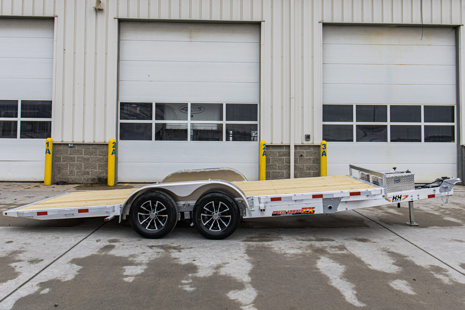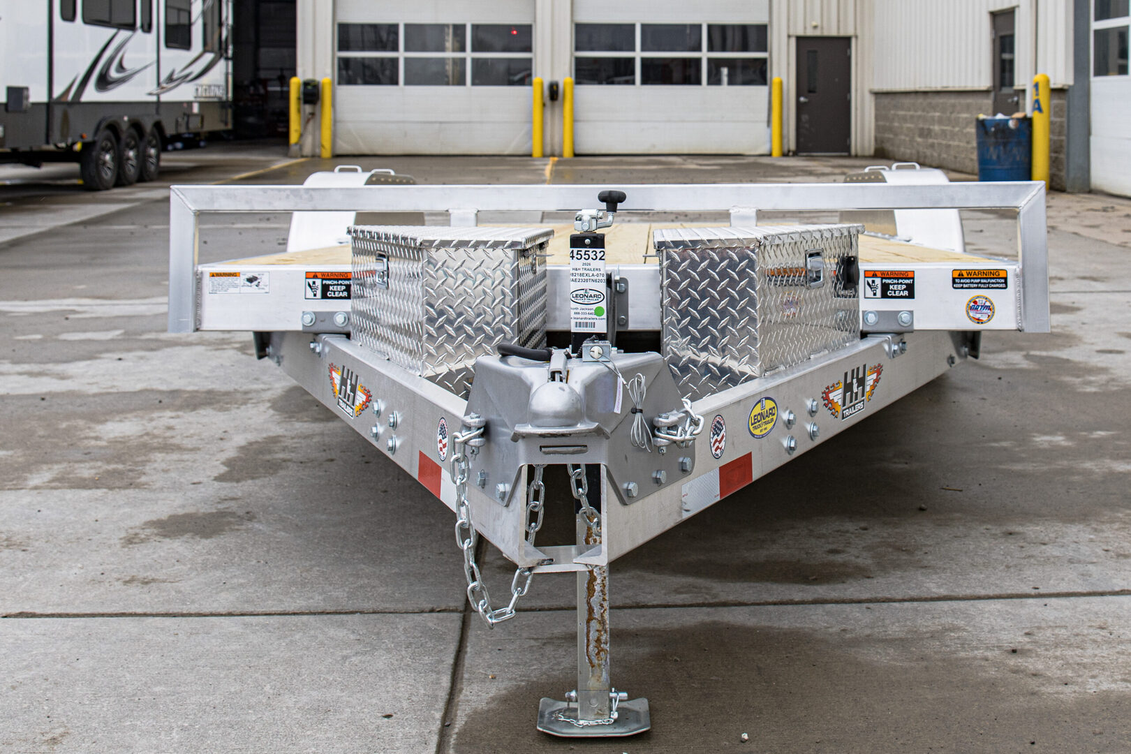 View Inventory: https://leonardtrailers.com/inventory/45532 Stock #45532 – New 2026 H&H 82” x 18’ Aluminum Electric Tilt Low Profile Speed Loader Car Hauler (7K GVWR) The New 2026 H&H 82x18 Aluminum Electric Tilt Low Profile Speed Loader is a lightweight, corrosion-resistant aluminum car hauler designed for smooth loading and easy towing. Its electric hydraulic tilt deck and low-profile design make it ideal for smaller vehicles and light equipment. Key Specifications GVWR: 7,000 lbs Axles: (2) 3,500 lb drop spring brake axles Coupler: 2-5/16” A-frame Posi-Lock Tires: ST205/75R15C (6-ply) Wheels: 15” 5-hole aluminum Deck Size: 82” x 18’ Deck Width: 79.25” Color: Aluminum Frame & Construction Main Frame: 6” aluminum channel Crossmembers: 3” aluminum channel Tongue: 6” aluminum channel, fully wrapped Tongue Style: Low profile Bulkhead: Aluminum tube Dovetail: Reverse taper cut Decking: 2” pressure-treated pine Tilt & Hydraulic System Electric hydraulic tilt deck 12-volt hydraulic pump Tongue-mounted lockable battery and pump box Loading & Securement Teardrop smooth aluminum fenders (removable) Aluminum stake pockets Aluminum rub rails Additional Features 7K drop-leg jack (set-back) DOT-compliant safety chains Easy-lube hubs Sealed wiring harness 7-pin round blade connector Full LED DOT-compliant lighting Warranty Limited 3-Year Warranty We offer excellent financing options, accept trades, and provide nationwide NO-HASSLE delivery. Call today for more details: (888) 333-6613 All specifications believed to be accurate—please verify with a sales associate prior to purchase. Stock Number:45532