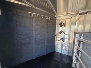 THIS TRAILER IS ON ORDER AND WILL ARRIVE IN MARCH Platinum 25’ Stock Combo 7’6” x 25 x 7 tall Mill Finish exterior skin Extremely versatile trailer!! 1st gate is horse divider with removable panel at bottom 2nd gate is normal horse divider 3rd gate is slatted center partition, keep horses and cattle separate!! Haul roping steers & 3 horses Haul 6 horses, 8 cows, haul whatever!! Plexiglas & Track on both sides of trailer 6’ hay rack & ladder 6 saddle racks, 15 bridle hooks, and 4 blanket bars in tack room!! 3 tier swing out saddle rack keeps all of your tack easily to grab!! Carpeted bulkhead wall to protect your gear Rubber mats in 30” dressing room floor for easy cleaning One brush tray and five hooks on tack door Double rear gates with double anti rack hardware Stock escape door on driver side 4 LED load lights and plenty of outside tie rings Two roof vents for maximum ventilation!! Ready for anything!!!