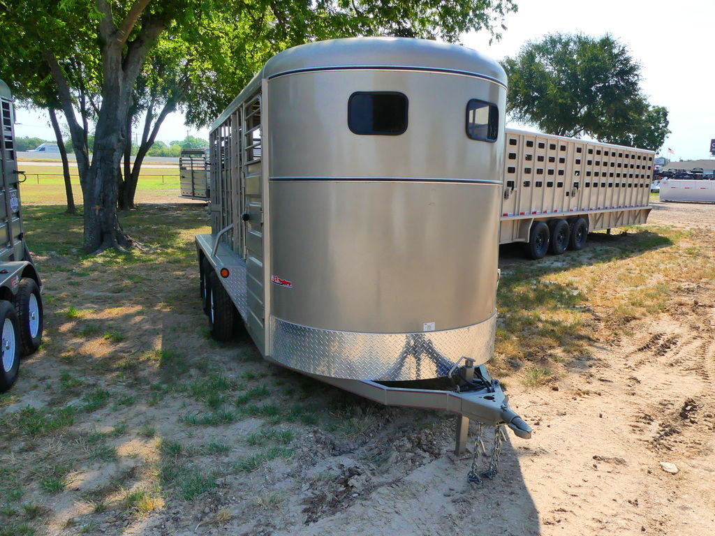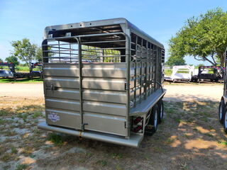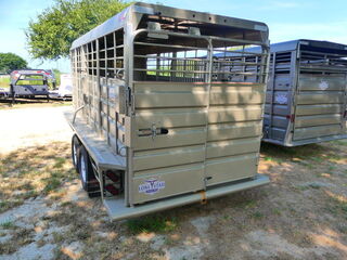G.V.W.R. 10,400 lbs.G.A.W.R. 5,200 lbs.AXLES Two 5,200 lb 4” Drop Spring Brake AxlesSUSPENSION Multi-Leaf Spring with equilizerTIRE ST235/80R16 10 PLY (Spare Tire &Wheel Included)WHEEL 16” White Spoke 6 BoltCOUPLER 2-5/16” Bulldog (12,500 lbs.)SAFETY CHAINS Two 5/16” Grd. 70 with safety Latch HookJACK 7,000 lbs. Side Wind Drop LegTONGUE 6” Channel Fold Back TongueFRAME 11 Ga. Sheet Metal with Angle Iron ReinforcementCROSSMEMBERS 2-1/2” x 2-1/2” x 1/4” Angle IronSIDE WALL Front 8’ 52” High Sides, Rest 20”Solid Above Fender With TubingTOP Round Cap in Front With Half or Full Metal TopDIVISION GATE 1 Solid GateREAR Swing/Slider GateESCAPE DOOR Side Door (Right Side)LIGHTS D.O.T. Stop, Tail, Turn and Clearance (LED)ELEC. PLUG 7-Way RVFINISH (PREP). Mechanical and/or Chemical Pre-treatment for maximum Paint Adhesion & 1 Coat of PrimerFINISH Painted with two Coats Automotive Quality Acrylic EnamelThe Advertised Prices DO NOT Include: *Licensing* & TaxWe have over 200 trailers to choose from. Come in and see us at:6610 N I-35 Lacy Lakeview, TX 76705 (Exit 342B)Not in the great state of Texas? No Problem! We offer local and nation wide delivery.Store Hours:MON–FRI: 8:00 AM - 5:00 PMSATURDAY: 9:00 AM - 2:00 PMSUNDAY: ClosedRemember we handle all your Trailer Sales & Trailer Part Needs!!!Let us help you with servicing your trailer too!It is our pleasure to serve our community of Waco Texas and all of Central Texas!