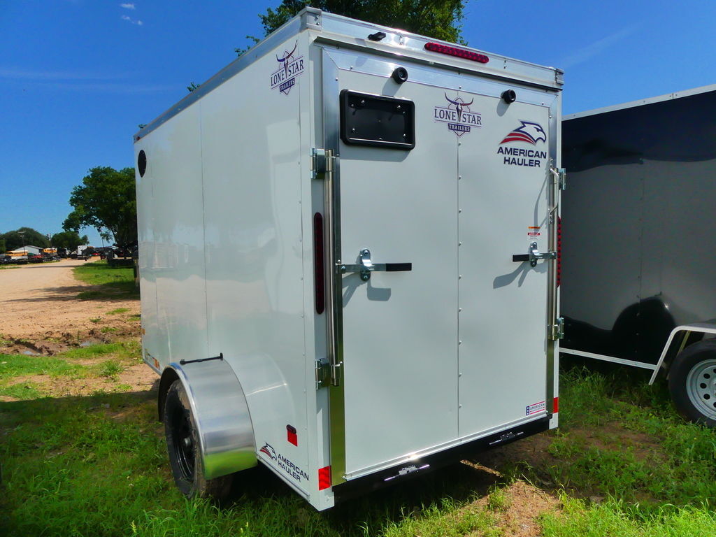 1-Piece Aluminum Roof16in Starbright Stoneguard3/4in PlexCore DeckingCrossmembers 16in On CenterSidewall Flow-Thru VentsStandard A-Frame TongueV-Nose12V Dome Light2,000lb Top Wind Tongue Jack6’ Approximate Inside HeightSand PadST205/75R15C Radial 5B AH Silver Mod Steel WheelTube Roof Bows 24in On CenterThe Advertised Prices DO NOT Include: *Licensing* & TaxWe have over 200 trailers to choose from. Come in and see us at:6610 N I-35 Lacy Lakeview, TX 76705 (Exit 342B)Not in the great state of Texas? No Problem! We offer local and nation wide delivery.Store Hours:MON–FRI: 8:00 AM - 5:00 PMSATURDAY: 9:00 AM - 2:00 PMSUNDAY: ClosedRemember we handle all your Trailer Sales & Trailer Part Needs!!!Let us help you with servicing your trailer too!It is our pleasure to serve our community of Waco Texas and all of Central Texas