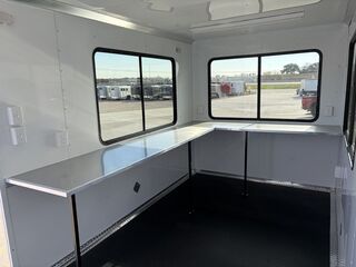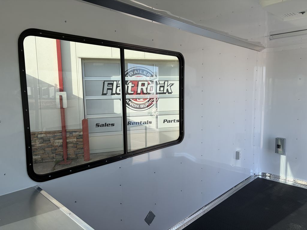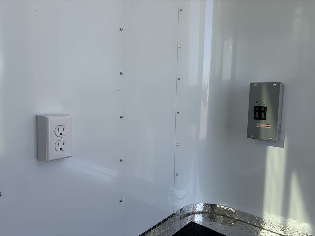 7’ x 14’ Tandem Elite Office Trailer 2 x 3,500 lb. 4 in Drop Brake Axles Triple Tongue 7’ Interior Height 13,500 BTU Air Conditioner 2 5/16 in Coupler 205/75/R15 Black Mod Wheels 36 in Side Door with Cam Bar Lock and RV Lock Rubber Coin Floors 3, 3 ’x 5’ Viewing Windows L Shaped Interior Counter Aluminum Interior Walls and Ceiling (Insulated on 16 in Centers) 2 x12 Volt LED Dome Lights w/ Switch 2 x 4’ Lights w/ Switch (110) 5 Interior Plugs (110) 30 AMP Electrical Package with Cord Empty Weight: 2,000 lbs GVWR: 7,000 lbs Carrying Capacity: 5,000 lbs