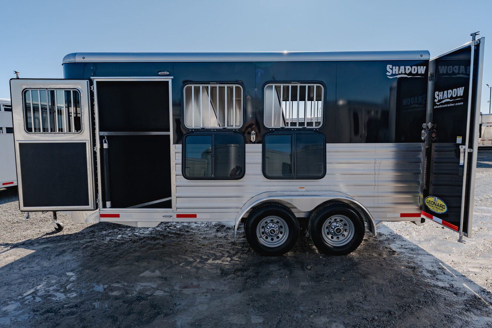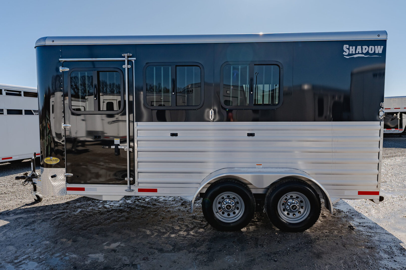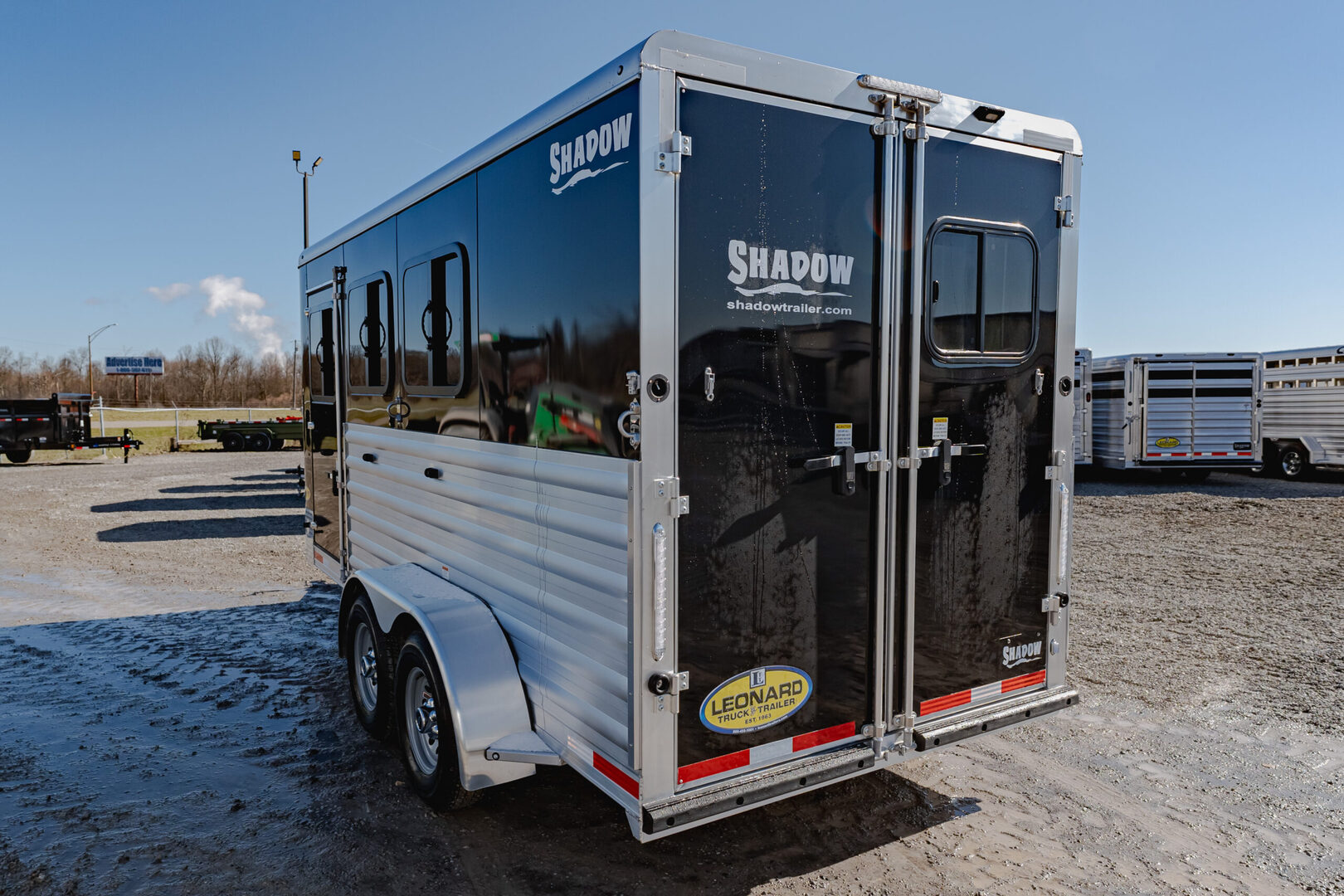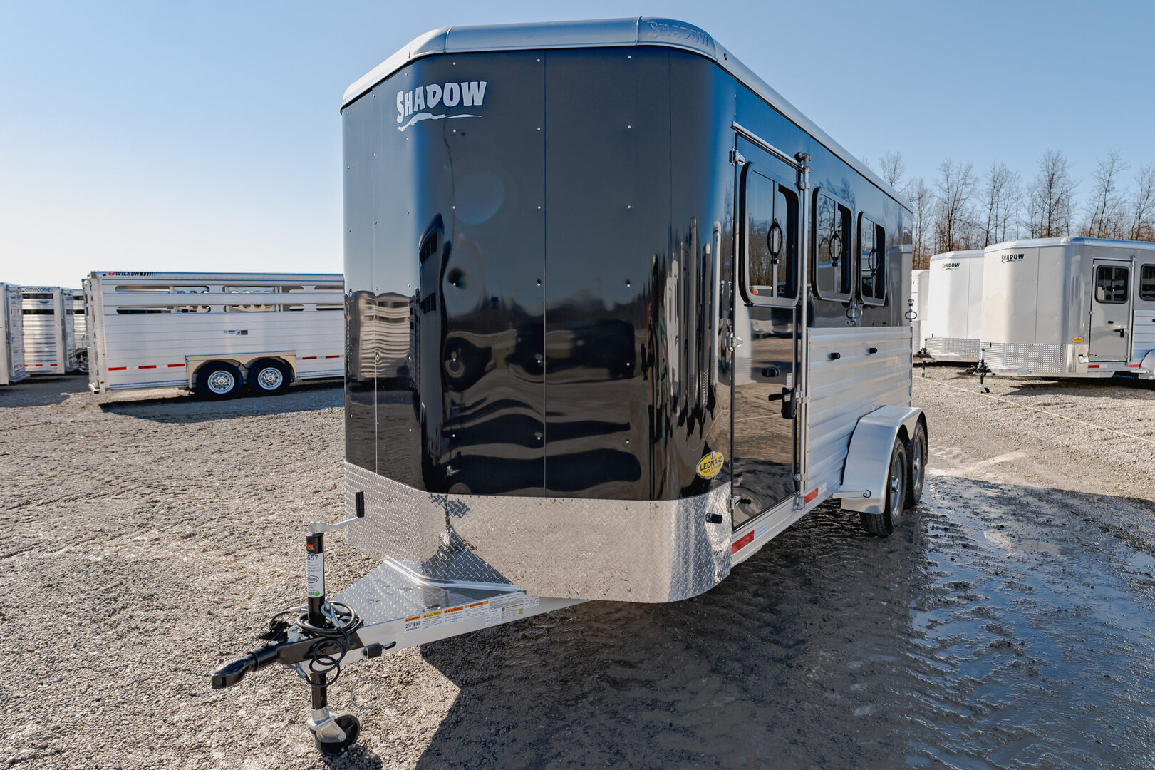 View Inventory: https://leonardtrailers.com/inventory/45557 Stock# 45557 New 2026 Shadow 60170L-3SL-BP-E PRO SERIES Bumper Pull Horse Trailer  Model:60170L-3SL-BP-E Warranty: 6yr- Structural 2yr-Bumper to Bumper  General Specs: Bumper Pull Slant Load Stock (Open Air Gaps) 17’ Floor 19’ Overall Length (OAL) 6’ 9”Wide 7’6” Tall 38” Escape Door Aluminum Sheeting / Slick Skin 2 slate extrusion front to back  Aluminum Flooring with Rubber Mats (in Horse Area and Dress Floor) Drive Train: 5200# Spring Leaf Axles 15” Tires Dress Area: 4’ dress on Long Wall 32” Dress Door with 14x24 Window Fixed Wall Saddle Rack Mounts (3) 6 Hook Bridle Hooks Dome Light Horse Area: 42” Stall Width Drop feed Windows on both sides Rumber Lined Walls Padded telescopic Stall Dividers Dome Light We offer outstanding financing options, accept trades, and can arrange nationwide NO HASSLE delivery! Inquire today for more information! (888) 333-6613 **We believe these specifications to be accurate. Any discrepancies are unintentional. Please verify information with a sales associate prior to purchase.** Stock Number:45557