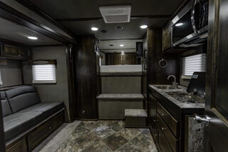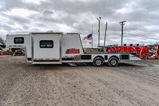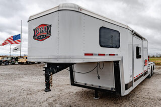 View Inventory: https://leonardtrailers.com/inventory/45560 Stock# 45560 New 2026 Logan Sports Hauler with Living Quarters Model: Sports Hauler  Warranty: 8yr- Structural 2yr-Hitch-to-Bumper   General Information: Model: Sports Hauler Front Wrap Trim: Front Wrap of Nose Color to Match Top Half of Walls (.050 Aluminum Skin) Logo Color: Red Exterior Trailer Color: White (Includes Tail Light Bracket Covers) Dimensions: Box Height: 7’ 6” Box Width:  8’ 6” Axles & Wheels: Axles: 8,000# Dexter Torsion Axles Tires: G-Rated 14-Ply  Wheels: 16” 8-Lug Aluminum Wheels  Single Leg Hydraulic Jack Enclosure: Size: 6’ Slide out Extended rear canopy  Stable deck floor with vortex spray coating  Porch lights on each side and one over rear ramp  Ebony stained package  Dual 30# propane tans  32” television  Allison fog gray soft touch walls Romano Vinyl floor  Safari platinum carpet  Praline Antico Formica & Boardway graphite couch Jack knife sofa  Flip up counter  Microwave with glass cover cooktop  10 gallon DSI water heater  Electric awning      We offer outstanding financing options, accept trades, and can arrange nationwide NO HASSLE delivery! Inquire today for more information! (888) 333-6613 **We believe these specifications to be accurate. Any discrepancies are unintentional. Please verify information with a sales associate prior to purchase.** Stock Number:45560
