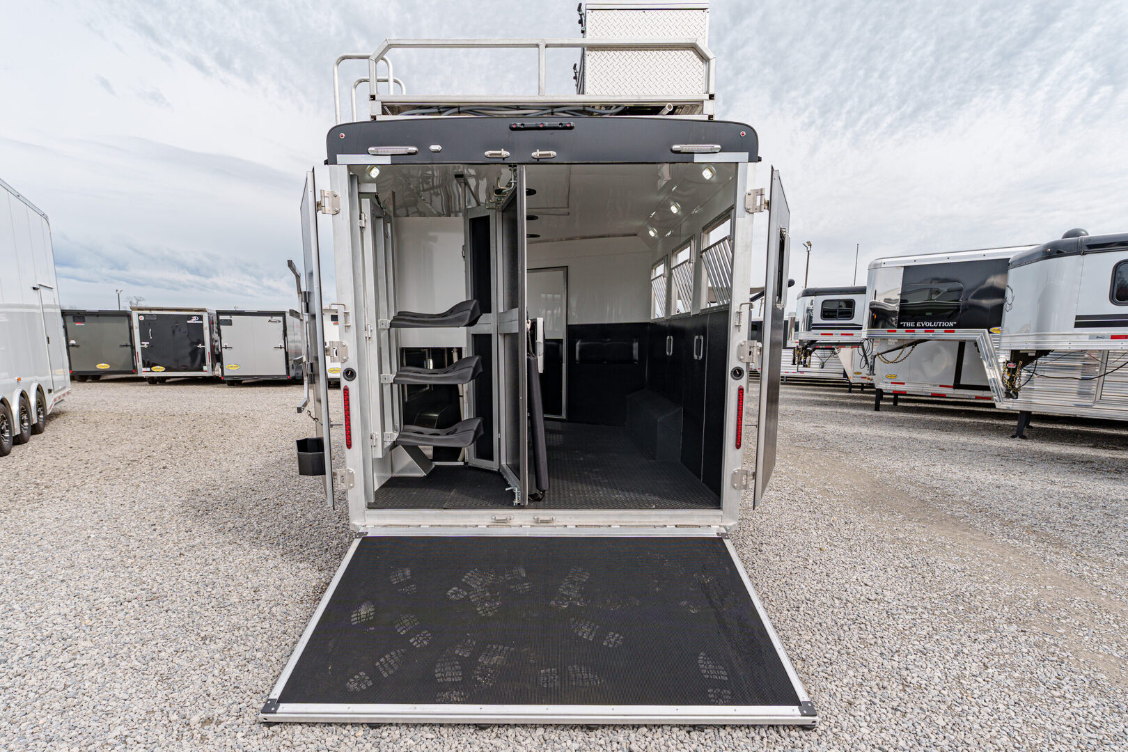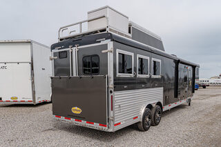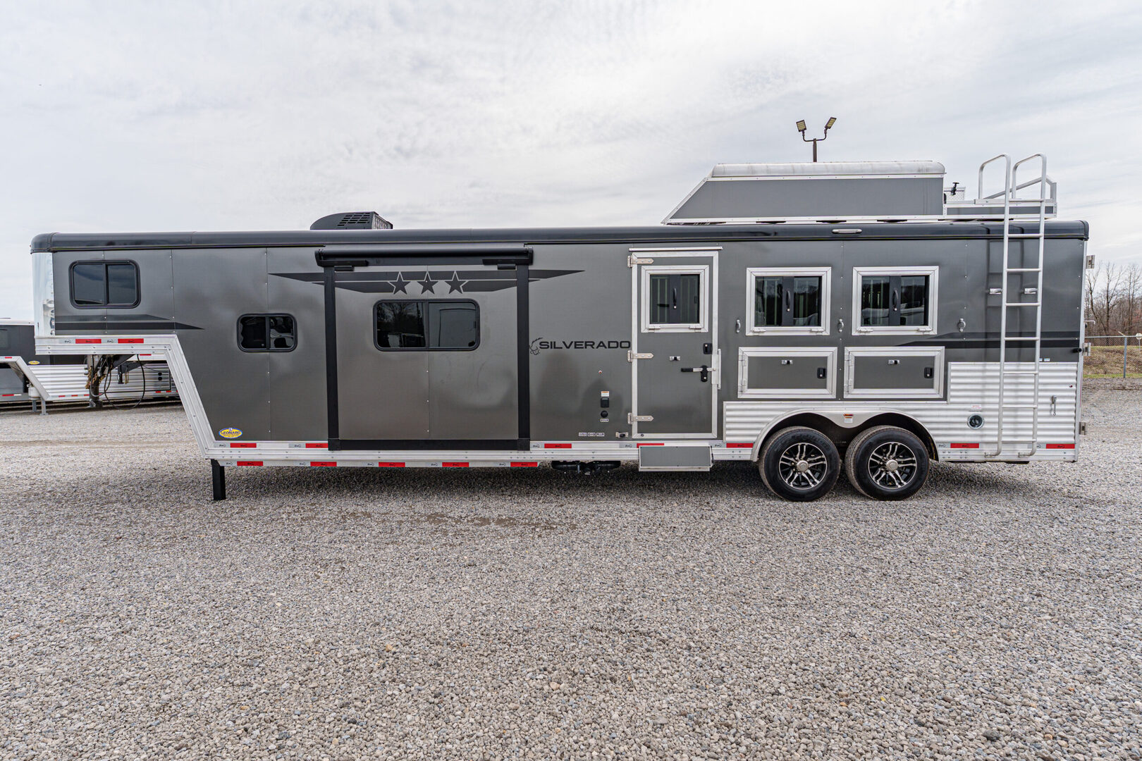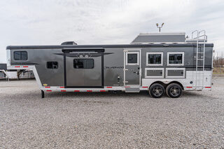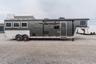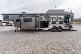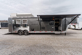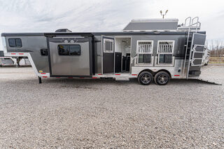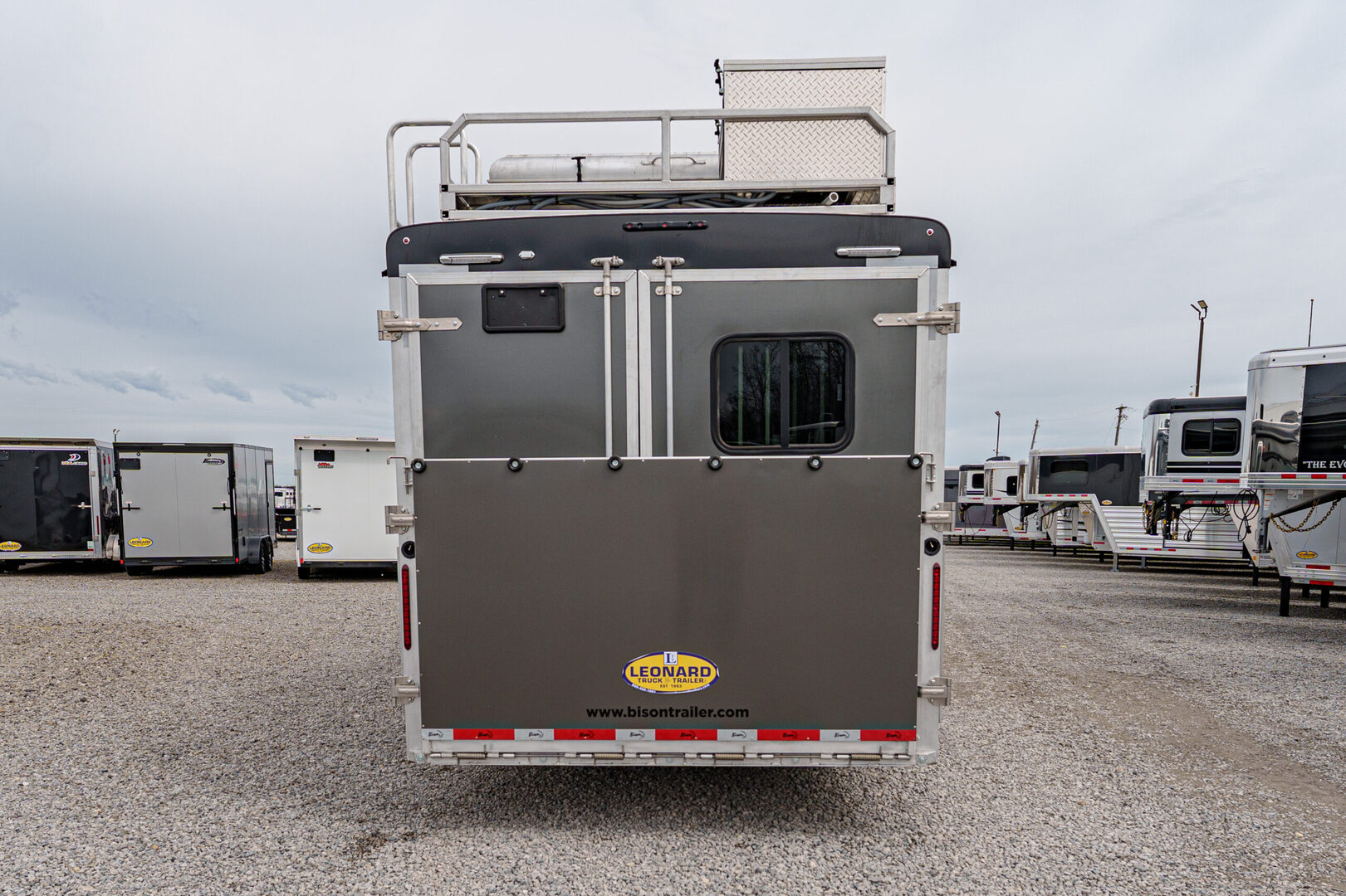 View Inventory: https://leonardtrailers.com/inventory/45561 Stock# 45561 New 2026 Bison SV8313BS Gooseneck Horse Trailer With Living Quarters Model:TH809B15 Warranty: 1yr- Exterior Paint (Peeling& Fading) 2yr- Components, Assembilies, Systems 6yr- Structrual As Long As You Own The Trailer-Pressure Treated Lumber Floor in Horse Area Packages & Panels Rear Side Load Door Package Brite Nose – Front Panel Trailer Options Silver Exterior Brite Dip Overlay, Full Length 7000# Axles (STD) G-Tire / Aluminum Rim, ST235/85R16 8 Lug – Black Hydraulic Jack, Dual Legs 4500w Generator with Fuel Tank Hay Pod (8W only) with Lined & Insulated Horse Area Ceiling Mangers – 3H / 2 Stall Stud Wall Step (@ Escape Door) HD Drop Down Windows (Head/Butt Side) Horse Fans (Per Stall) Load Light Package (4 Total) Swing Out Saddle Rack (ILO Adj) – 8’ Wide Only Swing Out Blanket Bar Conversion Options Rustic Brown Interior Rustic Bison Cabinetry Sofa & Dinette Linoleum: Strata Max Pro Deep Timbers – Dark Mocha – 102” 15,000 BTU Air Conditioner, Ducted Water Heater (Gas/Elec DSI – 6 Gal, ILO Gas DSI) Stereo with Interior & Exterior Speakers Oven with 3 Burner Stove Awning, Powered with LED Light Strip 32” LCD TV with Locking Swing Arm Queen Mattress with Bedsheet Porcelain Toilet Fantastic Fan in Bathroom (ILO STD)   We offer outstanding financing options, accept trades, and can arrange nationwide NO HASSLE delivery! Inquire today for more information! (888) 333-6613 **We believe these specifications to be accurate. Any discrepancies are unintentional. Please verify information with a sales associate prior to purchase.** Stock Number:45561