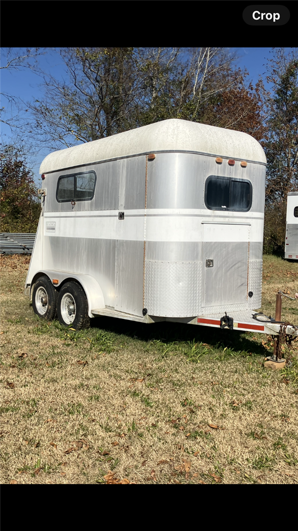 Heacock aluminum, 2 horse, straight load, bumper pull horse trailer, with ramp. Heacock trailers are known for large and roomy interiors for bigger equines and designed for comfort and safety. Robust and lightweight construction with insulated fiberglass roof. Adjustable and removable divider and 2 large escape doors. Hay mangers with hay bag hooks. Large tack compartment with two saddle racks and multiple bridal hooks. Has been pulled with a Lexus SUV and a Jeep Grand Cherokee. Comes with sway bars for safe hauling. Located in Johnston, South Carolina.