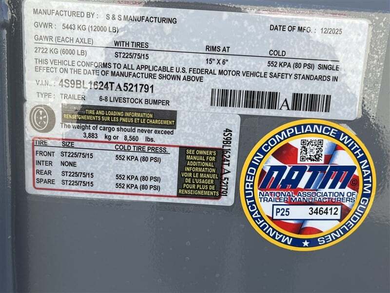 2026 S&S Trailers 6'8"x7'x16' Livestock BP