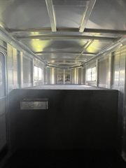 Trailer comes equipped with 3 tier adjustable saddle rack w/ 6 bridle hooks on rear door. Has extra large carpeted dressing room with a brush box, blanket bar, 6 bridle hooks and clothes rod. Camper door with screen to dressing room. (2) 5200 lb rubber torsion axles w/ electric brakes.