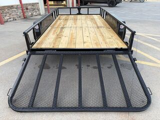 83 x 14’ Pipe Top Utility w/ Spring Assist Ramp Gate 2 x 3,500lb.Axles (Brakes on Rear Axle) 2 in A Frame Ram Coupler Treated Wood Floor Spring Assist Rear Ramp Gate (Double Spring Assist) 7K Drop Leg Jack (UPGRADED) Diamond Plate HD Fenders (UPGRADED) Coiled Brake a Way (UPGRADED) ST205 75 R15 Radials Enclosed LED Lights H/D Front Spare Tire Mount Stake Pockets 2 in Pipe Top Utility 4 in Channel Tongue Empty Weight 1,460 lb. G.V.W.R. 7,000 lb. Carrying Capacity 5,540 lb.