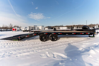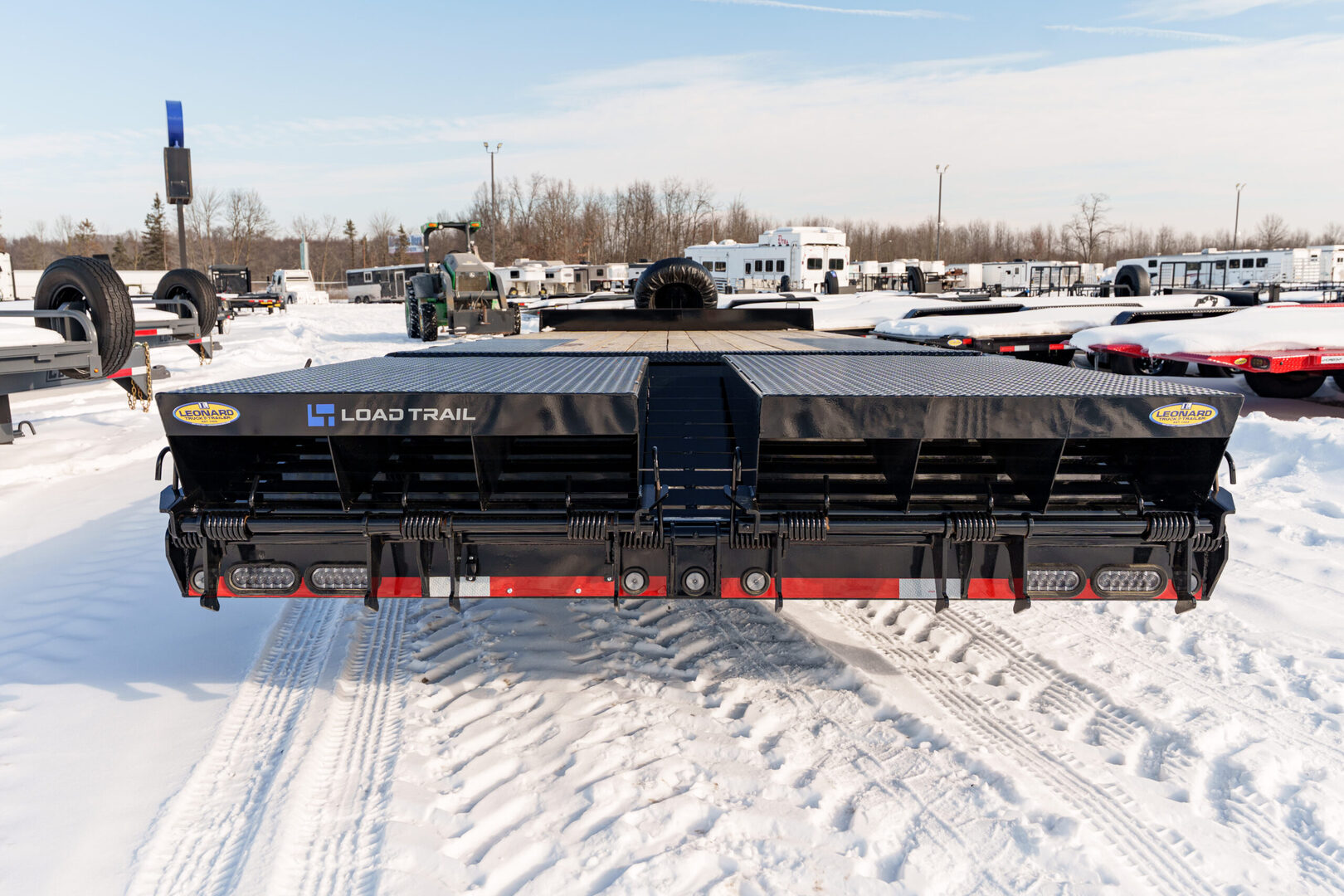 View Inventory: https://leonardtrailers.com/inventory/45611 Stock #45611 โ€“ New 2026 Load Trail PS0222072 Bumper Pull Deckover Equipment Trailer This 2026 Load Trail PS 102” x 22’ tandem axle deckover is a rugged, work-ready bumper pull trailer with a 5’ self-cleaning dovetail and MAX ramps for easy loading and unloading. Perfect for equipment, skid steers, and everyday hauling. Key Specifications & Features: Model: PS0222072 Deck Size: 102” x 22’ Axles: (2) 7,000 lb Dexter spring axles Electric brakes on both axles Frame: 8” x 10 lb I-Beam Crossmembers: 16” spacing Dovetail: 5’ self-cleaning dovetail with MAX ramps Coupler: Adjustable 2-5/16” coupler (6-hole) Jack: Spring-loaded drop-leg jack, 10K Decking: Treated wood floor Fenders: Diamond plate over wheels Tie Downs: (4) 4” weld-on D-rings Tool Storage: Front tongue-mount toolbox with brackets Rub Rail: 2” rub rail Side Steps: 2 MAX-STEPS (15”) Lighting: LED lights with cold-weather wiring harness Tires/Wheels: ST235/80R16 LRE, 10-ply on black wheels Color: Black with primer Road Service Program: Load Trail Road Service Program available We offer outstanding financing options, accept trades, and can arrange nationwide NO HASSLE delivery! Inquire today! (888) 333-6613 We believe these specifications to be accurate. Any discrepancies are unintentional. Please verify information with a sales associate prior to purchase. Stock Number:45611