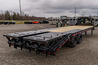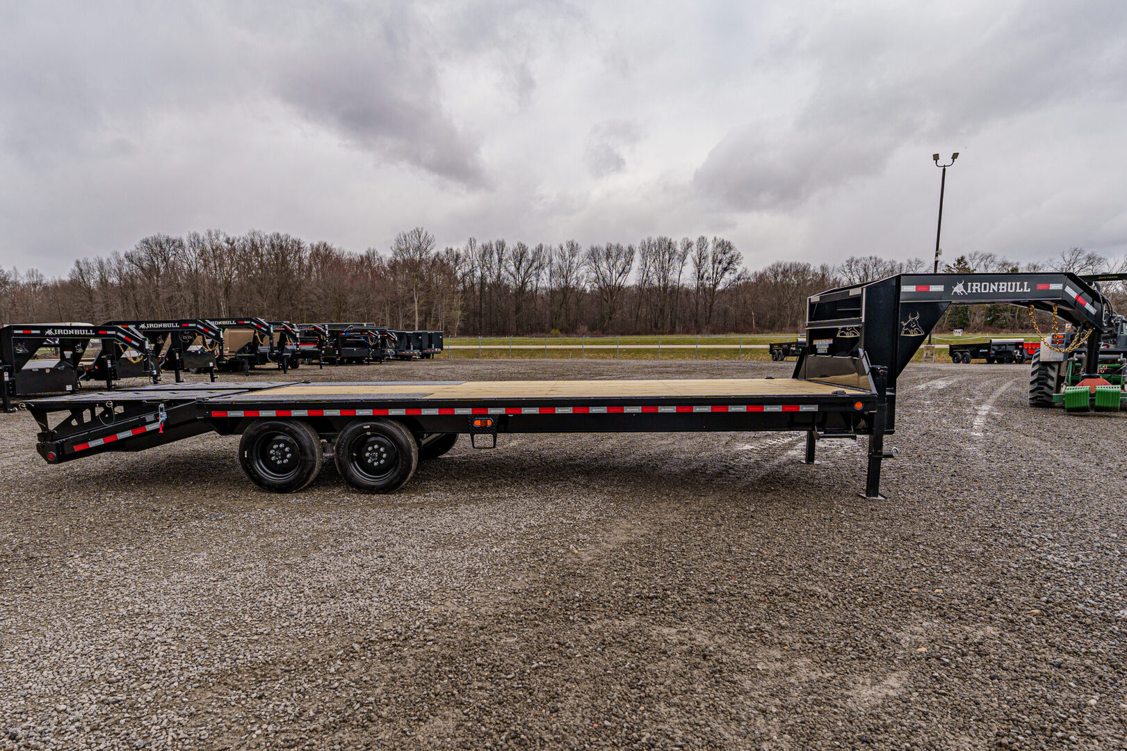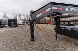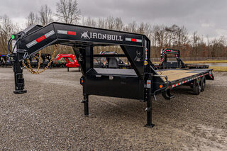 View Inventory: https://leonardtrailers.com/inventory/45620 Stock #45620 – New 2026 Iron Bull FDG0225082 Gooseneck Deckover Equipment Trailer This 2026 Iron Bull FDG 102” x 25’ deckover is built for heavy-duty hauling with a robust I-beam frame, 8,000# HD spring axles, and a 5’ self-cleaning dovetail with Rampage Ramps for smooth, confident loading. Key Specifications & Features: Model: FDG 102” x 25’ Axles: (2) 8,000 lb HD spring axles Electric brakes on both axles Frame: 10” I-Beam main frame Neck: 10” I-Beam gooseneck Crossmembers: 16” spacing, 3” x 3.5 lb C-channel Dovetail: 102” x 5’ self-cleaning dovetail Ramps: Rampage ramps Coupler: Adjustable 2-5/16” round gooseneck coupler, 25K rated Jack: Spring-loaded drop-leg jack, 10K Decking: Treated wood floor Tie Downs: (4) 3” x 5/8” weld-on D-rings Toolbox: Front full toolbox between neck Lighting: LED lighting Wiring: Standard wiring harness Tires: ST215/75R17.5 LRH, 16-ply Spare: Spare tire mount Color: Black We offer outstanding financing options, accept trades, and can arrange nationwide NO HASSLE delivery! Inquire today! (888) 333-6613 We believe these specifications to be accurate. Any discrepancies are unintentional. Please verify information with a sales associate prior to purchase. Stock Number:45620