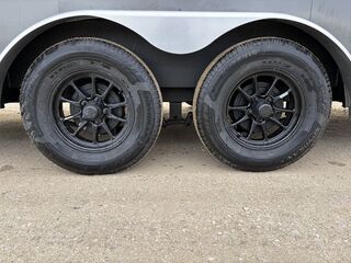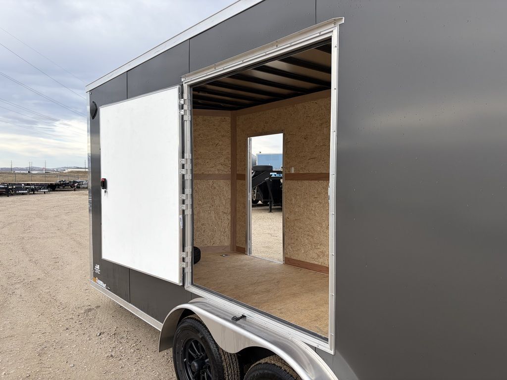 Bumper Pull90” Total Interior Height2 - 3.5 Spring AxlesST205/75R15 LRD Radial Tires w/Aluminum WheelsSpare Tire2 5/16” Coupler on A-Frame5K Top Crank A-Frame Jack6” Brushed Aluminum Fenders24” ATP Gravel GuardRecessed D-Rings inside2x4 Welded Tubular Steel Main Frame12.6K Safety Chains16” CrossmembersRamp Door with Spring Assist and Flap32” Econoline RV Door54” Econo RV Roadside Escape Door3/8” Water Resistant Walls3/4” Water Resistant Floor.080 Exterior Upgrade1 Piece Seamless Aluminum RoofFixed Side Vents7 Pin Electrical PlugDOT Approved LED Lighting.080 CharcoalWeight: 2,739 lbs