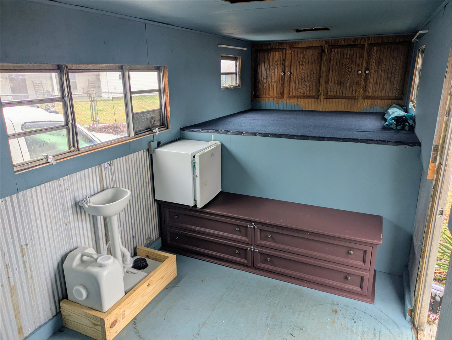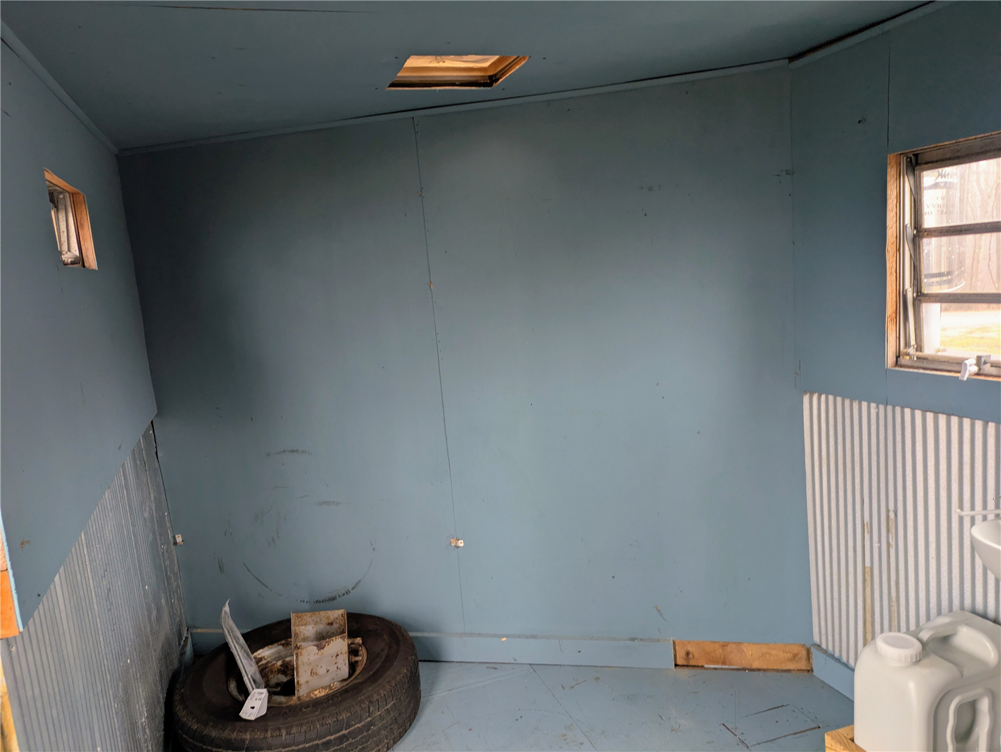 Weekender/dressing room partially finished: insulated and painted (needs trim work to finish out), one window pane needs replaced.