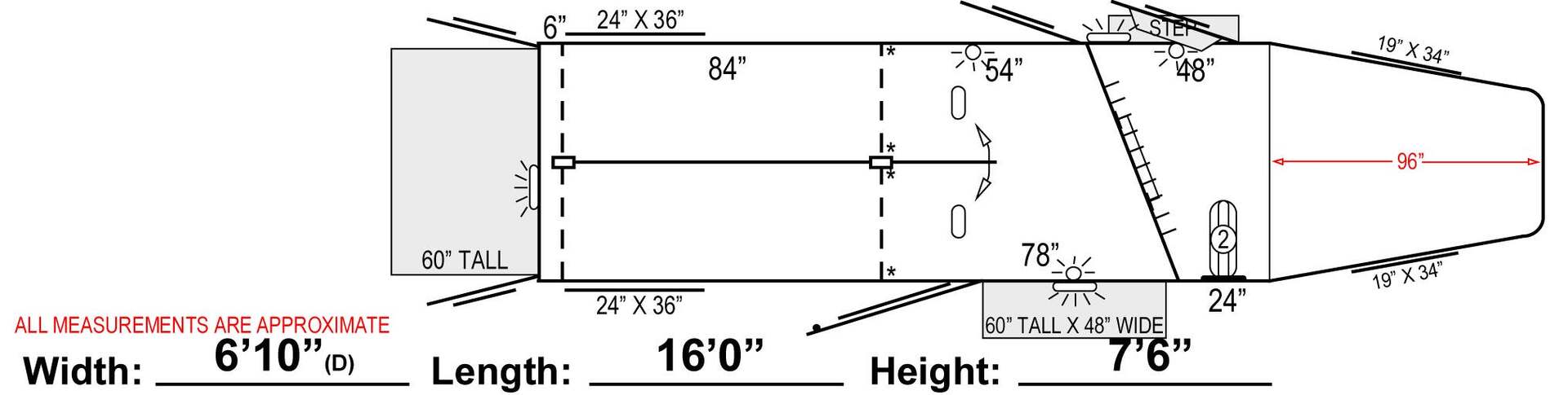 LWH: L: 16.00' W: 6.83' H: 7.50'
