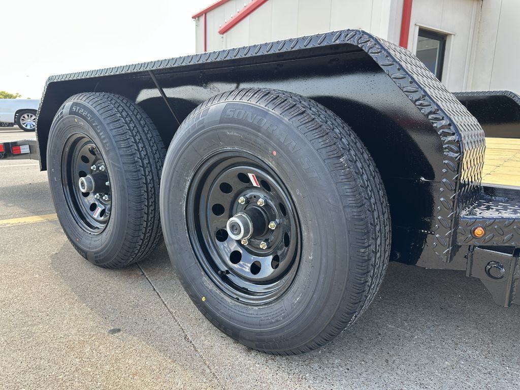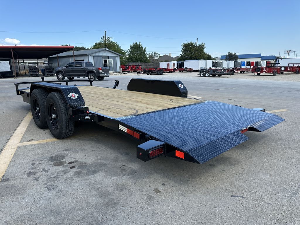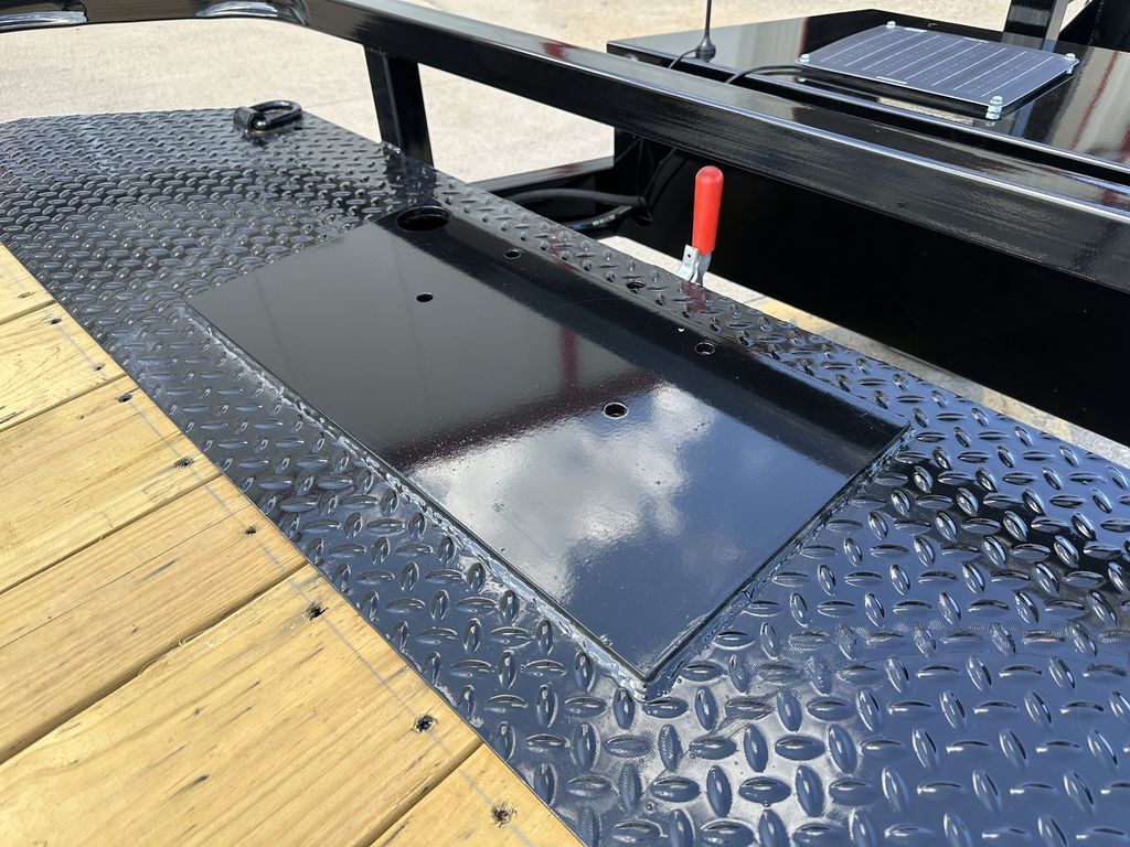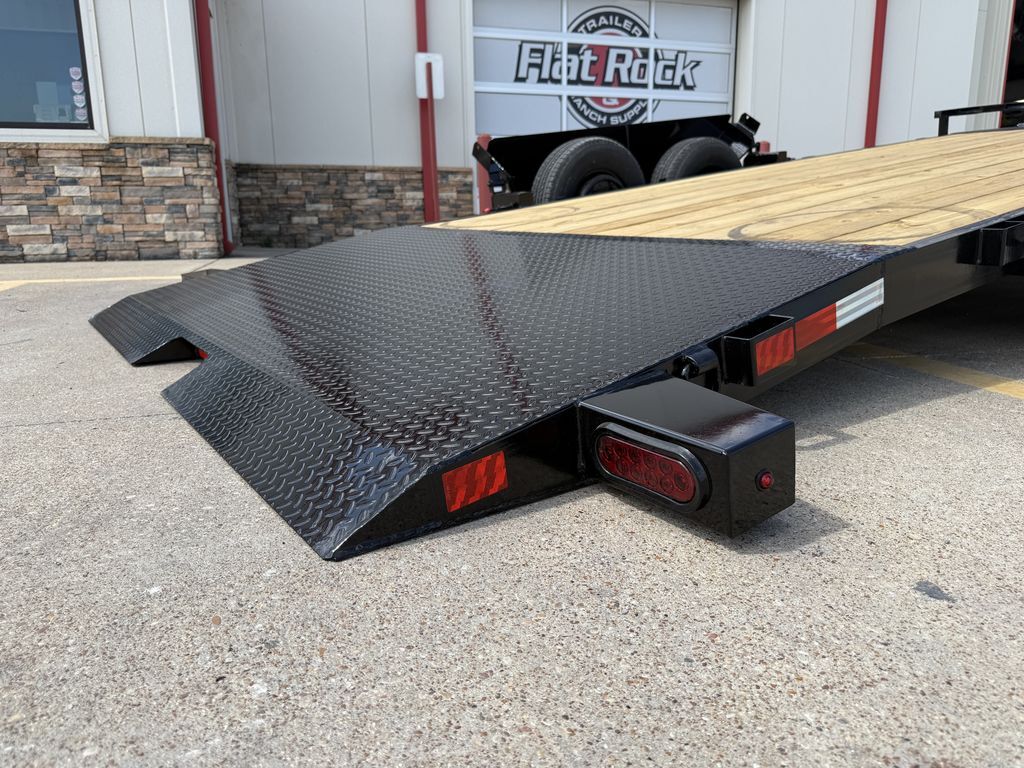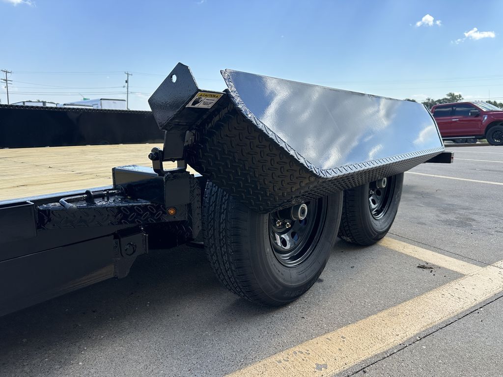 OPTIONAL ROCK GUARD INSTALLATION: $475 Without Rock Guard: $6,999 Rock Guard Installed: $7,474 20’ x 83 in 10K Tilt Car Hauler (WIRELESS TILT SYSTEM) 16’ Treated Wood Deck w/ 4’ ATP Steel Dovetail 2 x 5,200 lb. EZ Lube Axles (Brakes on Rear) 2 5/16 in Adjustable Coupler (Upgraded) 7K Drop Leg Jack 10 Stake Pockets 4 D Rings 5 in Channel Wrapped Tongue (Upgraded) 4 in Channel Full Frame (Upgraded) Cross Members on 16 in Centers Wireless Remote / Corded Remote (Included) Solar Panel / 110 Built in Charger (Upgraded) Diamond Plate Steel Fenders FOLD DOWN FENDER DRIVERS SIDE ST 225 75 R15 in Radial Tires Spare Tire Mount (Mount Only) LED Flush Mounted Lights 3 Bar Rear Center Light Treated Wood Floor Empty Weight: 3,175 lbs. GVWR: 10,400 lbs. Carrying Capacity: 7,225 lbs.
