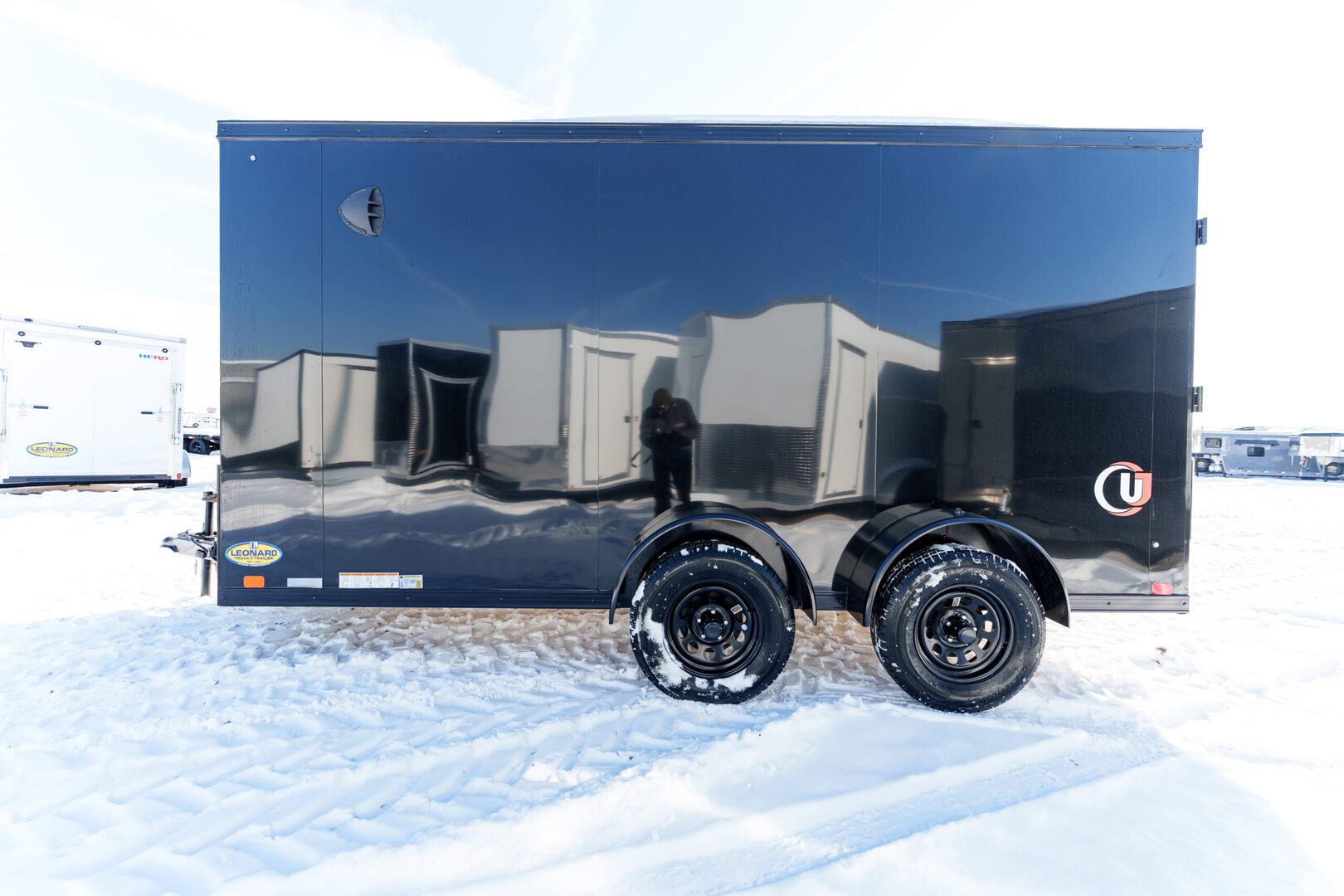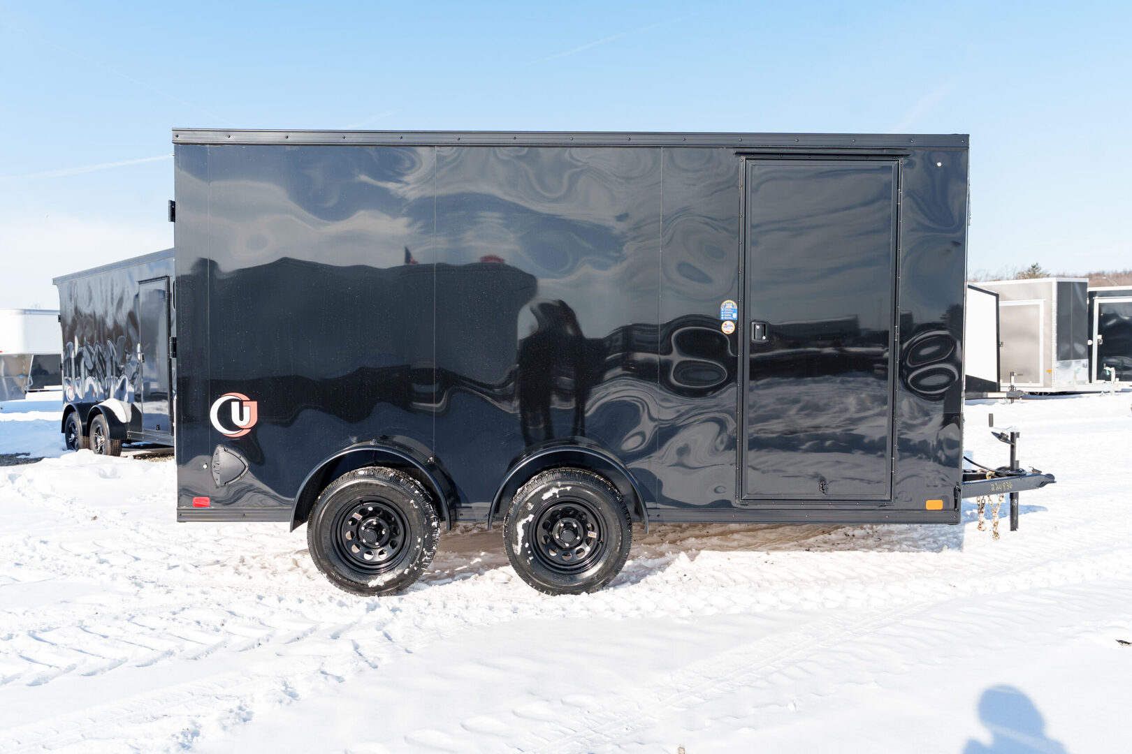 View Inventory: https://leonardtrailers.com/inventory/45643 Stock #45643 – New 2026 United UJ-S-714TA35-8.5 Enclosed Trailer The 2026 United UJ-S-714TA35-8.5 is a versatile, heavy-duty enclosed trailer designed for equipment, cargo, or recreational hauling. With a 6’6” interior height, tandem torsion axles, rear ramp door, and blackout package, it delivers strength, convenience, and a professional-grade finish. Key Specifications & Features Axles: (2) 3,500-lb electric brake torsion axles, tandem spread 5” Tires/Wheels: ST205/75R15 C Castle Rock on black steel wheels Coupler & Hitch: 2 5/16” coupler, 7-way molded plug, breakaway kit Jack: Top-crank jack with foot pad Frame: 2x4 tube frame with 24” V-nose (slant) and corner posts Crossmembers: 16” on center Floor & Walls: 3/4” plywood floor, 3/8” plywood wall liner Roof: Seamless aluminum with roof bows 16” on center Doors & Tie-Downs Rear ramp door with plywood flap and spring assist 32” x 72” RV side door (front-mounted) Heavy-duty D-rings, fold-down stabilizer jacks Lighting, Venting & Electrical LED tail lights, recessed clearance lights, and 12V dome light with wall switch Sidewall vents Exterior & Finish .030 smooth aluminum, slant nose, ATP stone guard 9” single round fenders Lauan strip down center of roof Black exterior with black trim Blackout Package (all trim, corners, fenders, door frames, cargo locks) Warranty 3-year limited warranty A professional-grade United enclosed trailer built for strength, efficient loading, and a clean blackout look. Financing available • Trades welcome • Nationwide NO-HASSLE delivery (888) 333-6613 Specifications believed accurate; verify with a sales associate prior to purchase. Stock Number:45643