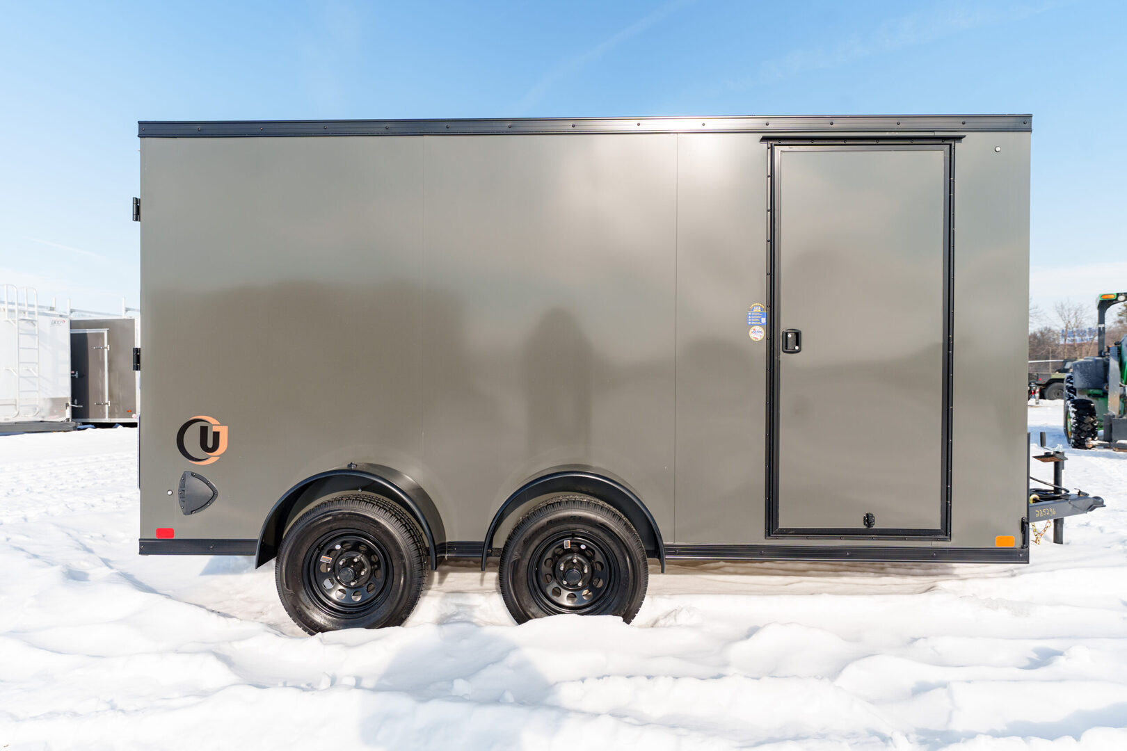 View Inventory: https://leonardtrailers.com/inventory/45641 Stock #45641 – New 2026 United UJ-S-714TA35-8.5 Enclosed Trailer The 2026 United UJ-S-714TA35-8.5 is a durable enclosed trailer designed for equipment, cargo, or recreational hauling. With a 6’6” interior height, tandem torsion axles, rear ramp door, and blackout package, it delivers strength, convenience, and a professional finish. Key Specifications & Features Axles: (2) 3,500-lb electric brake torsion axles, tandem spread 5” Tires/Wheels: ST205/75R15 C Castle Rock on black steel wheels Coupler & Hitch: 2 5/16” coupler, 7-way molded plug, breakaway kit Jack: Top-crank jack with foot pad Frame: 2x4 tube frame with 24” V-nose (slant) and corner posts Crossmembers: 16” on center Floor & Walls: 3/4” plywood floor, 3/8” plywood wall liner Roof: Seamless aluminum with roof bows 16” on center Doors & Tie-Downs Rear ramp door with plywood flap and spring assist 32” x 72” RV side door (front-mounted) Fold-down stabilizer jacks Lighting, Venting & Electrical LED tail lights, recessed clearance lights, and 12V dome light with wall switch Sidewall vents Exterior & Finish .030 smooth aluminum, slant nose, ATP stone guard 9” single round fenders Lauan strip down center of roof Battleship Gray exterior with black trim Blackout Package (all trim, corners, fenders, door frames, cargo locks) Warranty 3-year limited warranty A compact, professional-grade United enclosed trailer built for strength, efficiency, and a clean blackout look. Financing available • Trades welcome • Nationwide NO-HASSLE delivery (888) 333-6613 Specifications believed accurate; verify with a sales associate prior to purchase. Stock Number:45641
