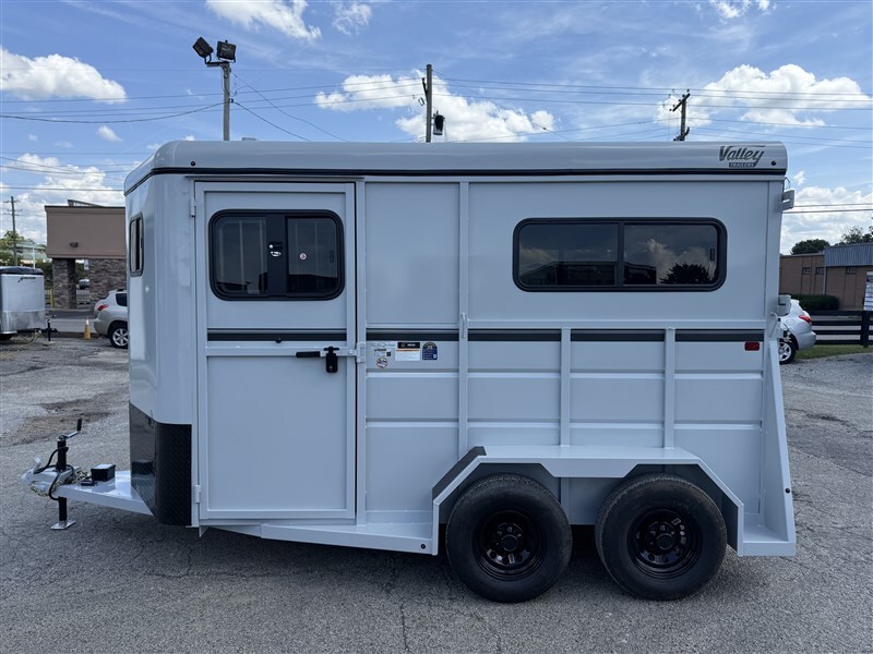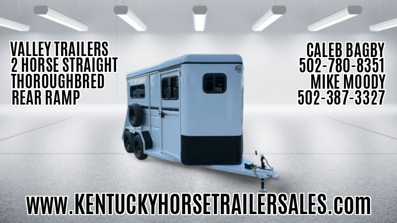 *** IN PRODUCTION & ARRIVING MID FEBRUARY, 2026 !!! *** PURCHASE NOW TO BEAT THE UPCOMING PRICE INCREASES !!!2026 VALLEY THOROUGHBRED 2 HORSE STRAIGHT LOAD w/ REAR RAMP > EXTRA TALL !! * Drop / Feed Windows * Roof Vents * 6’ wide * 7’6” tall * 14’ long * (2) 3500# torsion axles * Load Range D / 8 ply radial tires * Rear loading ramp w/ Tail curtains * Front Tack Area * All steel construction * Escape doors * Wood lined stalls * Rubber floor mats * Removeable dividers * Treated wood floors * Spare tire / wheel *** VALUE PRICED AT $11,975 !!!!!!(2) 3500# torsion axles / 3340# empty weight / 2-5/16” hitchKentucky Horse Trailer SalesFactory Direct Representative of Valley Horse and Livestock TrailersA Division of Jerry Moody Auto Mart9418 Taylorsville RoadLouisville, Kentucky 40299Contact: Michael Moody 502-387-3327Monday-Friday 9:00AM-4:00PM (EST)Saturday & Sunday ~ ClosedNOTE: All prices listed are ’Plus Tax’.Payable by Cash or Cashier’s Check (No personal or business checks).All debit or credit card transactions add 4%.Financing is available.Best Values in Horse Trailers East of the Mississippi River !!!Valley Horse and Livestock Trailers Factory Direct Distributor