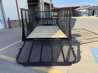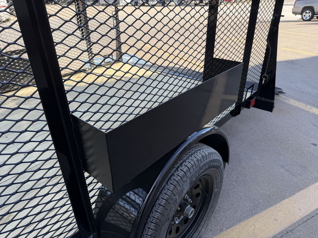 77 in x 12’ x 48 in Landscape Trailer 3,500 lb. Idler Axle ST 205 75 R15 Upgraded Radial Tires 48 in Expanded Metal Sides Front Toolbox Front Water Holder Solid Side Fender Baskets Front Tongue Basket w/ Top Cover H/D Spare TIre Mount 48 in Spring Assist Rear Ramp Gate Weed Eater Racks Stake Pockets with Cut Outs 4 in Channel Wrapped Tongue 2 in 8K Coupler 3 in x 2 in x 3/16 in Angle Frame Treated Wood Floor 7K Set Back Jack with Foot and Brace Smooth Fenders 5 on 5 Bolt Pattern Empty Weight: 1,350 lbs. GVWR: 3,500 lbs. Carrying Capacity: 2,150 lbs