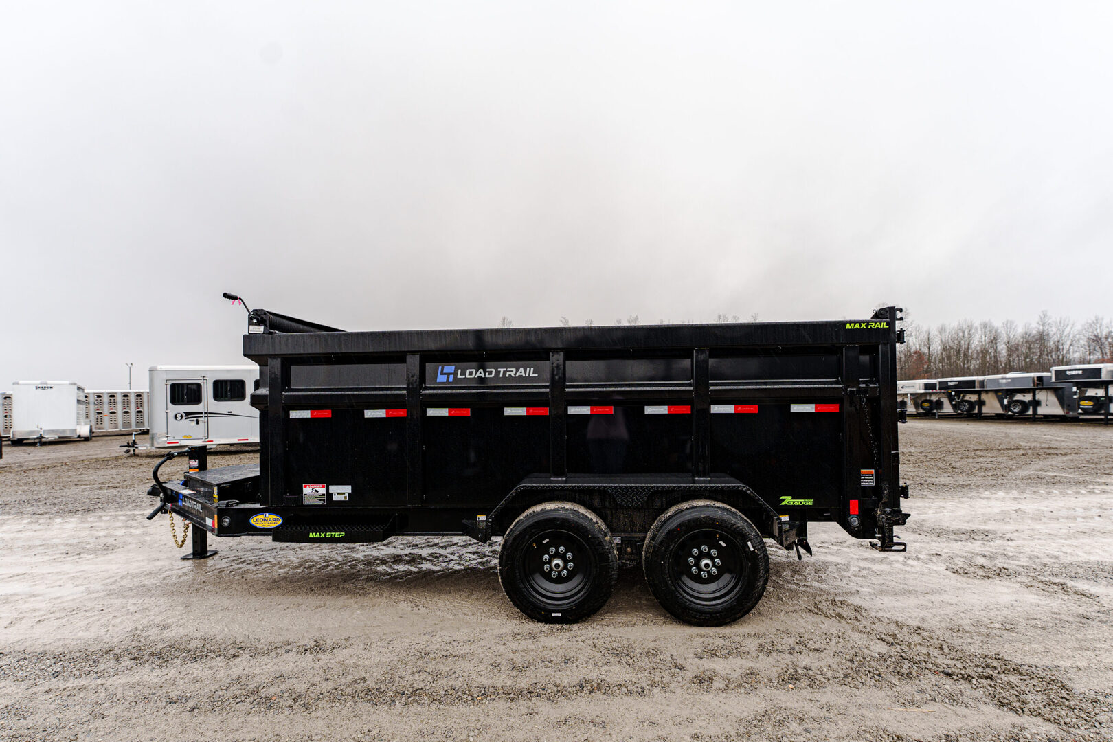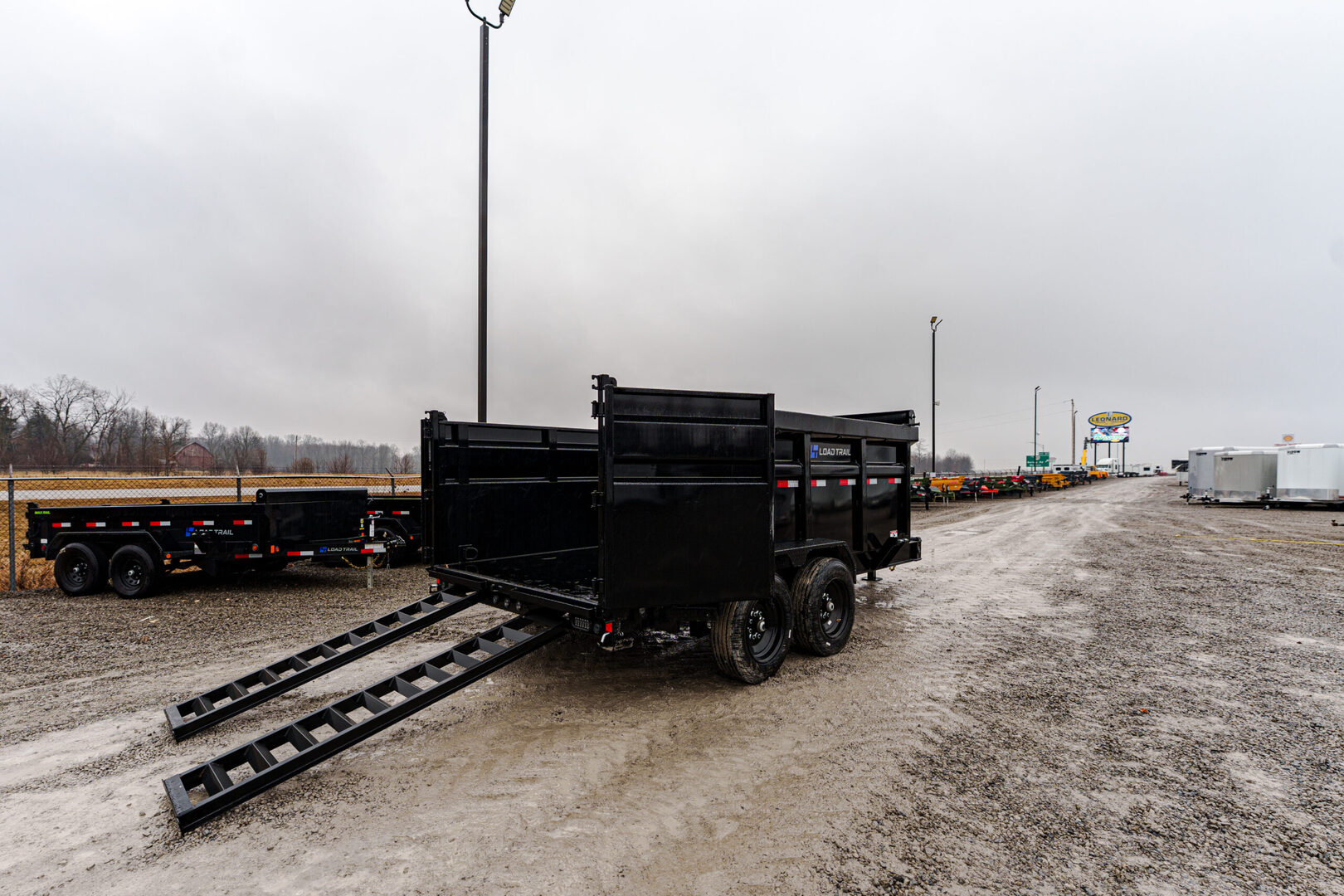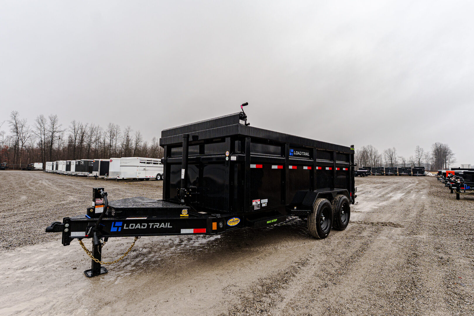 View Inventory: https://leonardtrailers.com/inventory/45657 Stock #45657 โ€“ New 2026 Load Trail DL8314082CM 83” x 14’ Tandem Axle Low-Pro Dump Trailer The 2026 Load Trail DL8314082CM is a heavy-duty low-pro dump trailer built for reliable hauling and easy loading. Constructed on an 8” I-beam frame with dual 8,000-lb Dexter spring axles, this trailer includes 48” dump sides with a 2-way rear gate, slide-in rear ramps, and a telescopic hydraulic cylinder for smooth dumping. Additional features include LED lighting, MAX steps, tie-down D-rings, and a tongue-mounted toolbox with divider, making this trailer ready for any job. Key Specifications Model: DL8314082CM GVWR: 16,000 lbs (2 x 8,000-lb axles) Axles: (2) 8,000-lb Dexter spring axles w/ electric brakes (Ez-Lube) Coupler: 2-5/16” adjustable 6-hole (21K Demco) Floor: 7-gauge steel Deck Length: 14’ Width: 83” Construction & Features 8” x 13-lb I-beam frame 16” crossmembers 48” dump sides w/ 48” 2-way gate Slide-in rear ramps (80” x 16”) Jack: 1 x 10,000-lb spring-loaded drop-leg LED lights w/ cold-weather harness 4 welded 4” D-rings 1 MAX-STEP (30”) Tongue-mounted MAX toolbox w/ divider Rear support jacks (2” x 2” tubing) Telescopic hydraulic cylinder Solar panel charger & standard 5A battery charger Tarp kit, top-mount Spare tire mount (HD) Wheels & Tires ST215/75 R17.5 LRH 16-ply tires (singles) Black wheels Diamond plate fenders (weld-on) Finish & Options Black w/ primer Road Service Program available: 833-278-3396 We offer outstanding financing options, accept trades, and can arrange nationwide NO HASSLE delivery! Inquire today! (888) 333-6613 We believe these specifications to be accurate. Any discrepancies are unintentional. Please verify information with a sales associate prior to purchase. Stock Number:45657