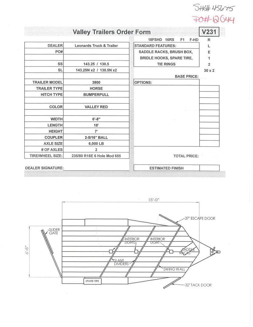 View Inventory: https://leonardtrailers.com/inventory/45675 Stock# 45675 New 2026 Valley 3800 Bumper Pull Horse Trailer Built from the ground up to take on all kinds of abuse from rough roads, terrain, and restless livestock, Valley Trailers provide a high quality livestock trailer at a competitive price. Valley Stock trailers come with safety features installed throughout the the entire trailer; peace of mind for the owner and livestock. With many options and configurations available with the Valley Stock trailers, there are many possibilities. Model: 3800 Warranty: 3yr- Structural 1yr-Components Trailer Specifications: Color: Valley Blue Width: 6’-8” Length: 18’ Height: 7’ Coupler: 2-5/16” Ball Axle Size: 6,000 LB Number of Axles: 2 Tire/Wheel Size: 235/80 R16E 6 Hole Silver Mod 655 Standard Features: Saddle Racks Brush Box Bridle Hooks Spare Tire Tie Rings     We offer outstanding financing options, accept trades, and can arrange nationwide NO HASSLE delivery! Inquire today for more information! (888) 333-6613 **We believe these specifications to be accurate. Any discrepancies are unintentional. Please verify information with a sales associate prior to purchase.** Stock Number:45675