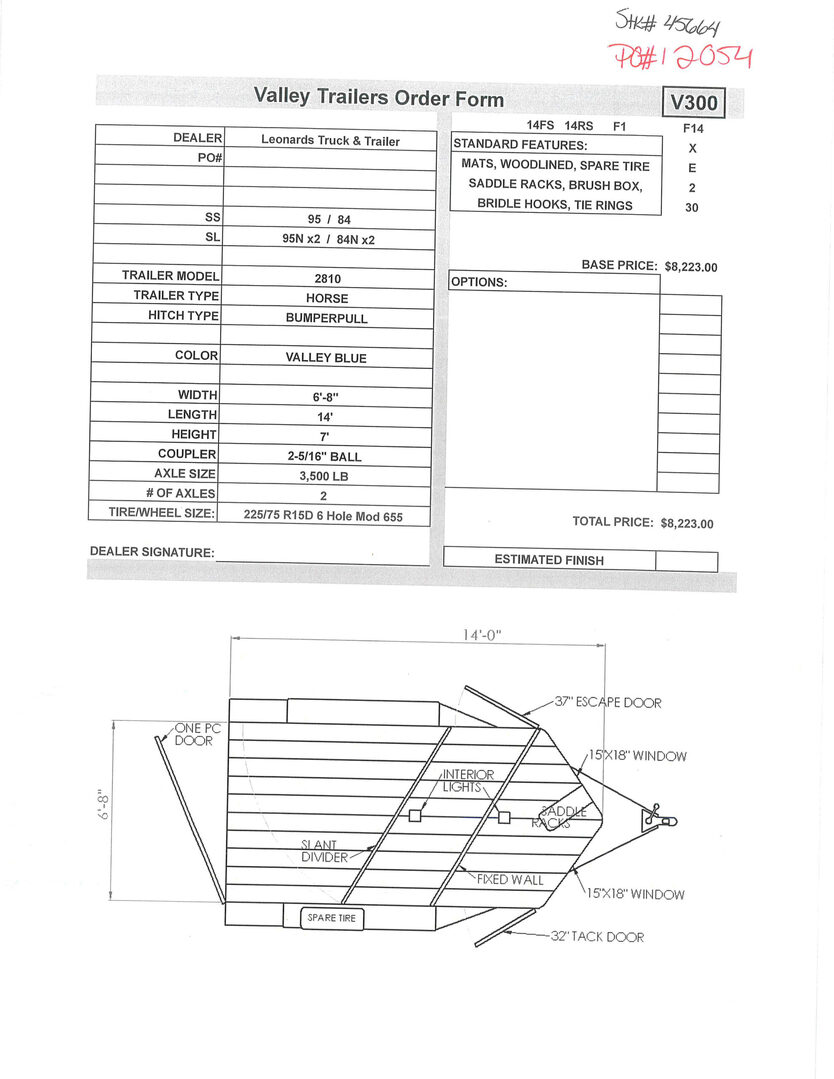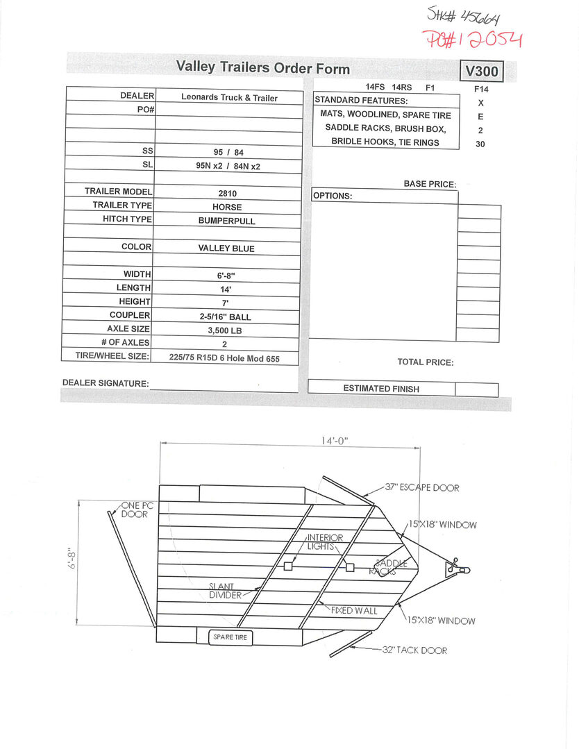 View Inventory: https://leonardtrailers.com/inventory/45664 Stock# 45664 New 2026 Valley 2810 Bumper Pull Horse Trailer Built from the ground up to take on all kinds of abuse from rough roads, terrain, and restless livestock, Valley Trailers provide a high quality livestock trailer at a competitive price. Valley Stock trailers come with safety features installed throughout the the entire trailer; peace of mind for the owner and livestock. With many options and configurations available with the Valley Stock trailers, there are many possibilities. Model: 2810 Warranty: 3yr- Structural 1yr-Components Trailer Specifications Color: Silver Width: 6’-8” Length: 14’ Height: 7’ Coupler: 2-5/16” Ball Axle Size: 3,500 LB Number of Axles: 2 Tire/Wheel Size: 225/75 R15D 6 Hole Silver Mod 655 Standard Features Mats Wood-lined interior Spare tire Saddle racks Brush box Bridle hooks Tie rings     We offer outstanding financing options, accept trades, and can arrange nationwide NO HASSLE delivery! Inquire today for more information! (888) 333-6613 **We believe these specifications to be accurate. Any discrepancies are unintentional. Please verify information with a sales associate prior to purchase.** Stock Number:45664
