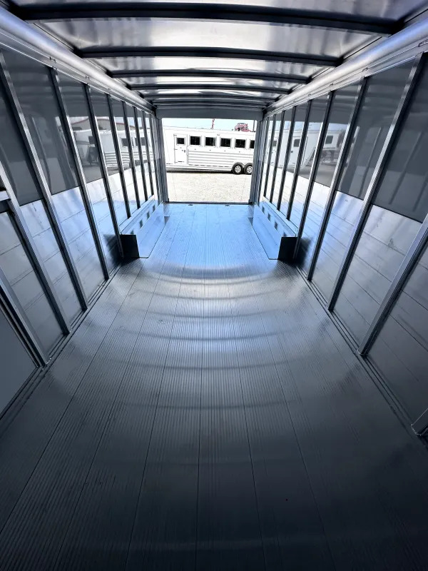 # 2026 Sundowner 24’ Workhorse Cargo Gooseneck 24’L x 8’6”W x 7’T Cargo Area - interlocking welded aluminum floor, 4 6,000 lbs recessed swivel d-ring floor tie downs, 2 interior LED load lights, cable assisted rear ramp. Other Features - center leg landing gear jack, LED clearance lights, spread axle, black aluminum wheels, spare tire with matching wheel, 48” aluminum wave panel, turn signals on fenders, 36” side entrance door with fold down step, one piece aluminum roof, rear roof spoiler w/ 3 LED load lights. Trailer comes with full factory warranty! Financing options with rates as low as 6.49% WAC - Nationwide delivery available Call our sales department at 940-365-9919 After hours calls/texts 612-381-6782