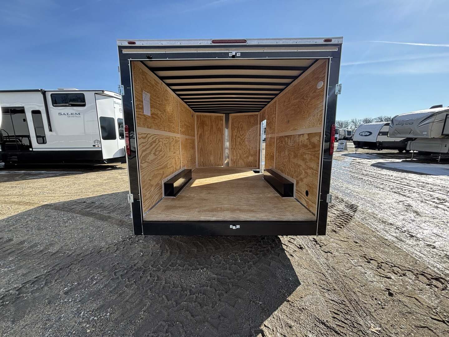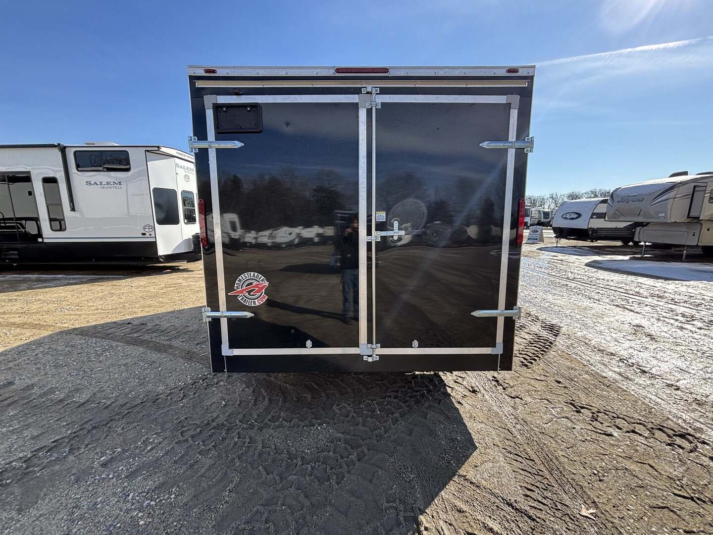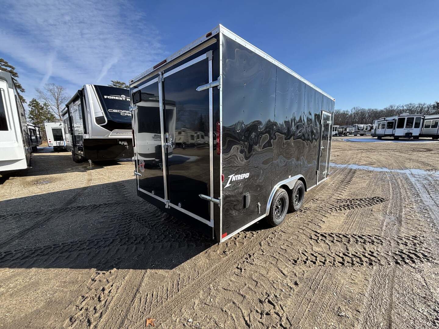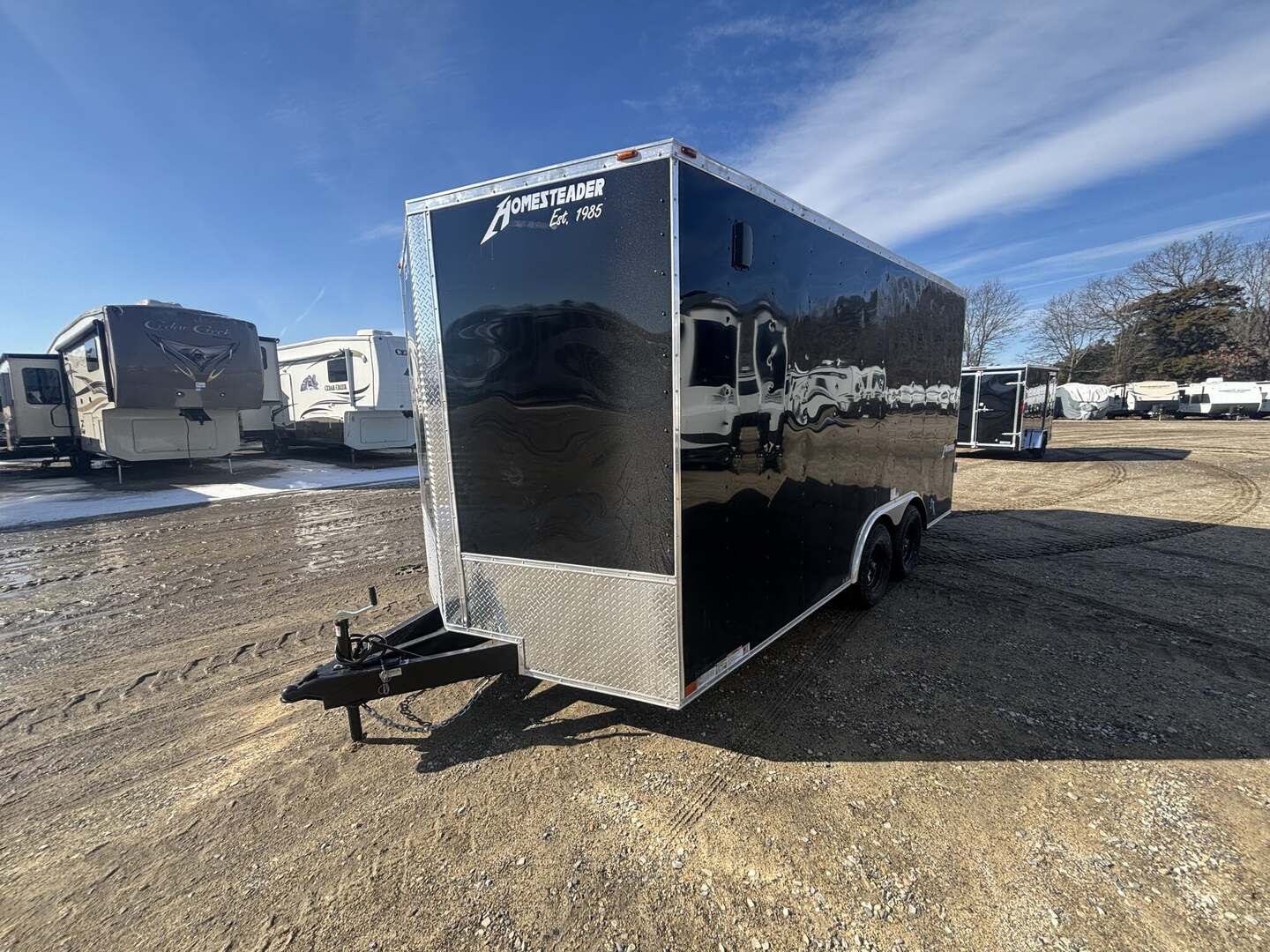 2026 Homesteader Intrepid 8x16IT Cargo Trailer for RV EnthusiastsIntroducing the 2026 Homesteader Intrepid Cargo Trailer, a new arrival built to deliver reliability, security, and versatile use for RV lovers, contractors, exhibitors, and mobile businesses. This in-stock model blends a rugged enclosed steel frame with a practical cargo area designed to guard tools, equipment, or gear from the elements. With its sleek black exterior, 8x16IT floorplan, and user-friendly bumper-pull towability, it’s ready to support your recreational vehicle lifestyle or professional needs right away.OverviewThe Intrepid is engineered for dependable performance behind a wide range of light trucks. It features two axles with a bumper pull hitch and a 7,000-pound gross vehicle weight rating (GVWR), providing ample payload while preserving easy handling on the road. The enclosed steel construction paired with a wood floor creates a sturdy, long-lasting platform suitable for year-round use. An in-stock arrival (stock number 8313) means you can secure immediate access to a flexible cargo solution without waiting for build time. This model is categorized for practical cargo use rather than as a travel trailer or motorhome, delivering space, security, and reliability for RV enthusiasts and business owners alike.Dimensions & ConstructionDimensions reflect a compact, versatile footprint that’s easy to tow and maneuver. Length: 16 feet 0 inches; Width: 8 feet 0 inches; Height: 7 feet 0 inches. Floorplan: 8x16IT. Construction: Steel with a Wood floor. Enclosure: Enclosed. Exterior Color: Black. Axles: 2; Hitch: Bumper Pull. GVWR: 7,000 pounds. Year: 2026; Stock Number: 8313. Condition: New; In Stock.Key Specifications Classification: Cargo/Concession Trailer Type: Cargo Trailer; Floorplan: 8x16IT Length: 16 feet 0 inches; Width: 8 feet 0 inches; Height: 7 feet 0 inches Construction: Steel; Floor Type: Wood; Enclosure: Enclosed Exterior Color: Black Axles: 2; Hitch: Bumper Pull GVWR: 7,000 pounds Year: 2026; Stock Number: 8313 Condition: New; In StockWhy It Stands Out Versatile cargo solution ideal for RV gear, tools, mobile workshops, or event concessions New arrival with in-stock convenience and accessible financing options Durable steel construction with a protective wood floor for long-lasting use Enclosed design keeps cargo secure and protected from weather and road debrisWhether you’re outfitting an RV lifestyle, managing equipment for a mobile business, or seeking extra storage space, this 2026 cargo trailer delivers reliability and value. Ready to tow with a bumper pull setup, it makes a practical addition to any fleet or personal RV collection. Contact us to learn more about pricing, availability, and how this model can fit your towing and storage needs.
